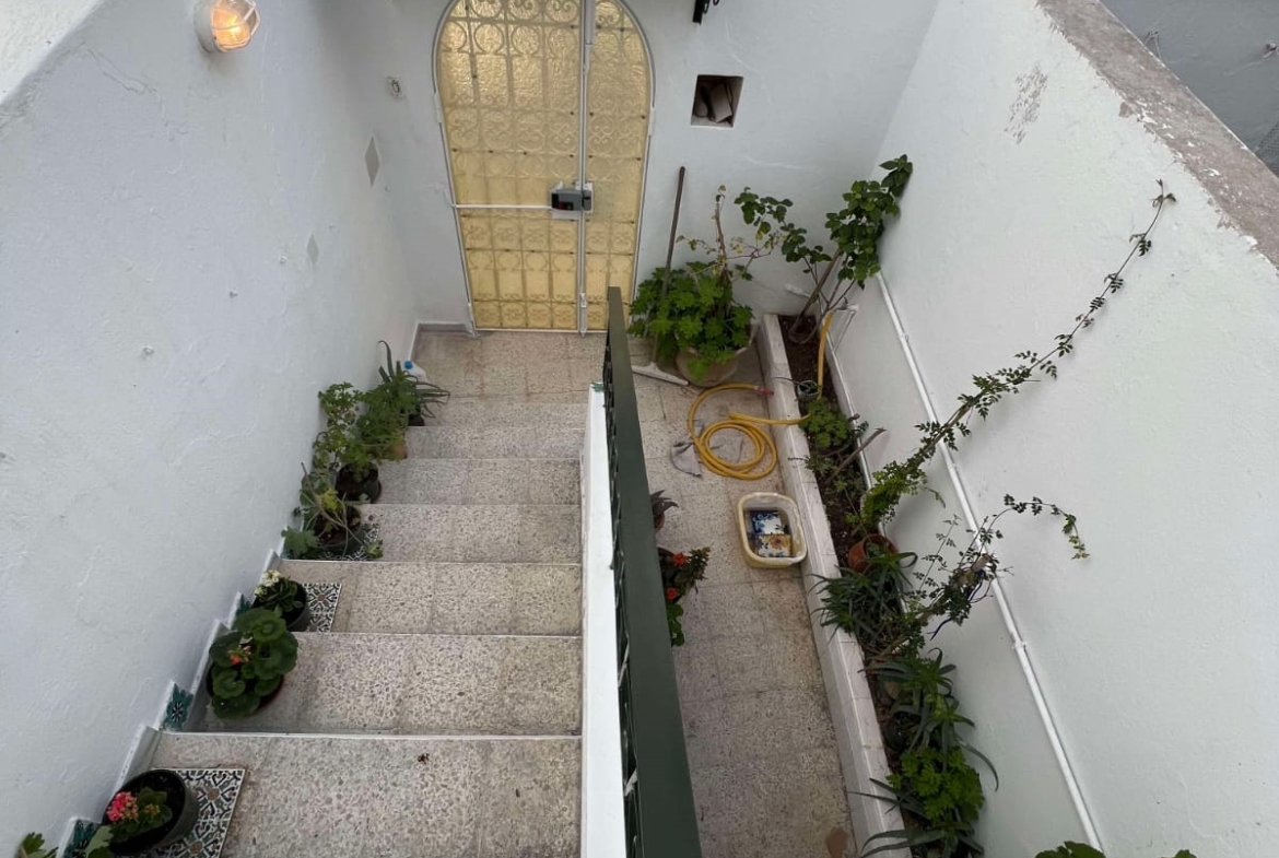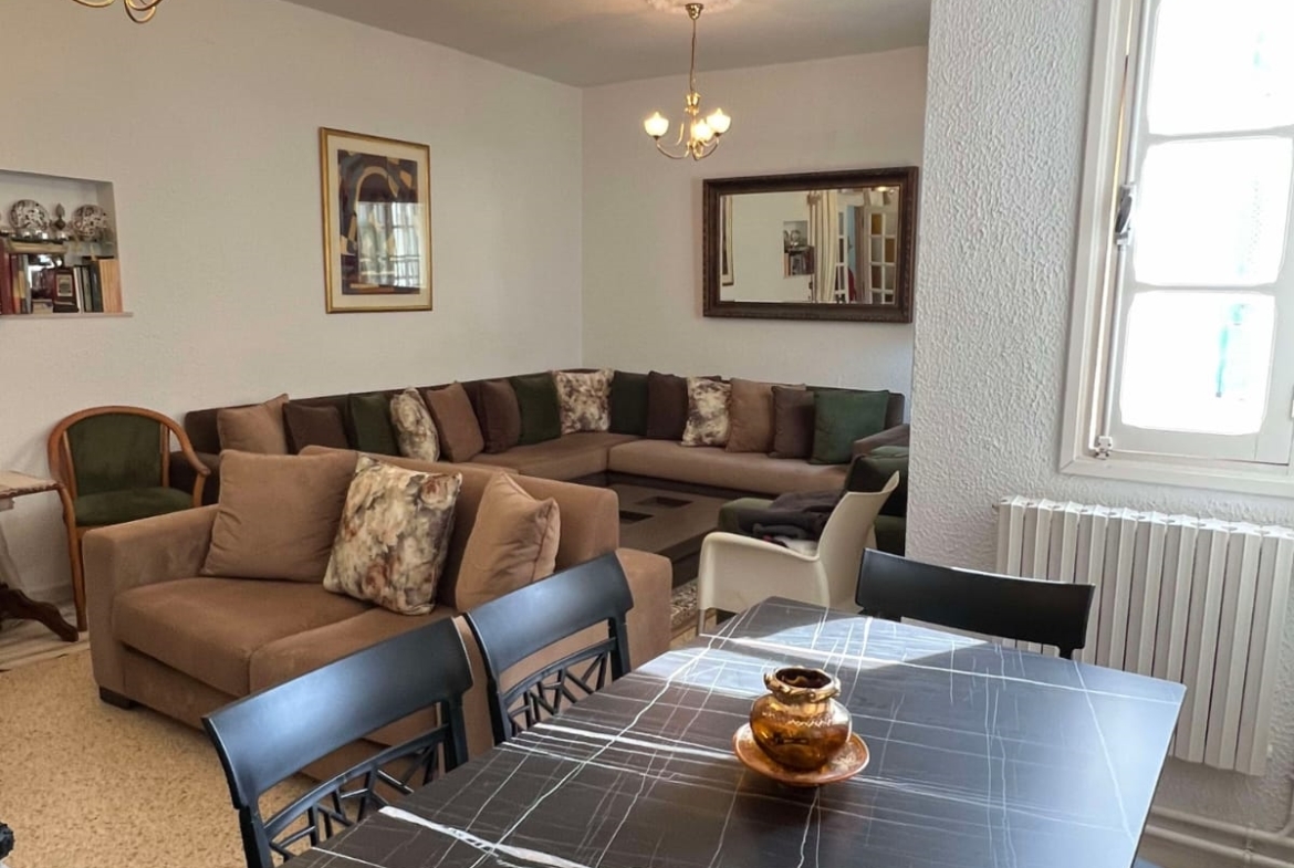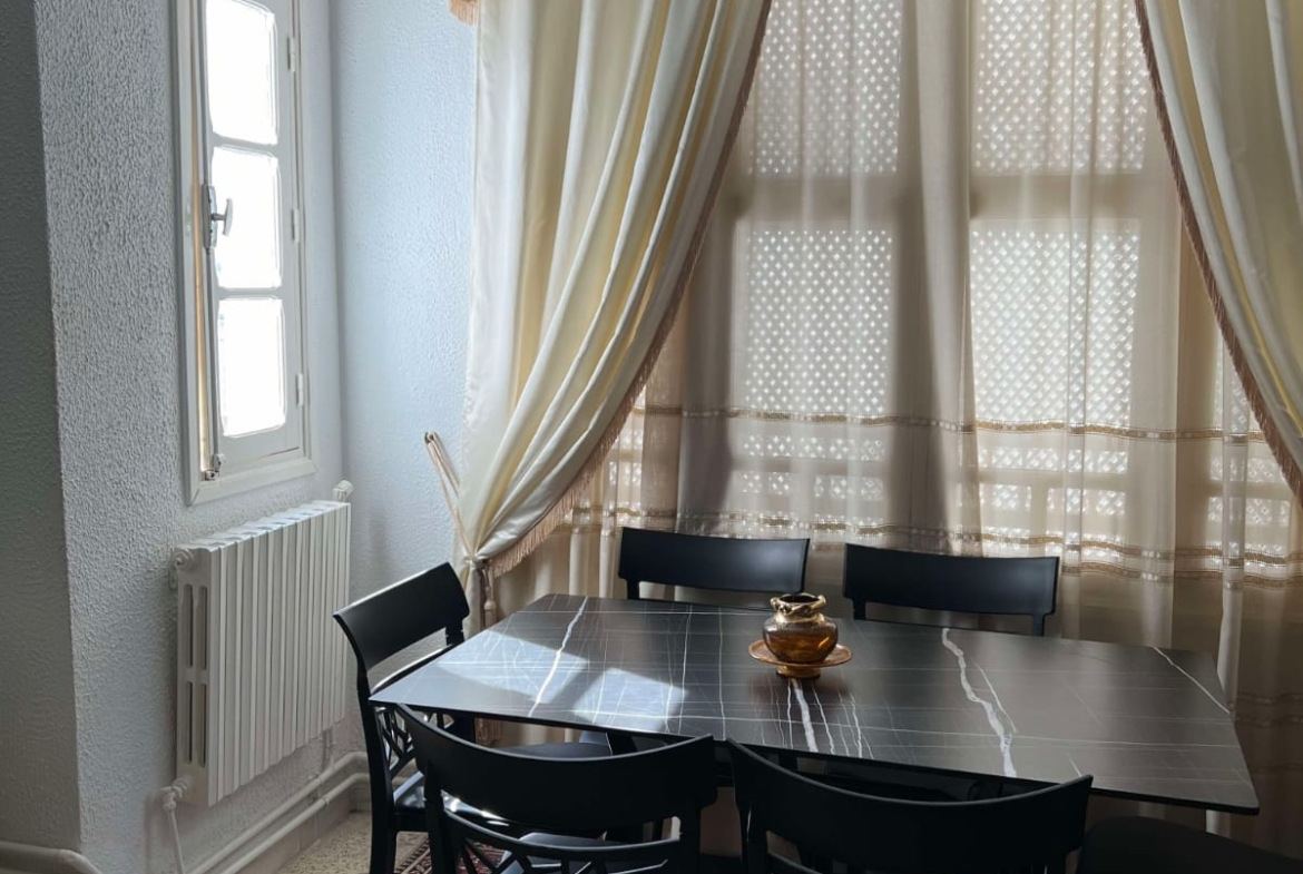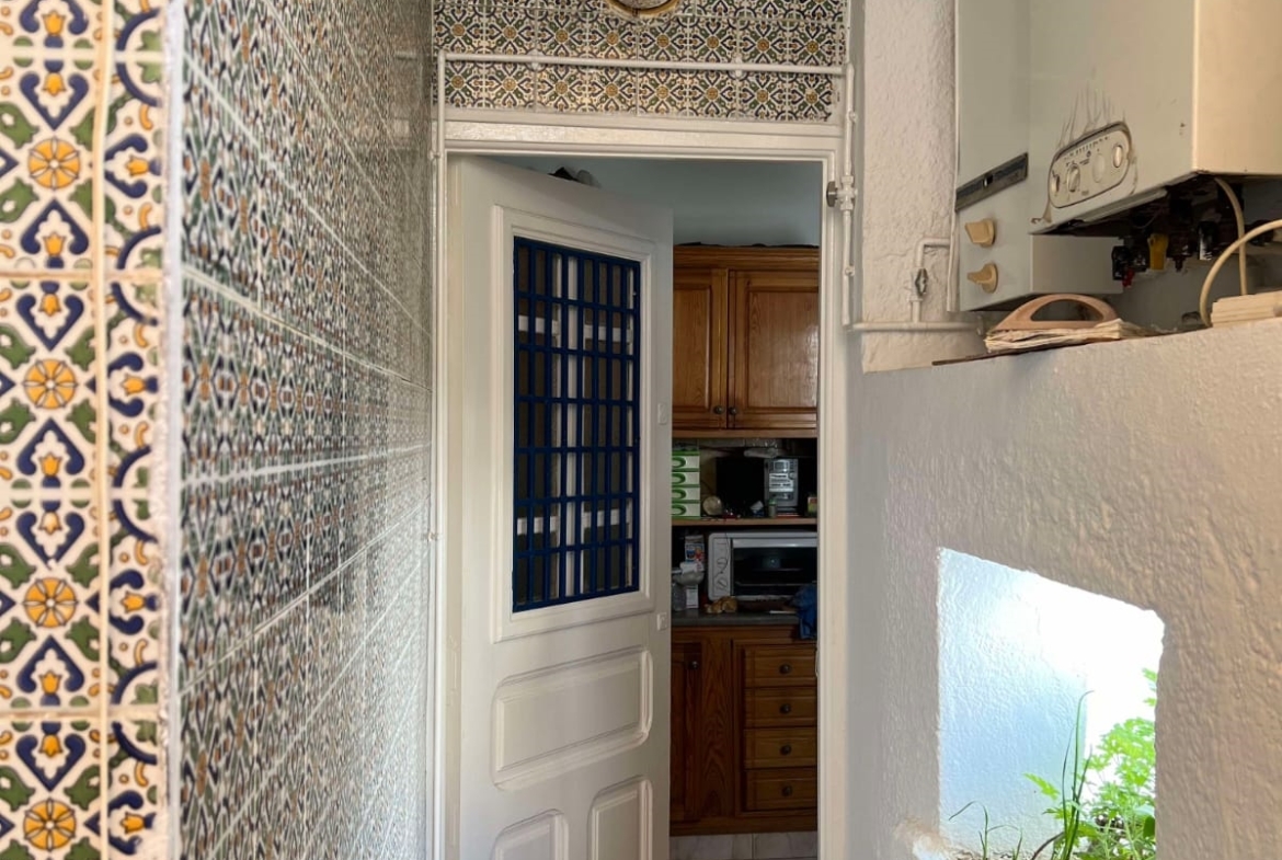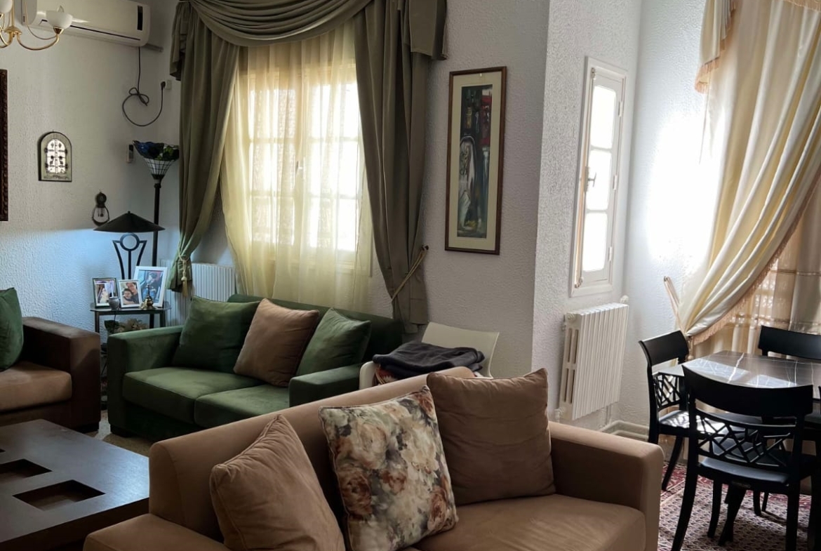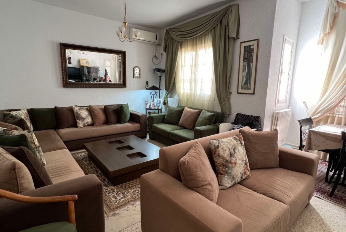 Un immeuble de charme sur un terrain de 128 m², donnant sur deux rues et situé dans un bon quartier à Carthage Salambo. Au RDC, on a un appart S3 comprenant un salon, une salle à manger, un séjour, une cuisine aménagée et équipée avec séchoir, une salle d’eau pour les invités, trois chambres et une salle de bain. Au 1er étage, on trouve un appart S+2 composé d’un salon, d’une cuisine, de deux chambres et d’une salle de bain.