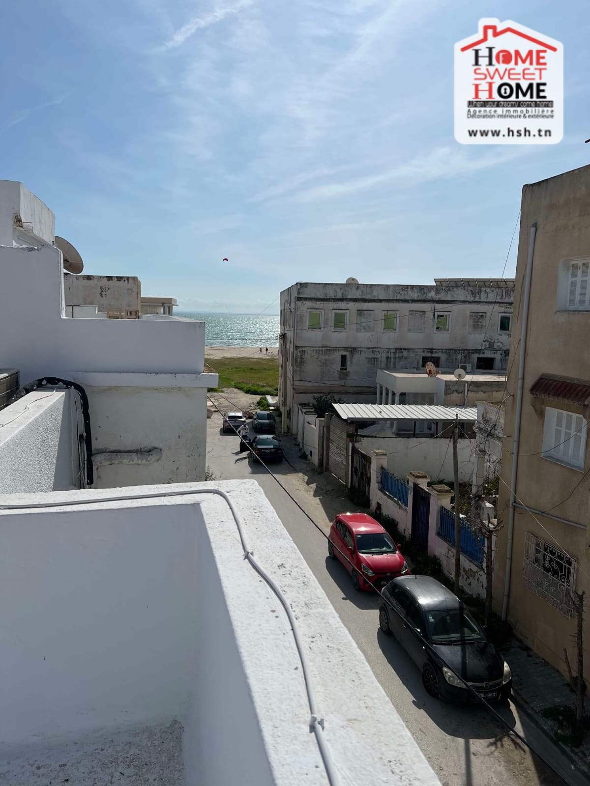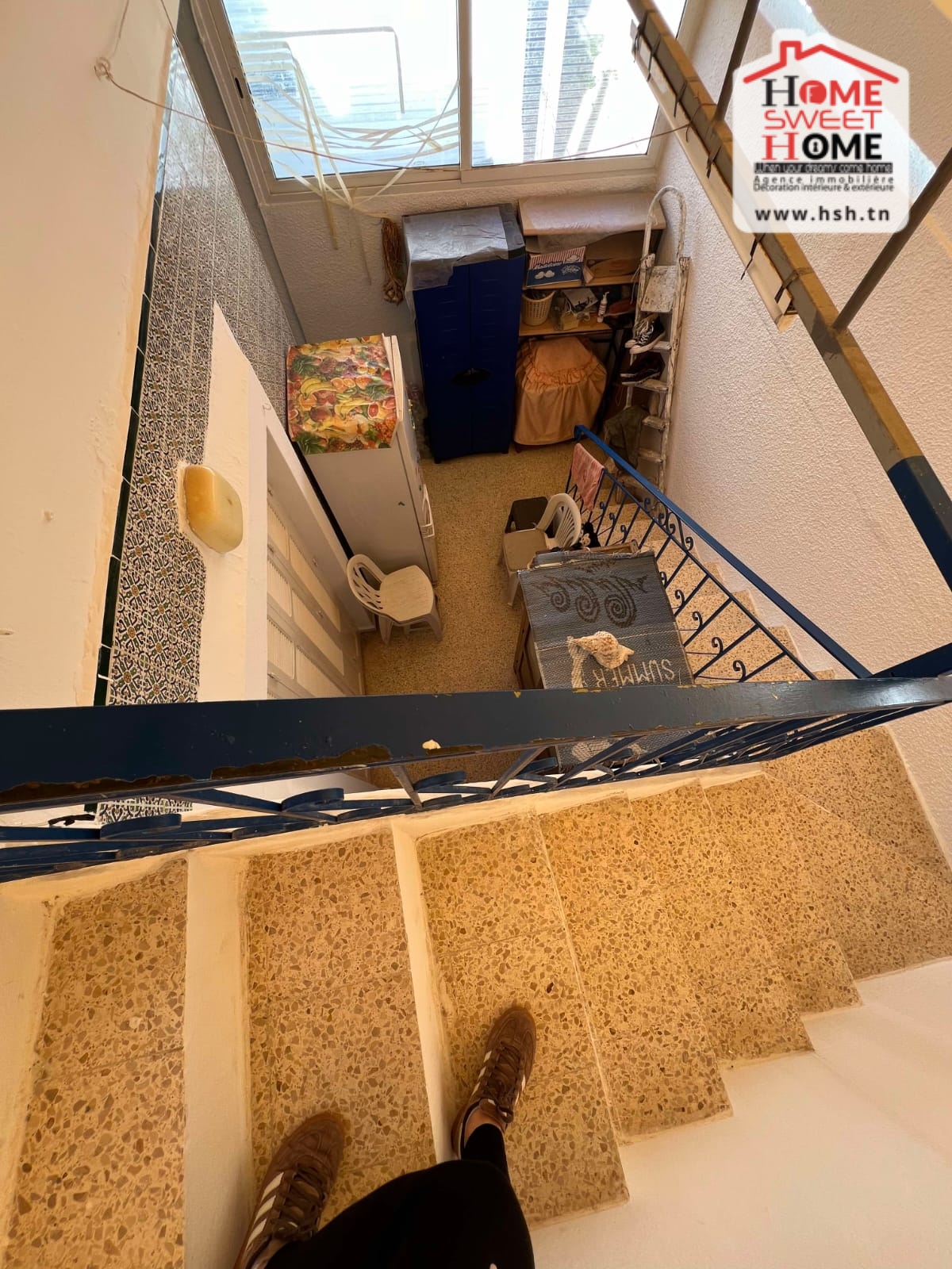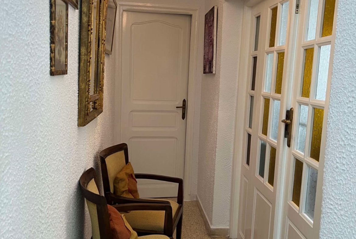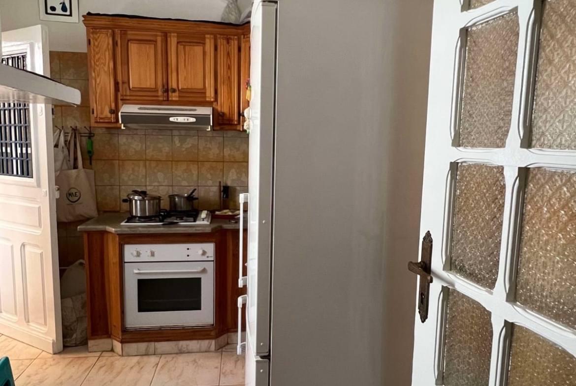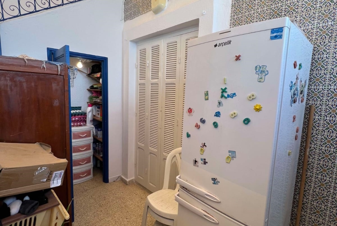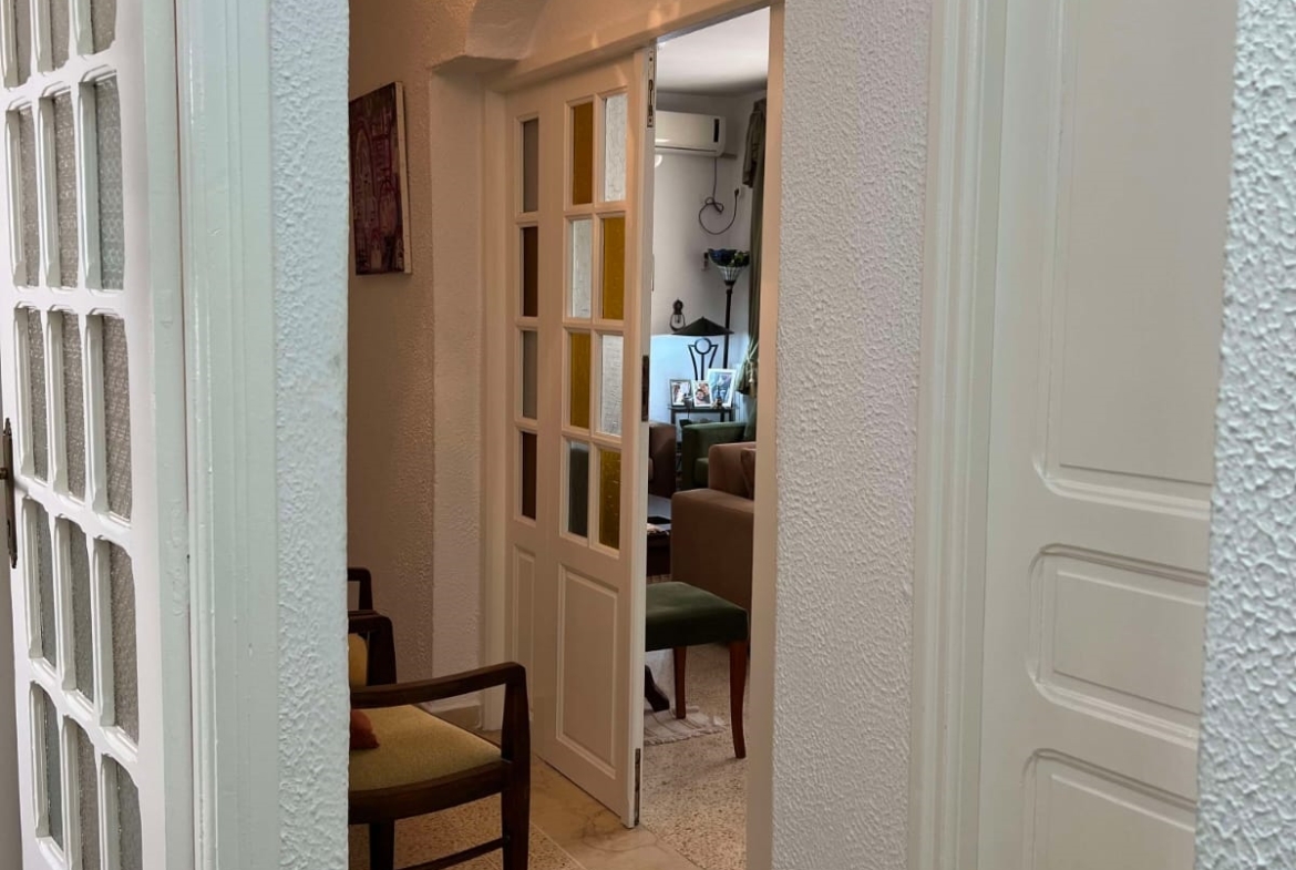 Un immeuble de charme sur un terrain de 128 m², donnant sur deux rues et situé dans un bon quartier à Carthage Salambo. Au RDC, on a un appart S3 comprenant un salon, une salle à manger, un séjour, une cuisine aménagée et équipée avec séchoir, une salle d’eau pour les invités, trois chambres et une salle de bain. Au 1er étage, on trouve un appart S+2 composé d’un salon, d’une cuisine, de deux chambres et d’une salle de bain.