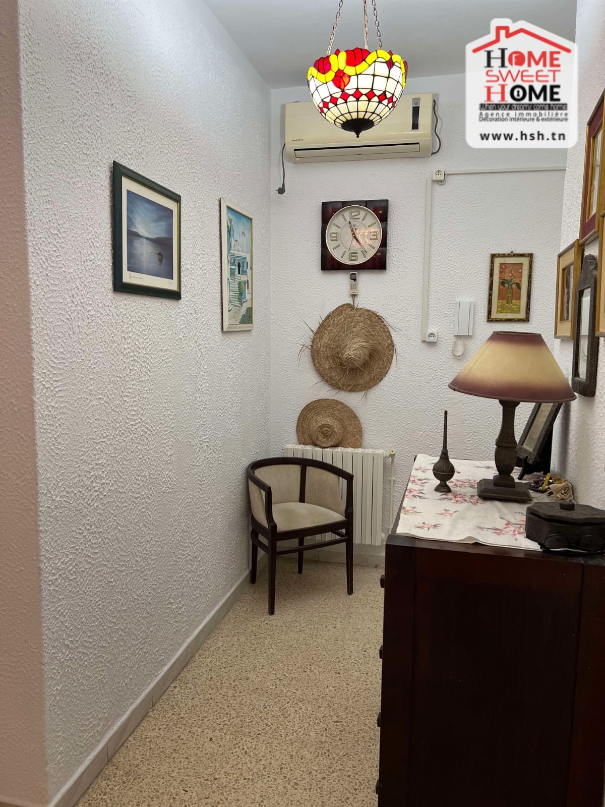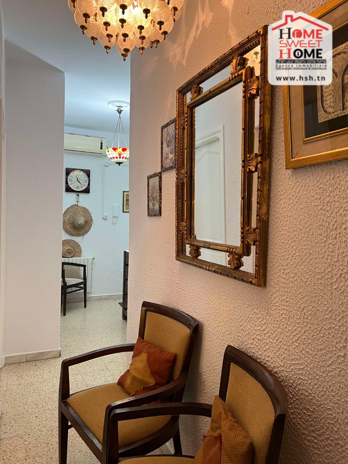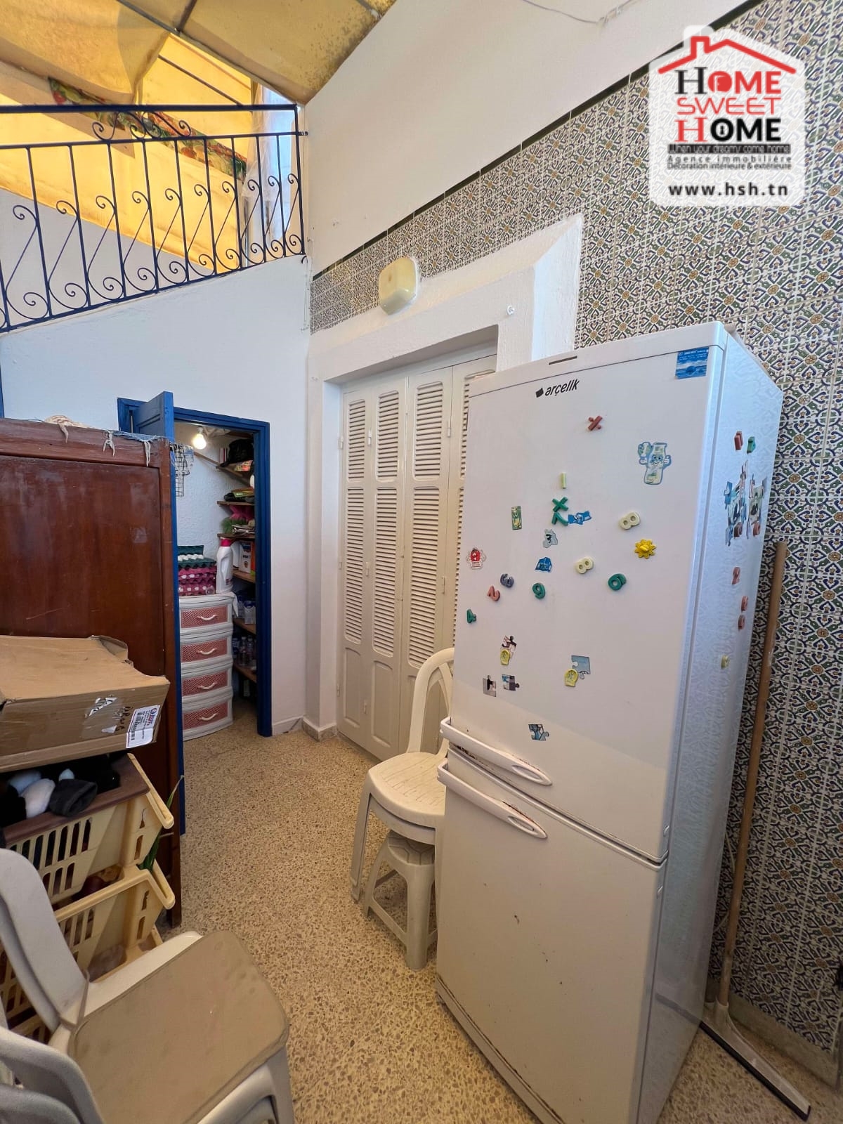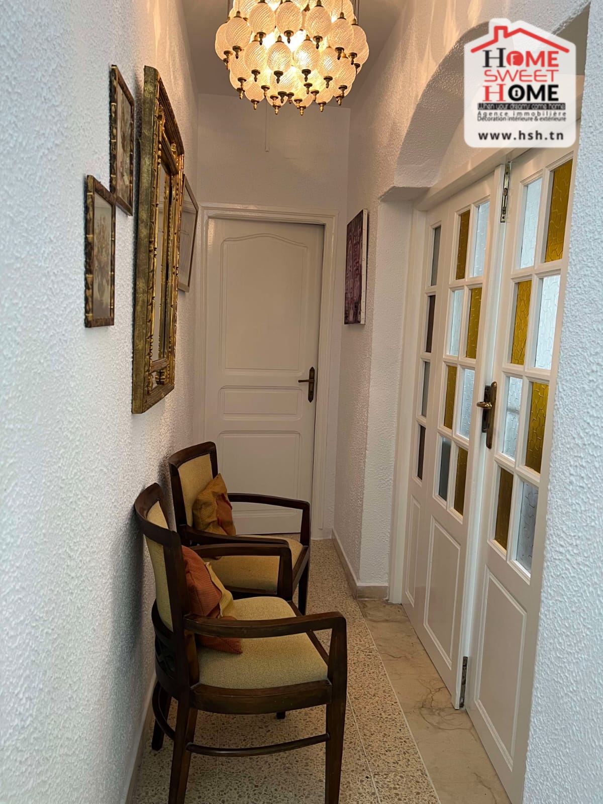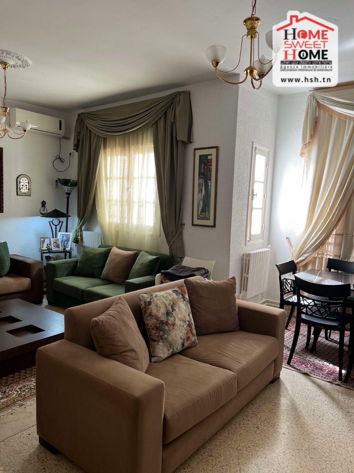 Un immeuble de charme sur un terrain de 128 m², donnant sur deux rues et situé dans un bon quartier à Carthage Salambo. Au RDC, on a un appart S3 comprenant un salon, une salle à manger, un séjour, une cuisine aménagée et équipée avec séchoir, une salle d’eau pour les invités, trois chambres et une salle de bain. Au 1er étage, on trouve un appart S+2 composé d’un salon, d’une cuisine, de deux chambres et d’une salle de bain.