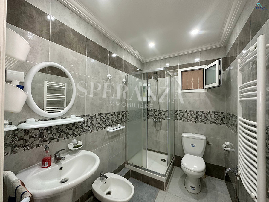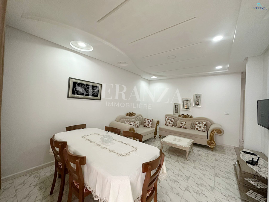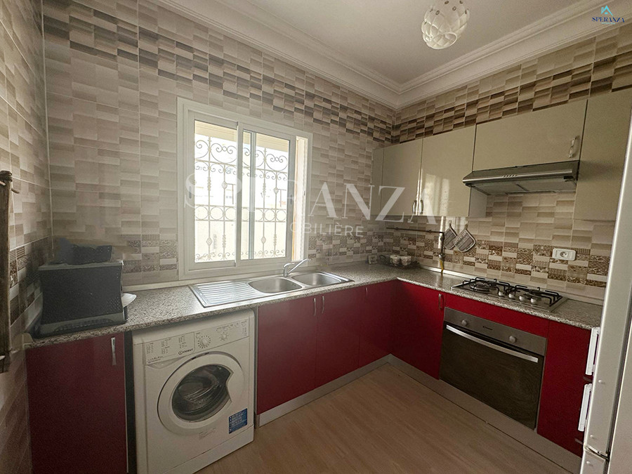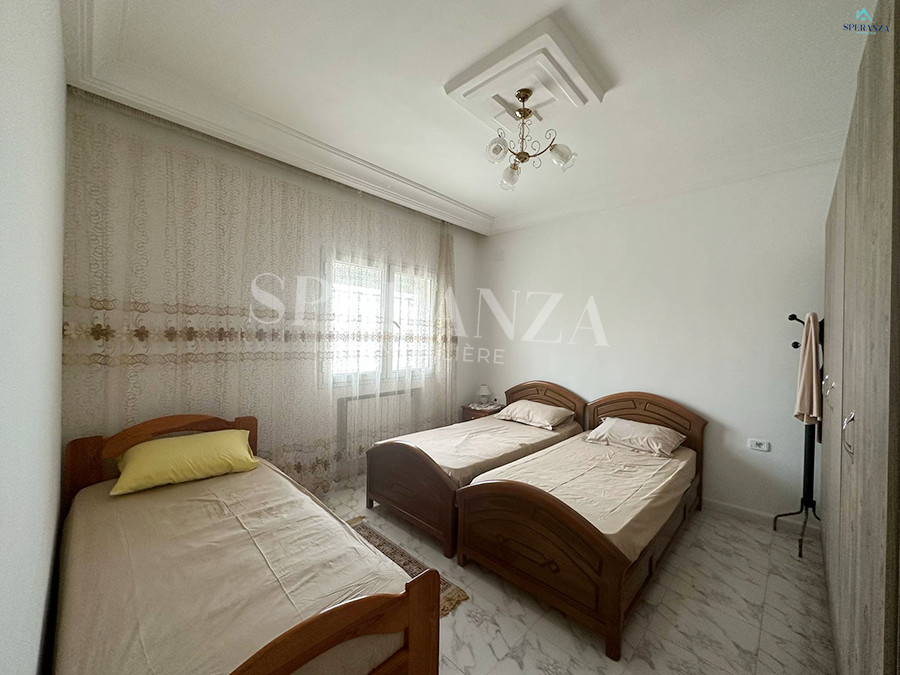 Speranza immobilière Hammamet vous propose à la location annuelle cet appartement Au premier étage située à Hammamet centre dans un quartier calme et securisé .L’entrée principale se compose par un salon lumineux,une cuisine bien équipée est aménagée par les éléments de rangements nécessaire et une salle d’eau. Le compartiment nuit posséde deux chambres à coucher.