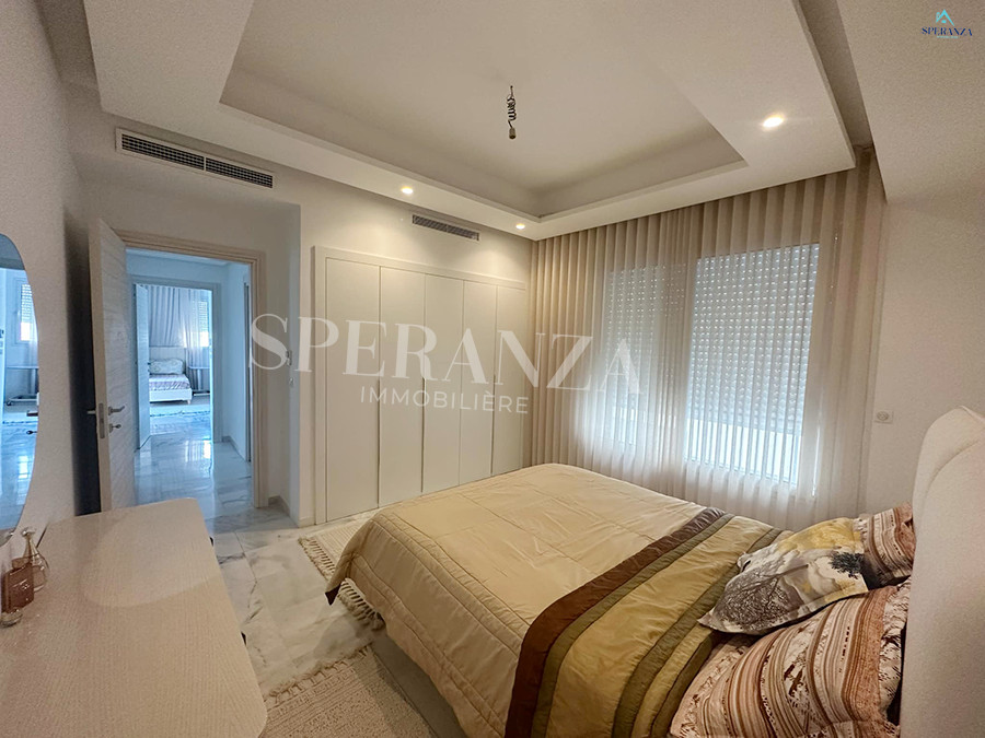 Speranza immobilière Hammamet vous propose à la vente ,Cet appartement au 2 éme étage qui se situe à Hammamet nord , .L’entrée principale dispose d’un salon lumineux,une cuisine bien équipée , deux salle d’eau, une suite parentale,deux chambres à coucher. Ainsi Q’un terrasse,et une place parcking. NB: cinq minute à la plage.