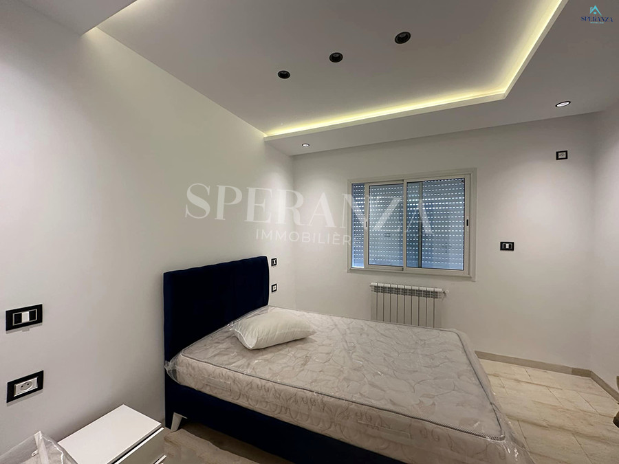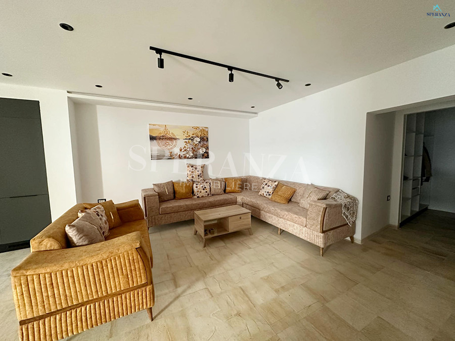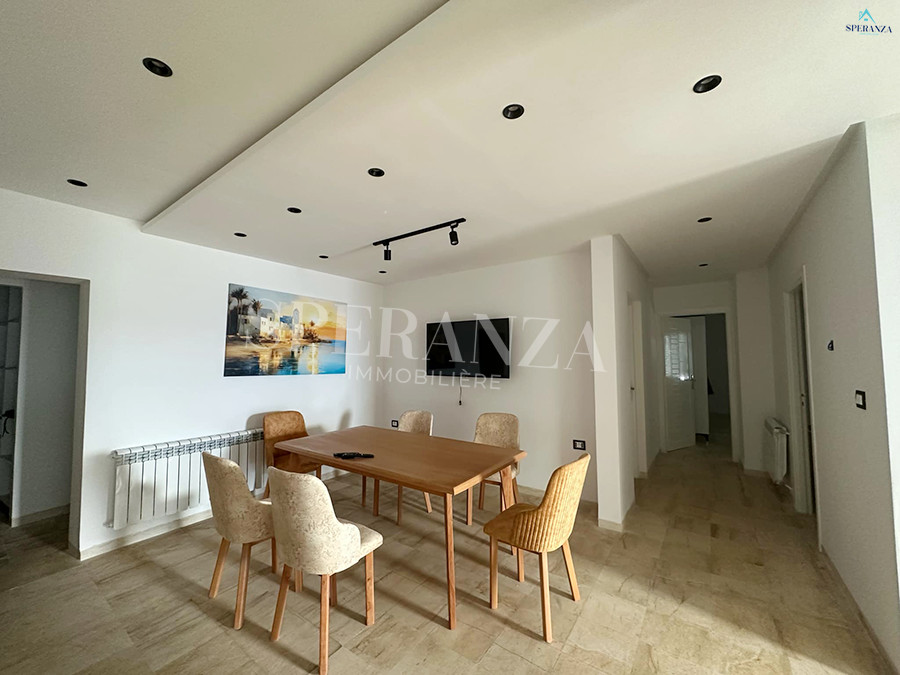 Speranza immobilière Hammamet vous propose à la location annuelle Cet appartement RDC situé à Hammamet centre, proche de toutes les commodités.La partie jours se compose par un salon lumineux,d’une Kitchennette aménagée avec des espaces de rangement,une salle d’eau .Le compartiement nuit se compose par deux chambre à coucher. Ainsi qu’un garage.