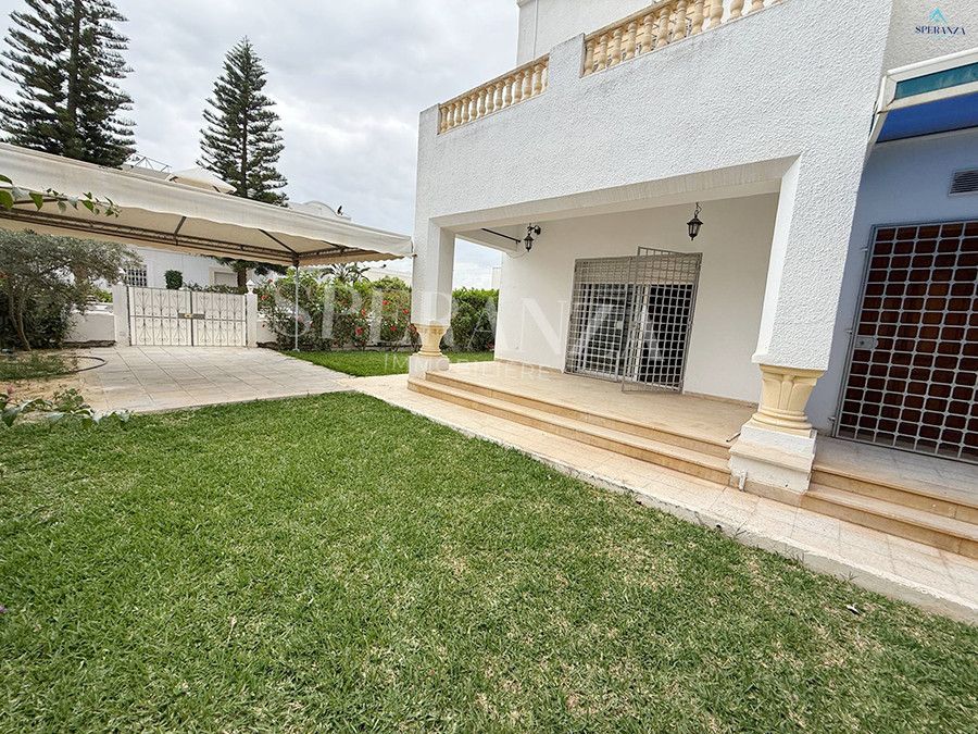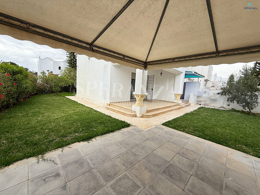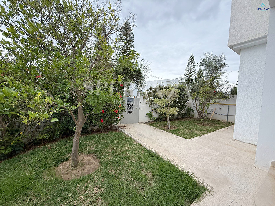 Speranza immobilière Hammamet vous propose à la location vacances Cette villa se situé à Hammamet sud (Yassmine Hammamet). L’entrée bénéficie d’un jardin gazonné . Au rez de chausser se trouve un salon spacieux ,une cuisine dispose de plusieurs éléments de rangement ,une chambre , et une salle d’eau .Un escalier nous mène vers 1 er étage qui se compose de trois chambres, une salle d’eau. Ainsi qu’une terrasse .