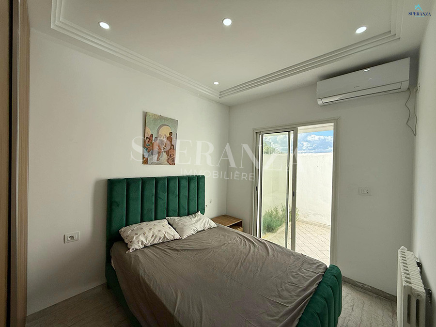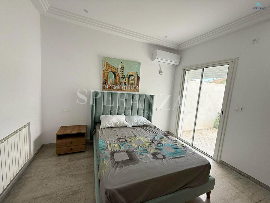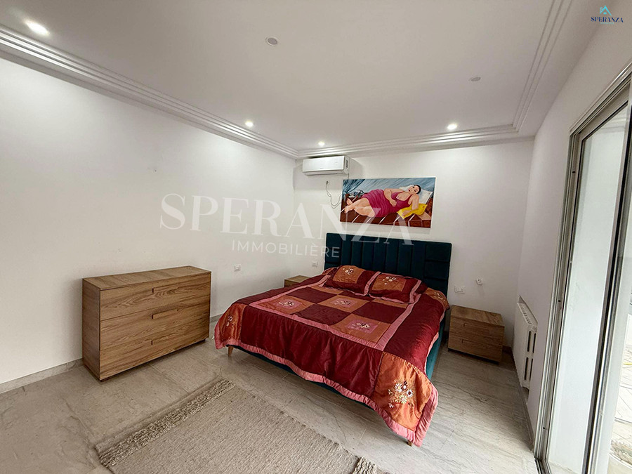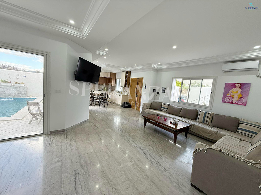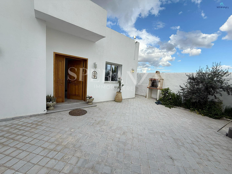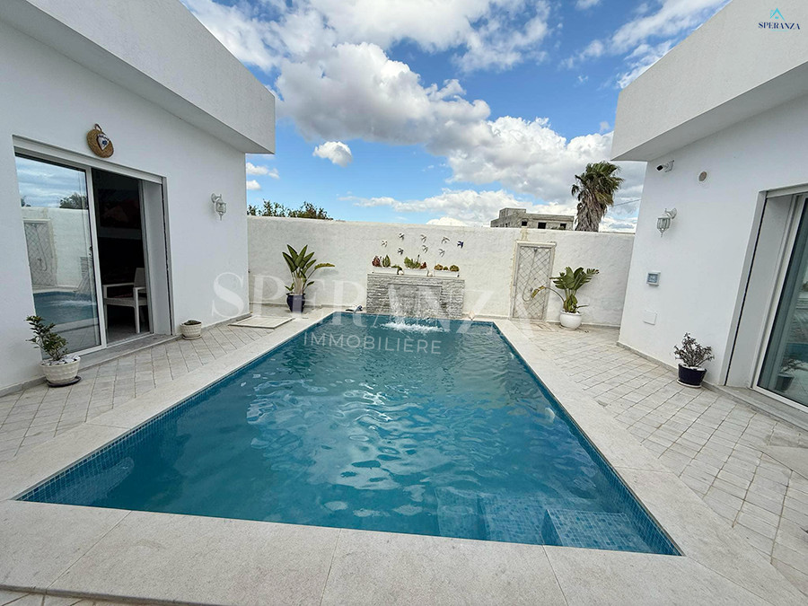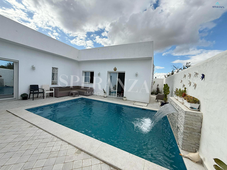 Speranza Immobilière Hammamet vous propose à la location vacances cette villa située à Hammamet. L’entrée principale s’ouvre sur un piscine,créant une atmosphère agréable et relaxante. Au RDC, vous trouverez un salon lumineux et une cuisine entièrement aménagée avec des éléments de rangement. Ce niveau comprend également deux salles d’eau. Quand à l’espace nuit dispose de trois chambres .Et une terrasse, idéale pour profiter du plein air.