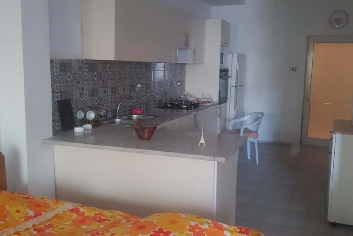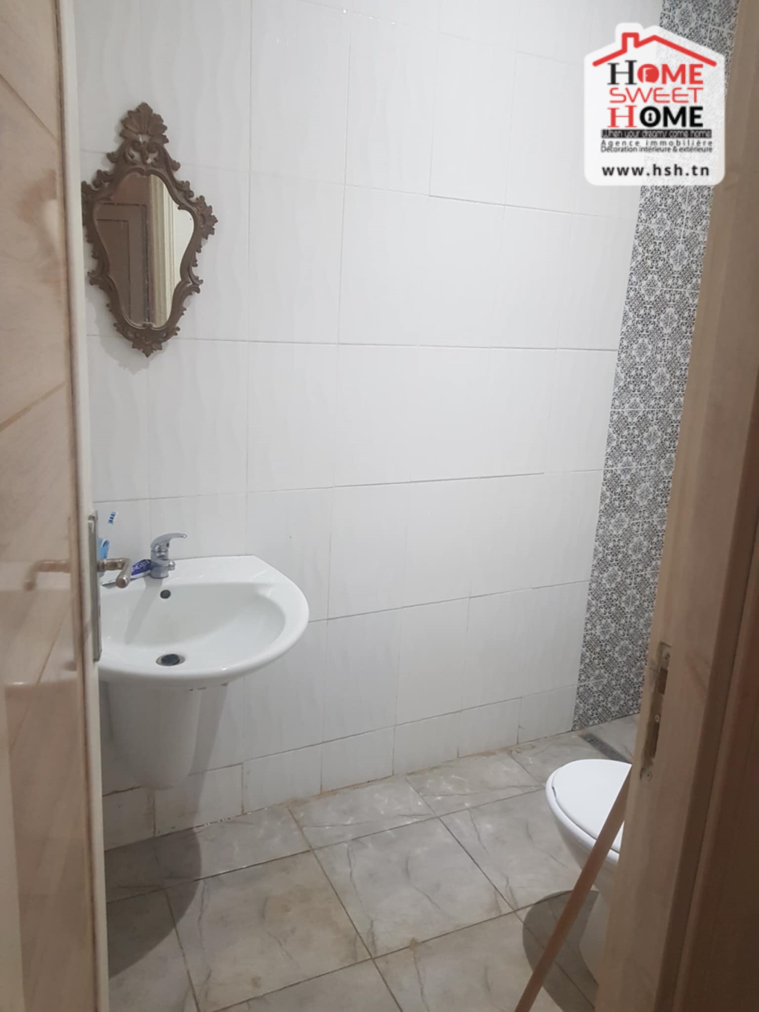| Un RDC de villa sur un terrain de 136 m², situé dans un quartier résidentiel à Ben Arous. À l’entrée, on trouve un salon, une cuisine, 2 chambres et une salle d’eau avec douche à l’italienne. À l’extérieur, il y a une terrasse. |