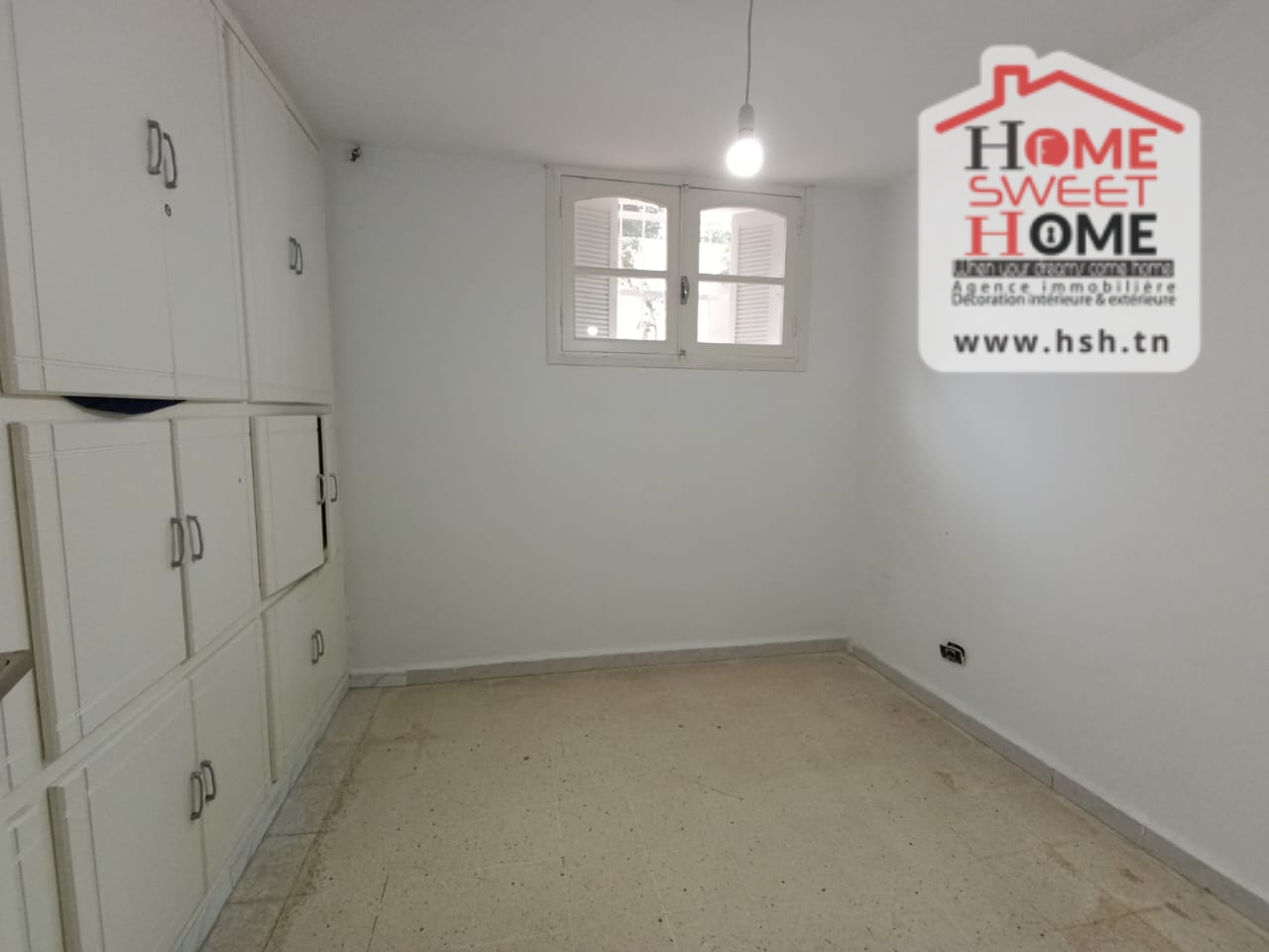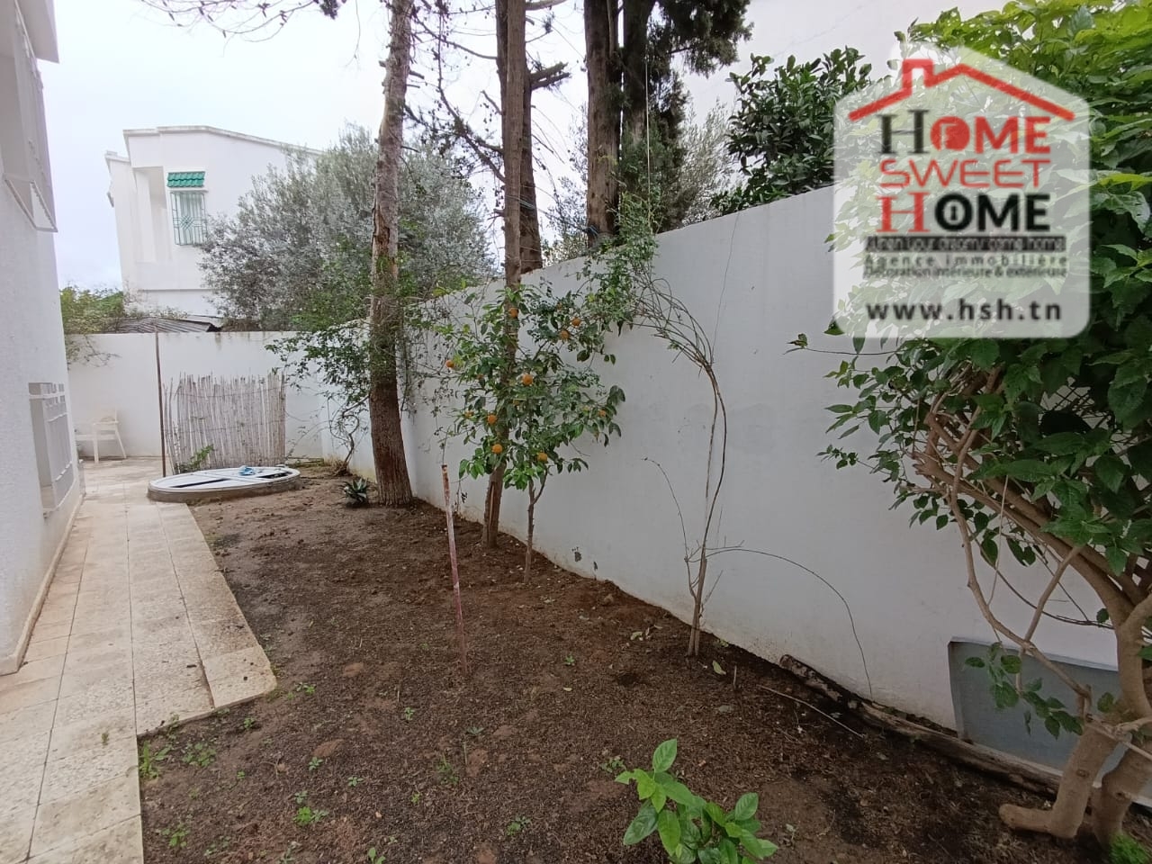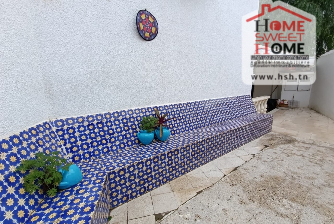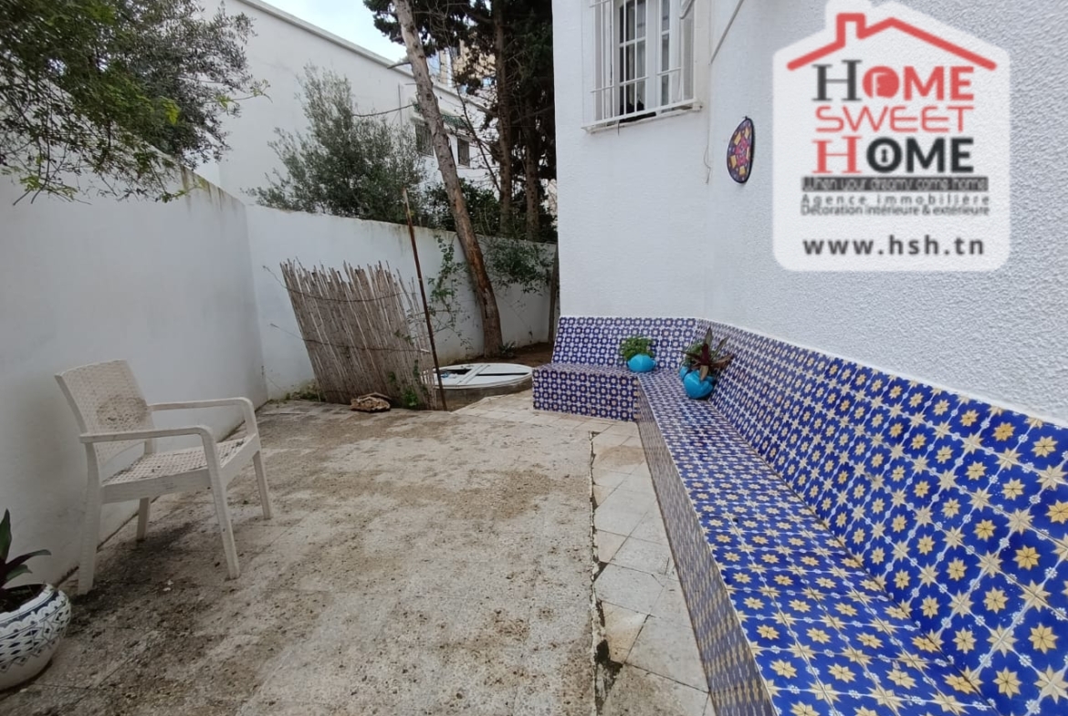 Un RDJ de villa avec une entrée indépendante situé dans dans un quartier résidentiel à Sidi Daoud, La Marsa. A l’entrée, on a un salon, une cuisine, 2 chambres à coucher et une salle de bain. A l’extérieur, on un jardin.