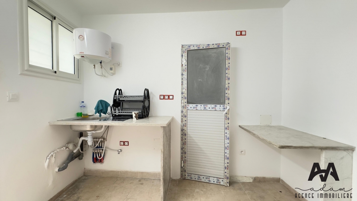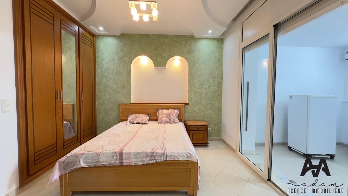un S+0 meublé au rez-de-chaussée, situé à Néapolis, Nabeul. Il se compose d’une vaste chambre à coucher dotée d’un dressing luxueux, d’une kitchenette équipée et d’une salle d’eau.
