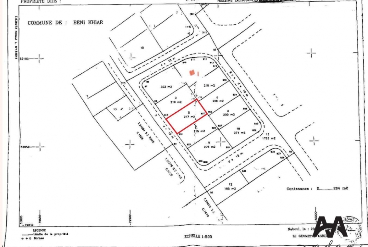 Un terrain d’habitation viabilisé de 217m² jumelé des deux coté à Beni Khiar dans une zone résidentielle.