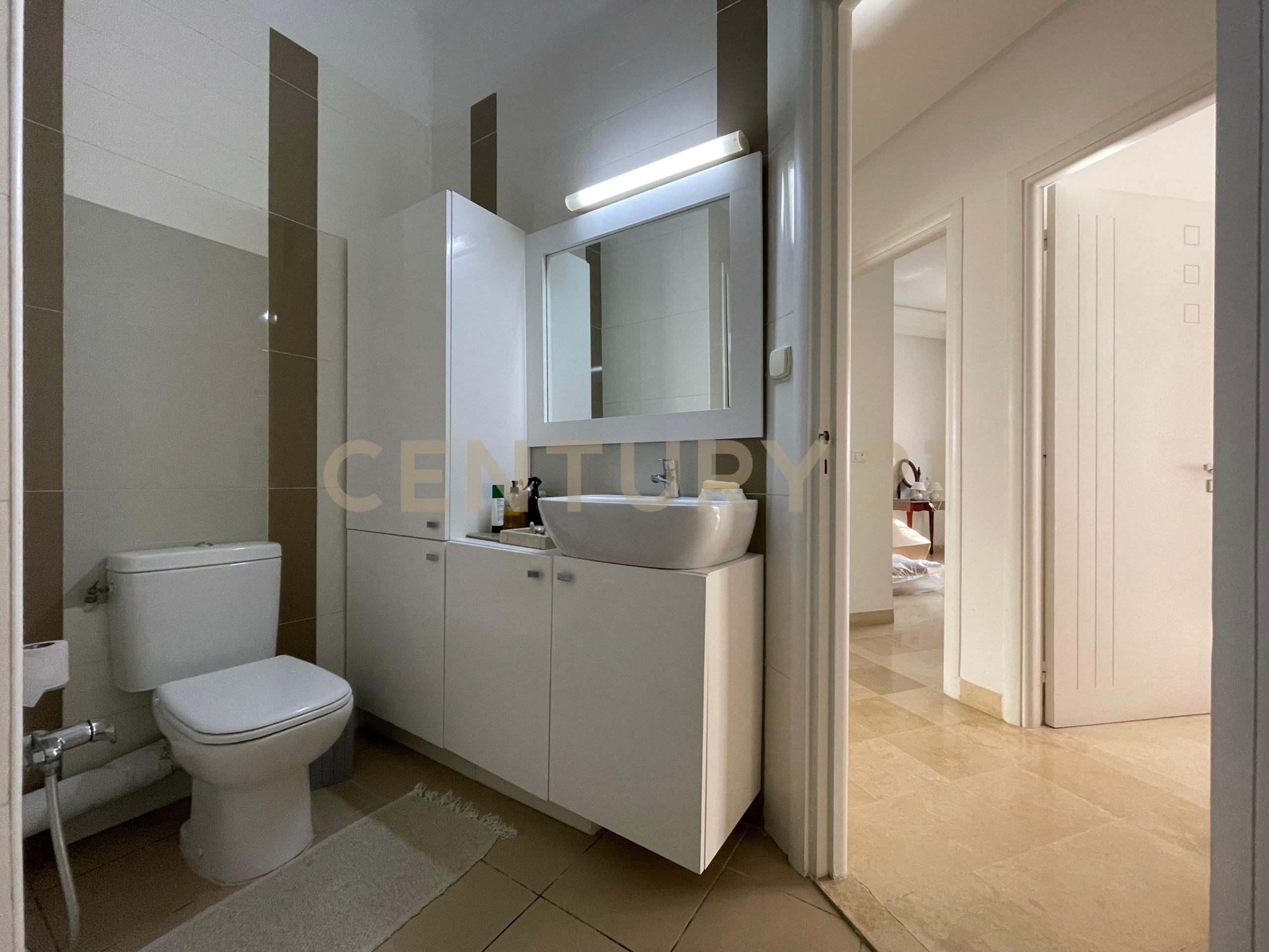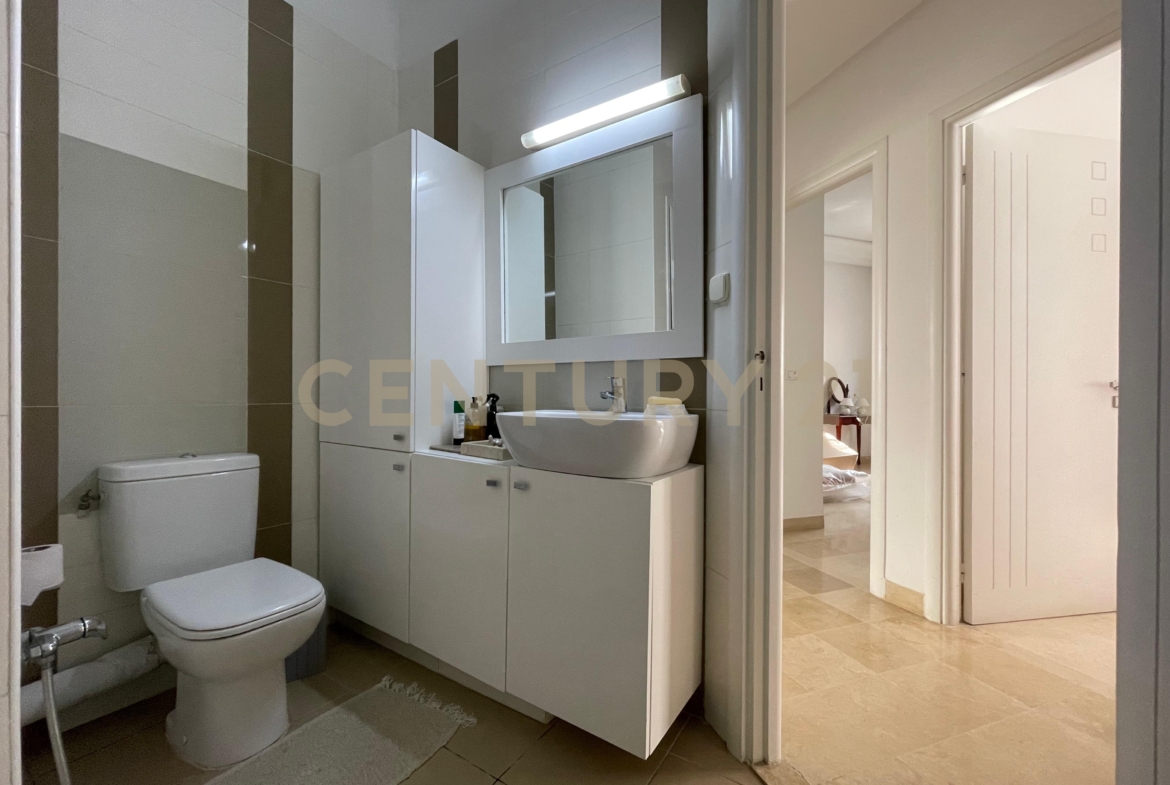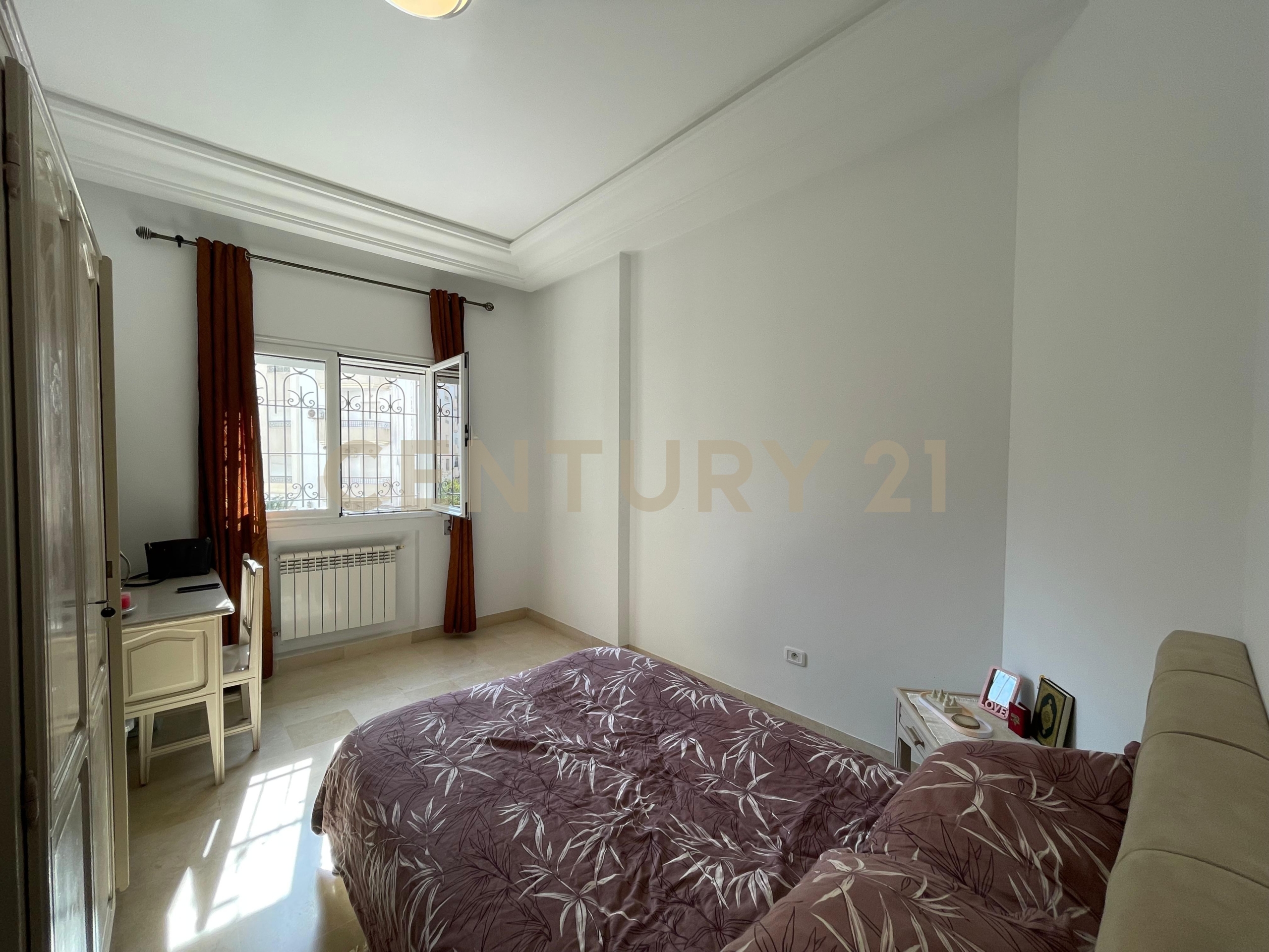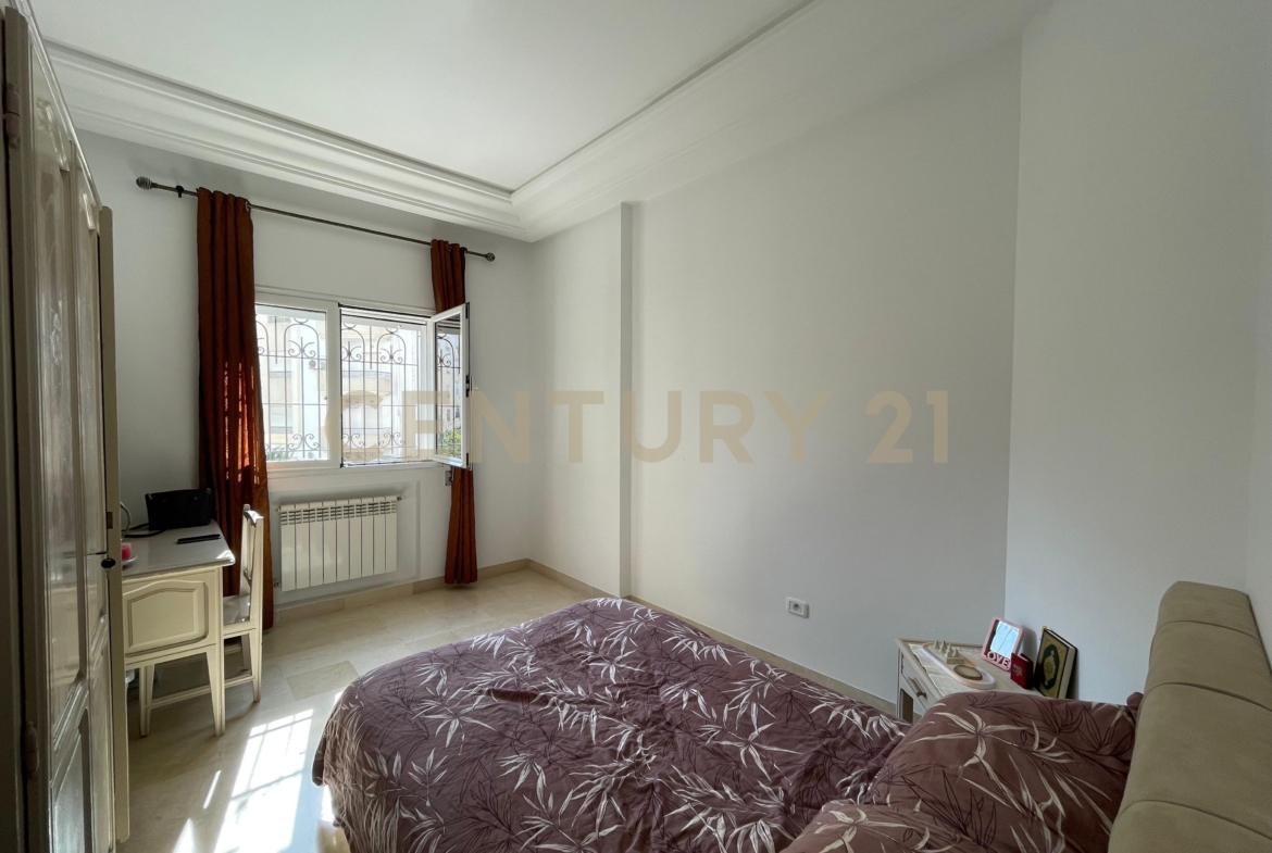 Century 21 Prestige vous propose à la vente cet appartement en S+4 récemment rénové d’une superficie totale de 176m² situé dans une résidence calme et gardée à la Cité Les Palmeraies.