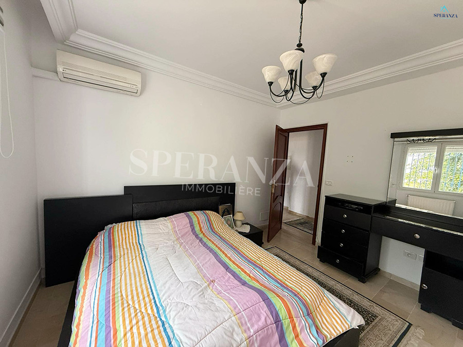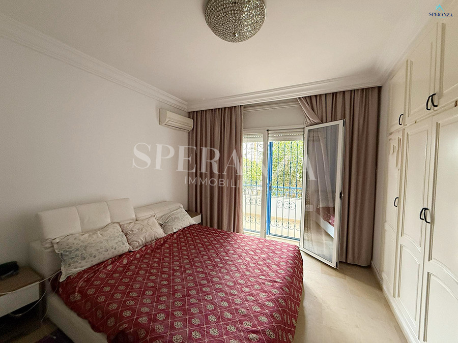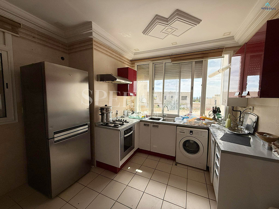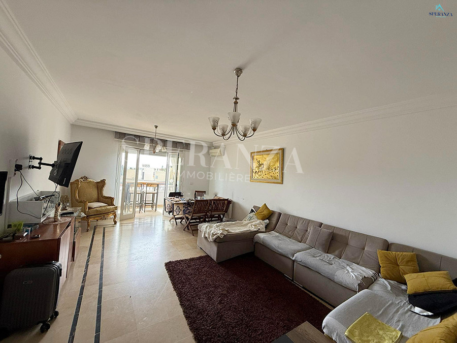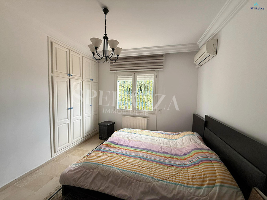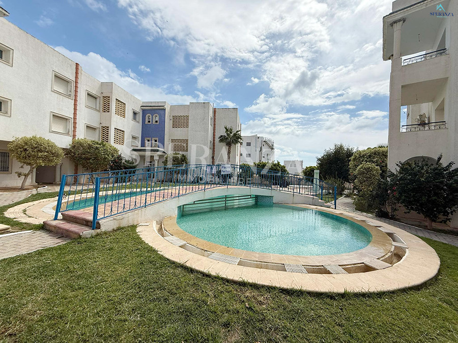 Speranza immobilière Hammamet vous propose à la location vacances Cet appartement situé a Hammamet-centre. en premier étage. L’entrée s’ouvre sur un jardin enveloppant paysagé et un piscine collectif .La partie jour se compose par un salon lumineux ,une cuisine entièrement bien équipée, et une salle d’eau pour les invités. Quant à la partie nuit dispose trois chambres à coucher .Et un terrasse .