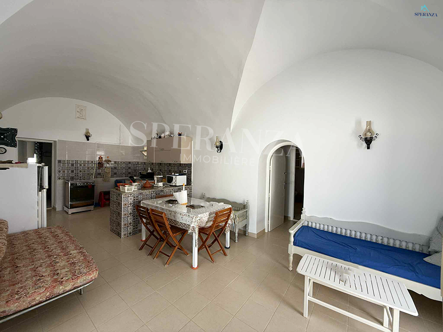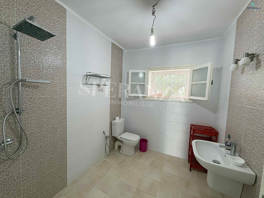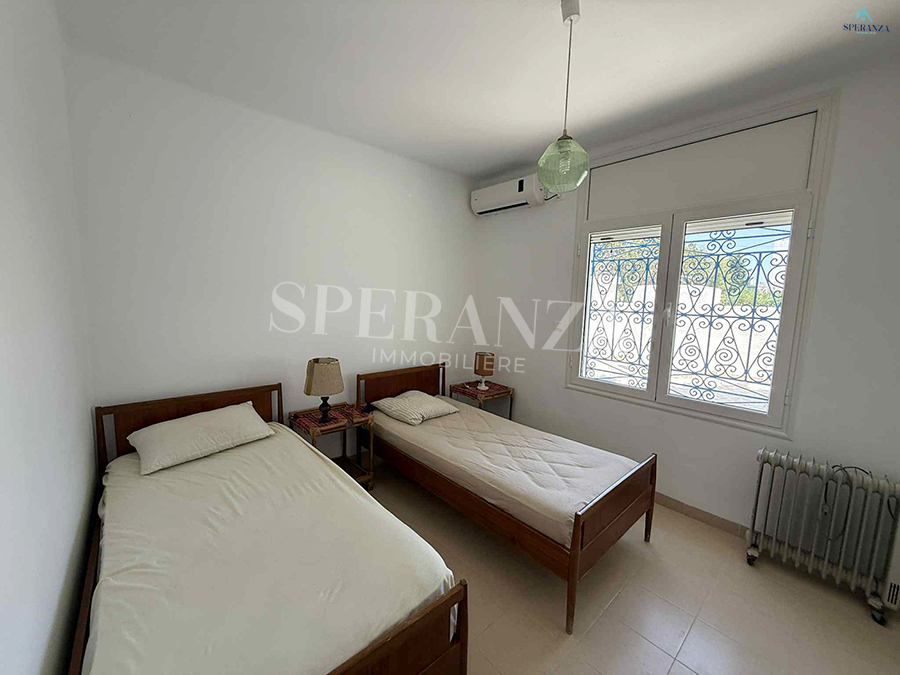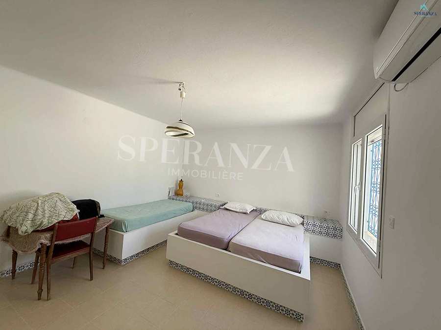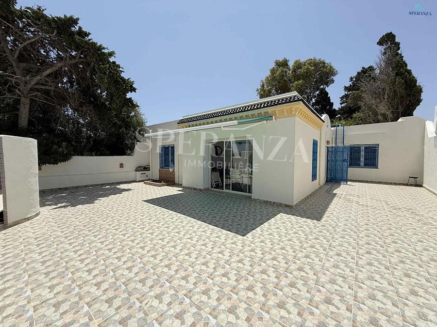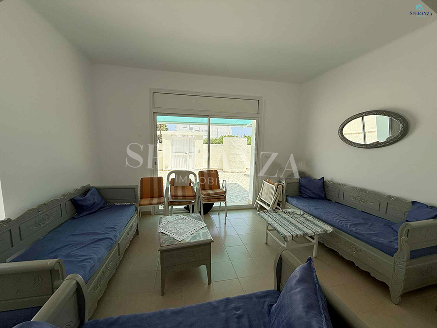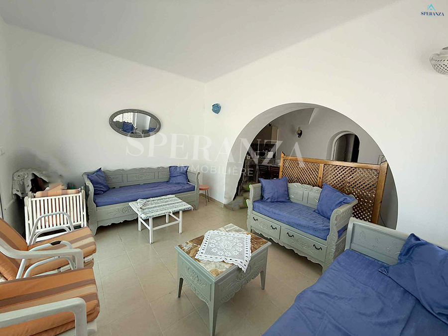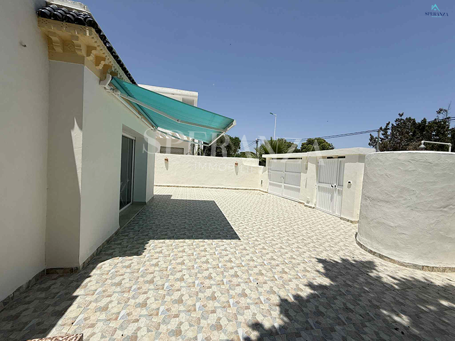 Speranza immobilière Hammamet vous propose à la location vacances cette Villa située à Nabeul proche des commodités elle est Bénéficiée d’un terrasse.La partie jour est composée principalement d’un salon, une cuisine dispose plusieurs éléments de rangements et une salle d’eau pour les invitées. La partie nuit se compose par une suite parentale, une chambre à coucher. Ainsi qu’un garage.NB : 2 minutes à la plage.