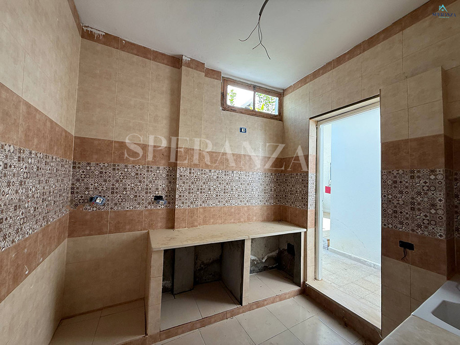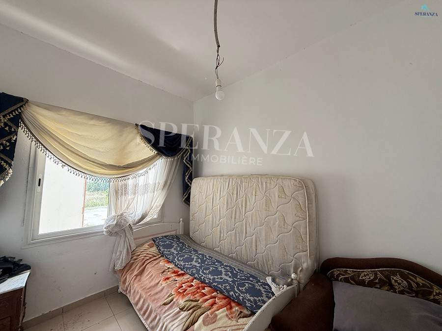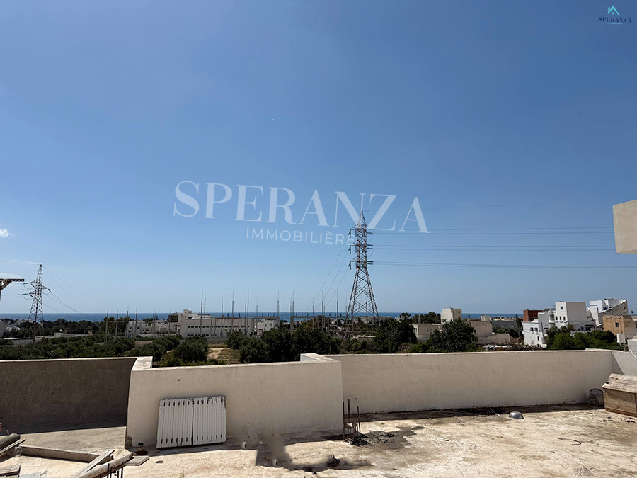 Speranza immobilière Hammamet vous propose à la vente Cette maison situé à Hammamet nord, proche de toutes les commodités . La partie jour se compose par un salon lumineux,d’une cuisine aménagée avec des espaces de rangement, une salle d’eau . Et le compartiment nuit se compose par deux chambres à coucher. Ainsi q’un terrasse vue sur mer .