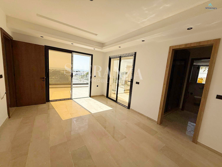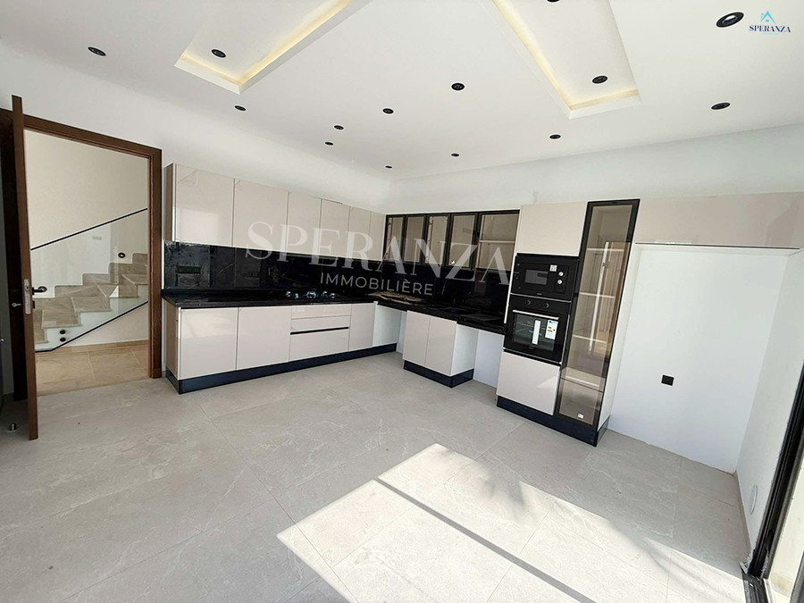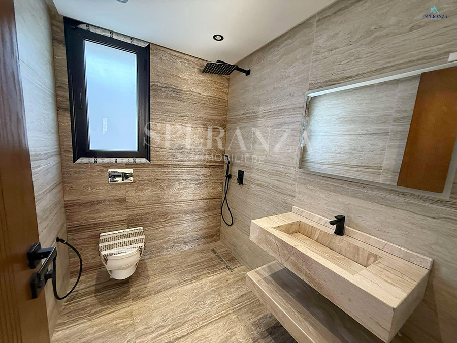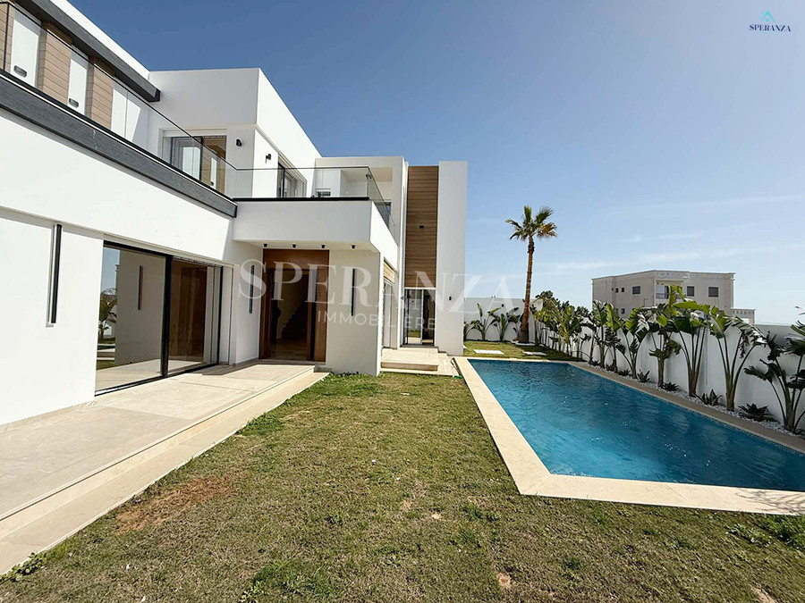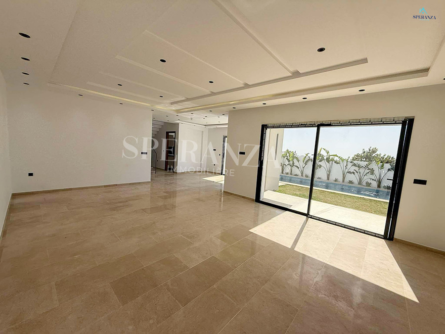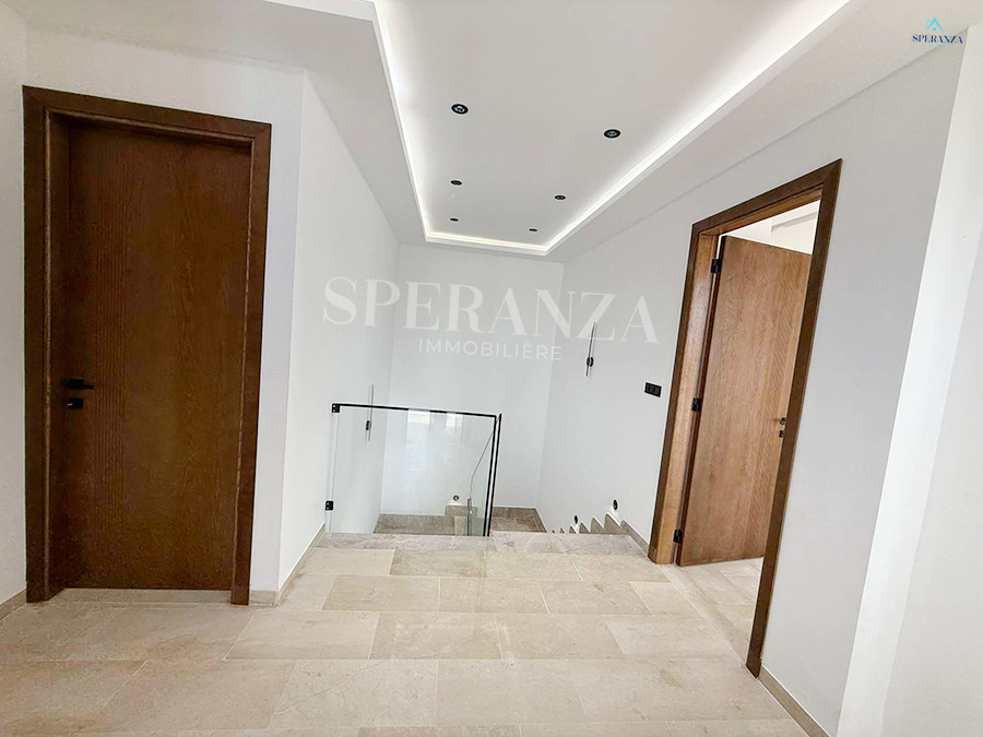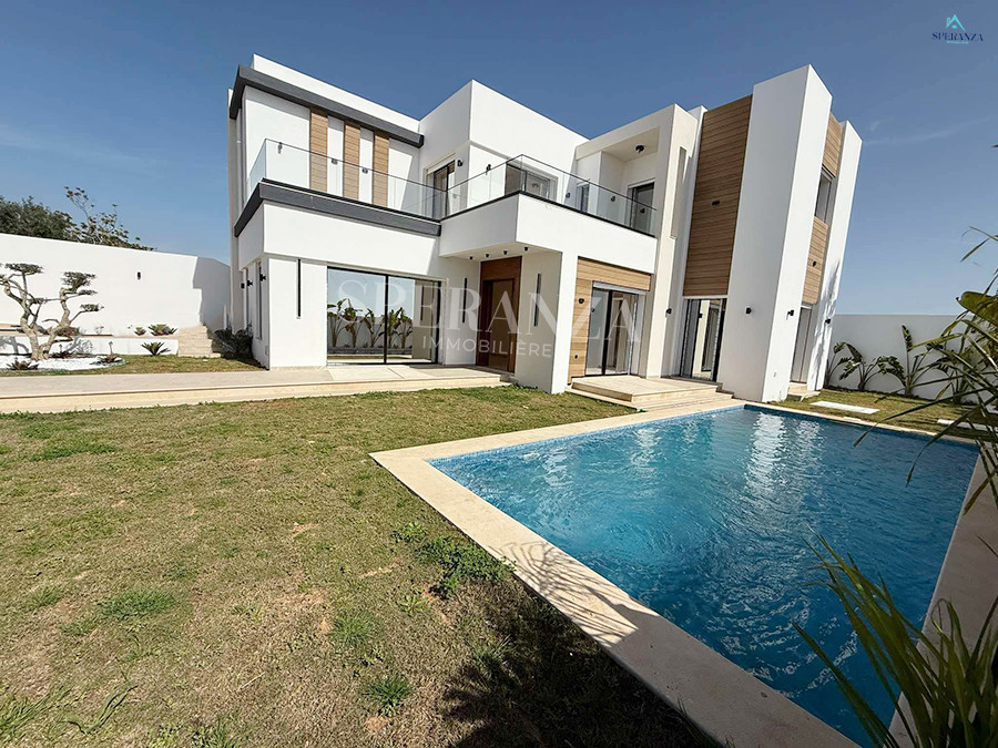 Speranza immobilière vous propose à la vente Cette villa style moderne situé à Hammamet nord . L’entrée principale bénéficie d’un jardin gazonné qui offre plusieurs espaces, un piscine. Au rez de chausser se trouve une salon lumineux grâce à ses fenêtre qui offre une vue sur le jardin,une cuisine aménagée avec des espaces de rangement ,une chambre à coucher ,une salle d’eau pour les invités. Un escalier nous mène vers 1ér étage qui se compose une suite parentales et deux chambres à coucher ,une terrasse vue des mer.Un garage pour la voiture .