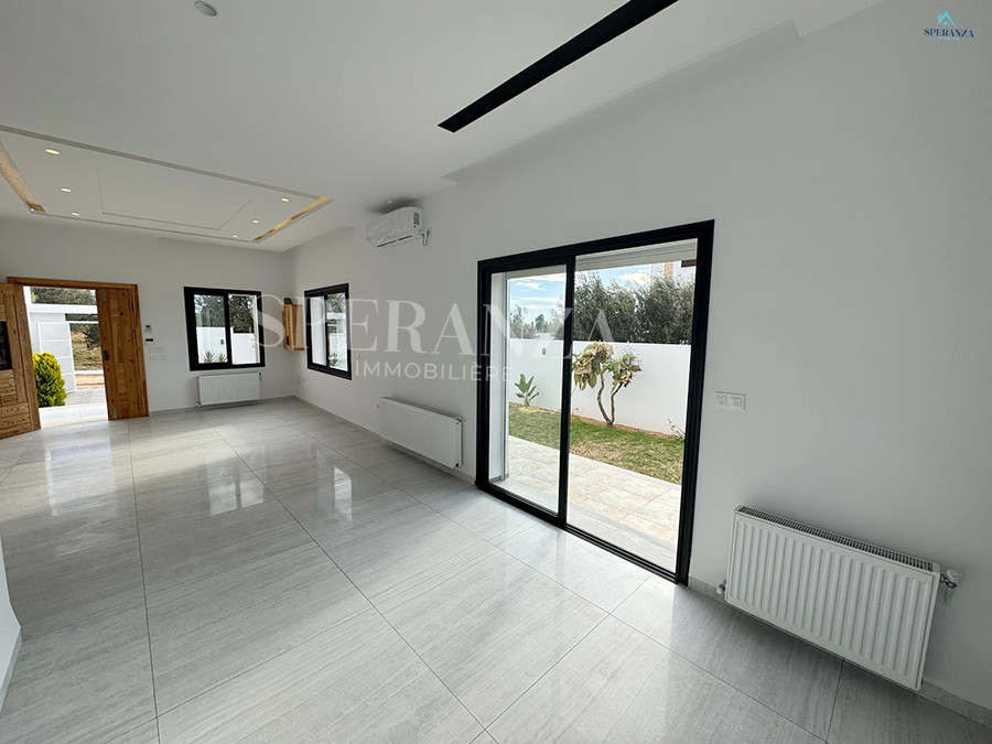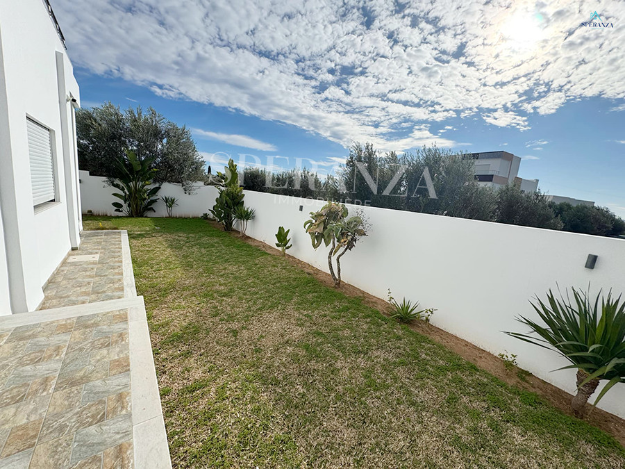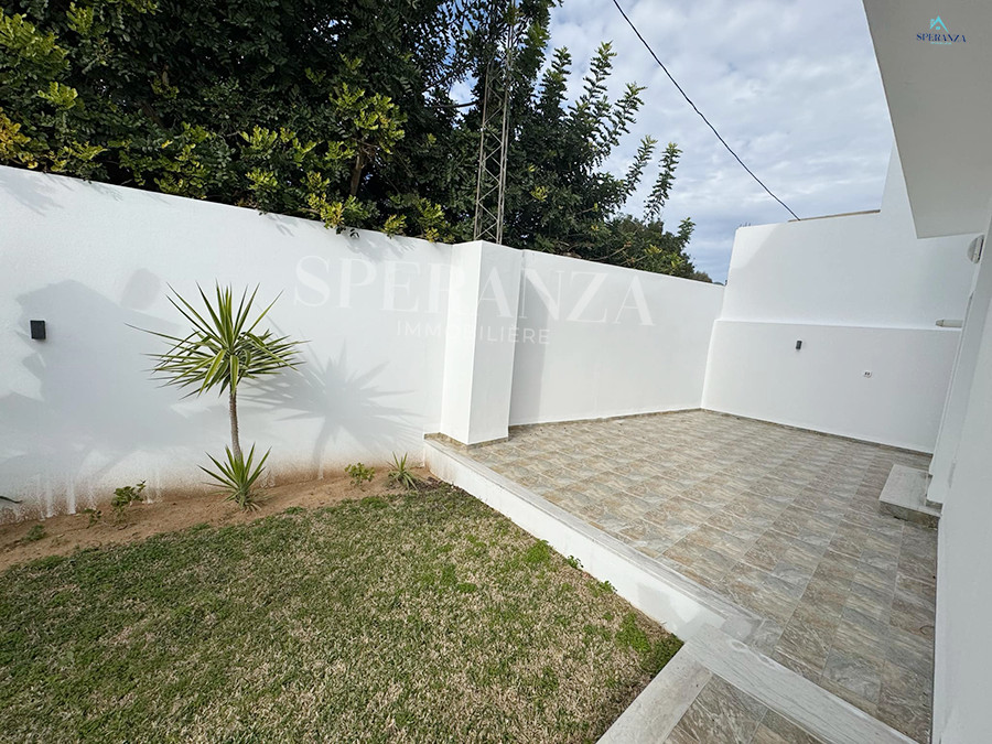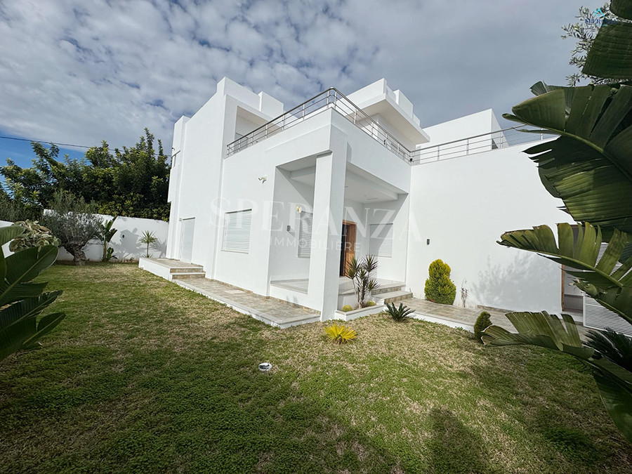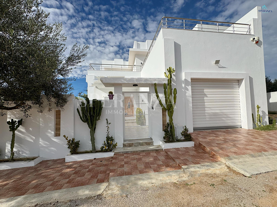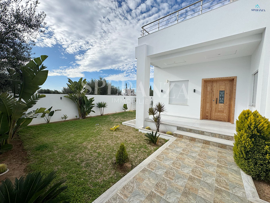 Speranza immobilière Hammamet vous propose la vente cette villa se situé à Hammamet. L’entrée principale bénéficie d’un jardin gazonné qui offre plusieurs espaces.Au rez de chausser se trouve un salon ,une cuisine ,une salle d’eau.une chambre . Un escalier nous mène vers 1èr étage qui se compose par deux suite parentale et une terrasse un garage pour la voiture.