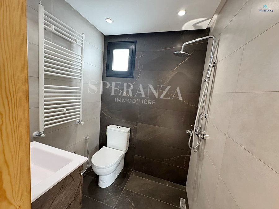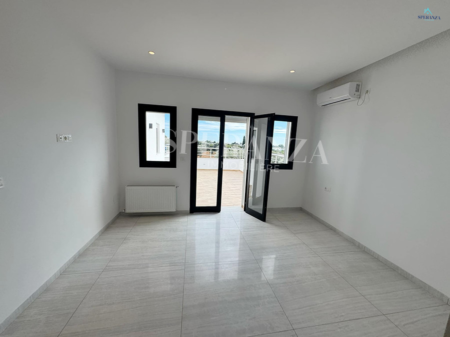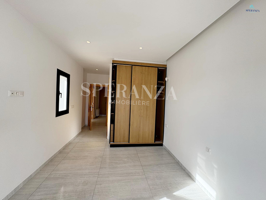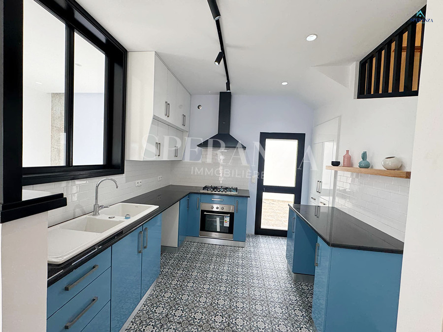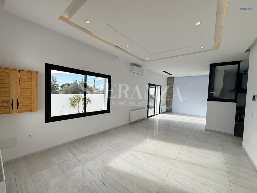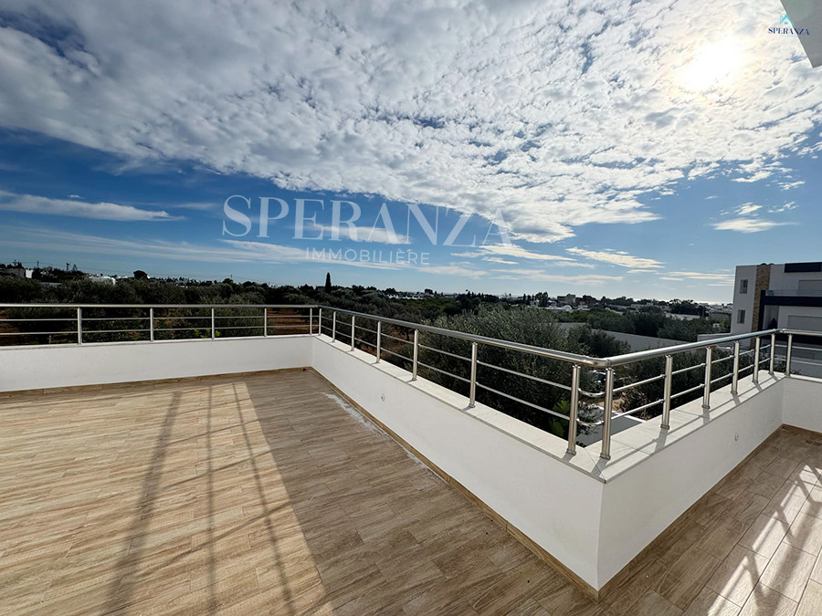 Speranza immobilière Hammamet vous propose la vente cette villa se situé à Hammamet. L’entrée principale bénéficie d’un jardin gazonné qui offre plusieurs espaces.Au rez de chausser se trouve un salon ,une cuisine ,une salle d’eau.une chambre . Un escalier nous mène vers 1èr étage qui se compose par deux suite parentale et une terrasse un garage pour la voiture.