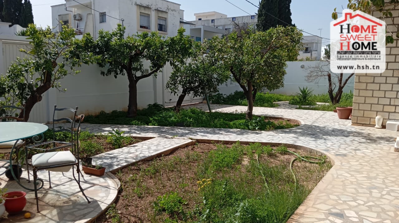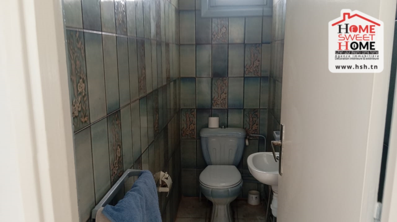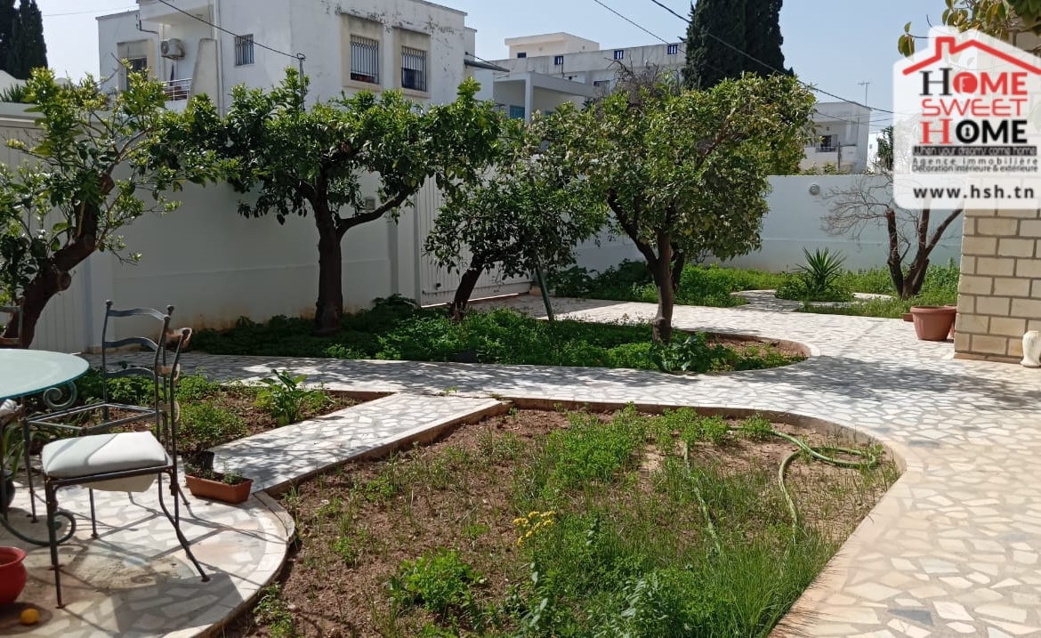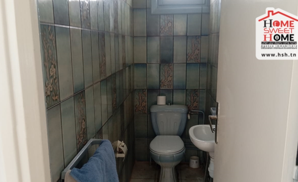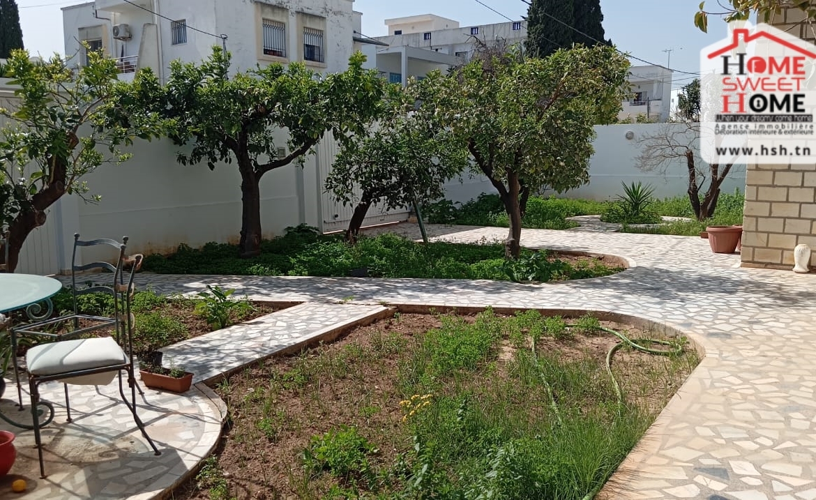 Une villa donnant sur deux rues, d’une superficie de 462 m², située dans un bon quartier à La Nouvelle Ariana. Au RDC, on trouve un salon, une cuisine, une chambre et une salle d’eau pour les invités. À l’étage, on a un salon, une salle à manger, quatre chambres (dont deux avec dressing ), un balcon commun et une salle de bain. À l’extérieur, la villa dispose d’un vaste jardin, d’une terrasse et de deux abris pouvant accueillir jusqu’à quatre voitures. NB : Possibilité de bâtir un autre étage.