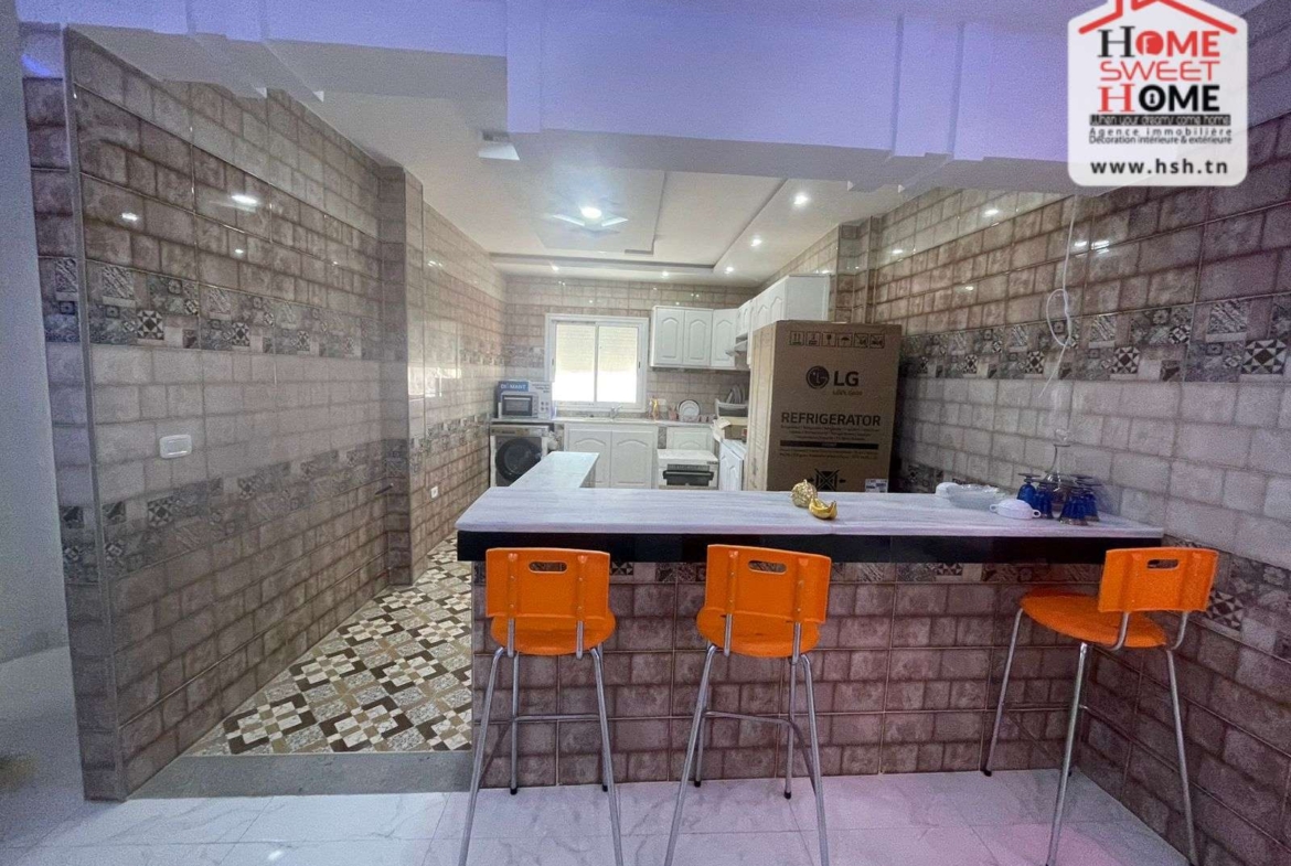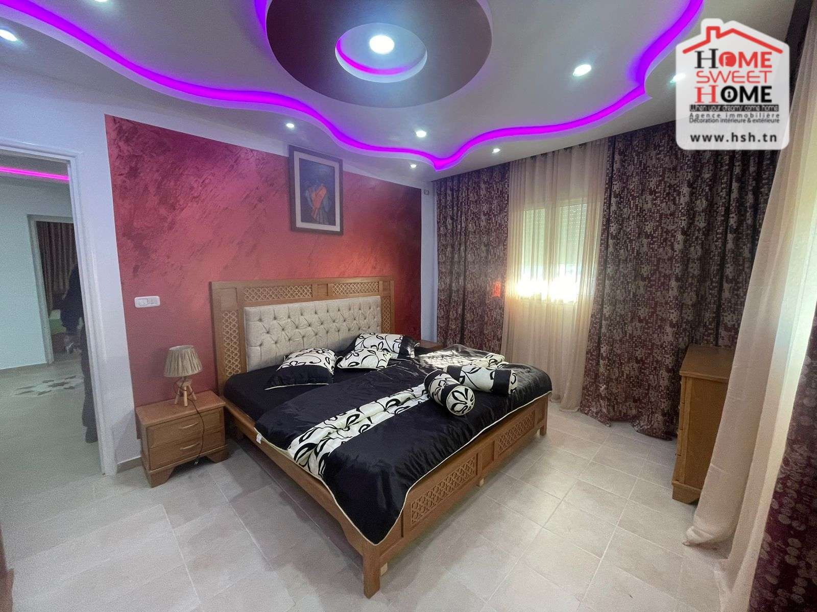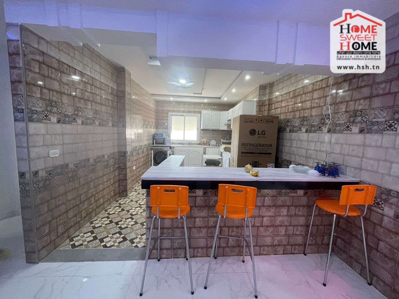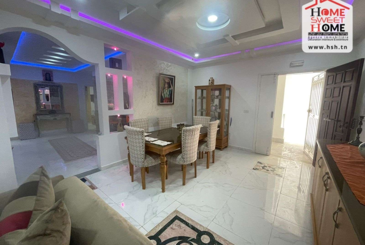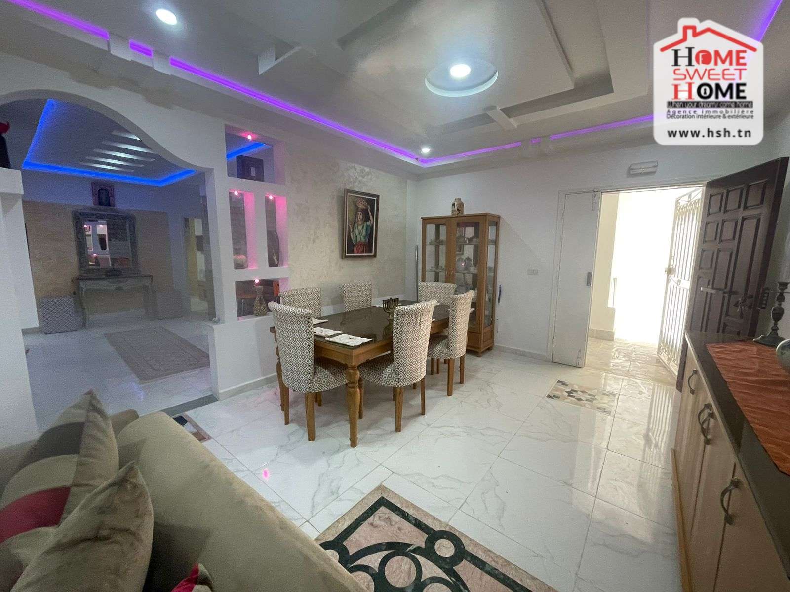 | Une Villa plain pied sur un terrain de 600 m² situé dans un quartier résidentiel à Slimane Plage. A l’entrée, on trouve un salon, une cuisine, 5 chambres à coucher deux salles d’eau et deux salles de bain. A l’extérieur, on a un grand jardin. |