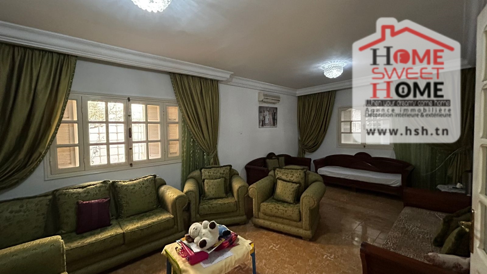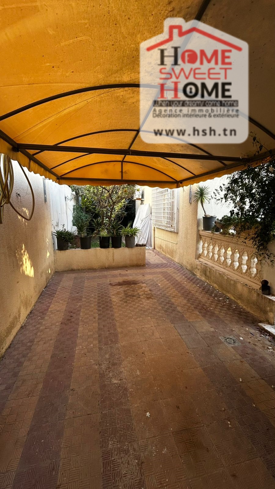 Une Villa sur un terrain d’une superficie de 380 m² situé à Chotrana1, La Soukra . A L’entrée, on a un salon avec terrasse, une cuisine équipée, 3 chambres à coucher et une salle de bain. A L’extérieur, on a une grande terrasse, un jardin, un abri de voiture et un garage.
