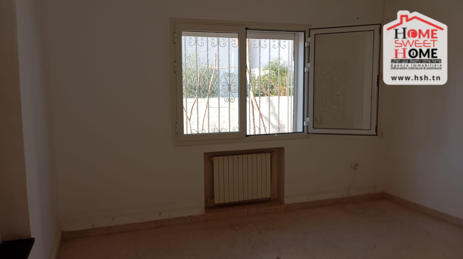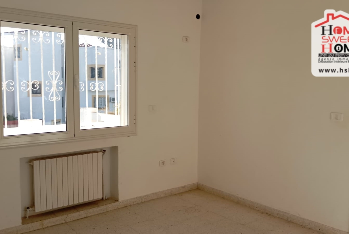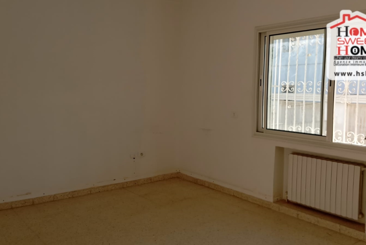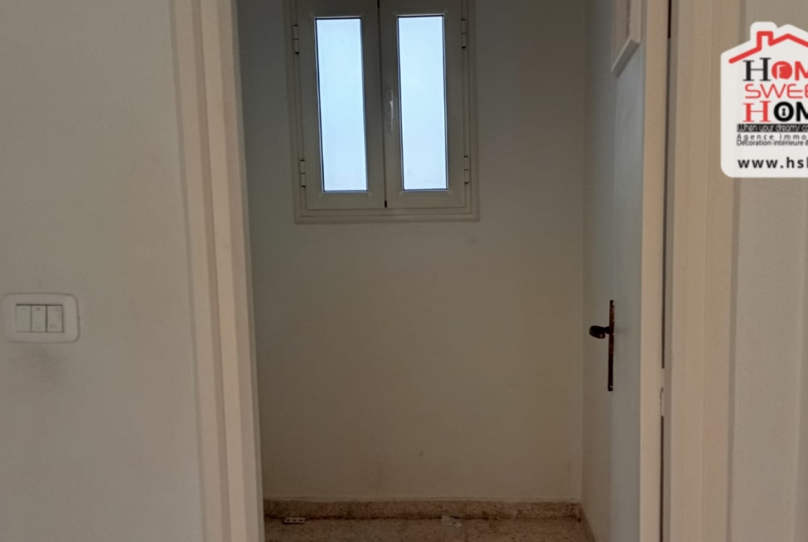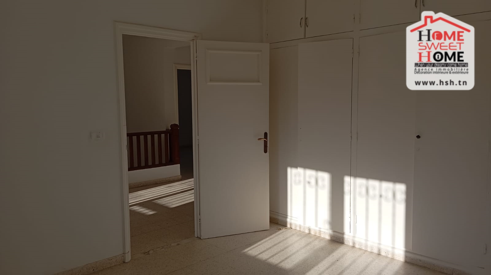 Une charmante villa jumelée d’un côté situé dans un quartier résidentiel très prisé à Riadh EL Andalous. Au RDJ, On trouve un débarras et un parking de voiture. Au RDC, On trouve un double salon, séjour, une salle à manger, une cuisine équipée avec séchoir et une salle d’eau pour les invités. A L’étage, On trouve 4 chambres, un bureau, une salle de bain et un balcon. A L’extérieur, On a une terrasse, un jardin et un abris de voiture.