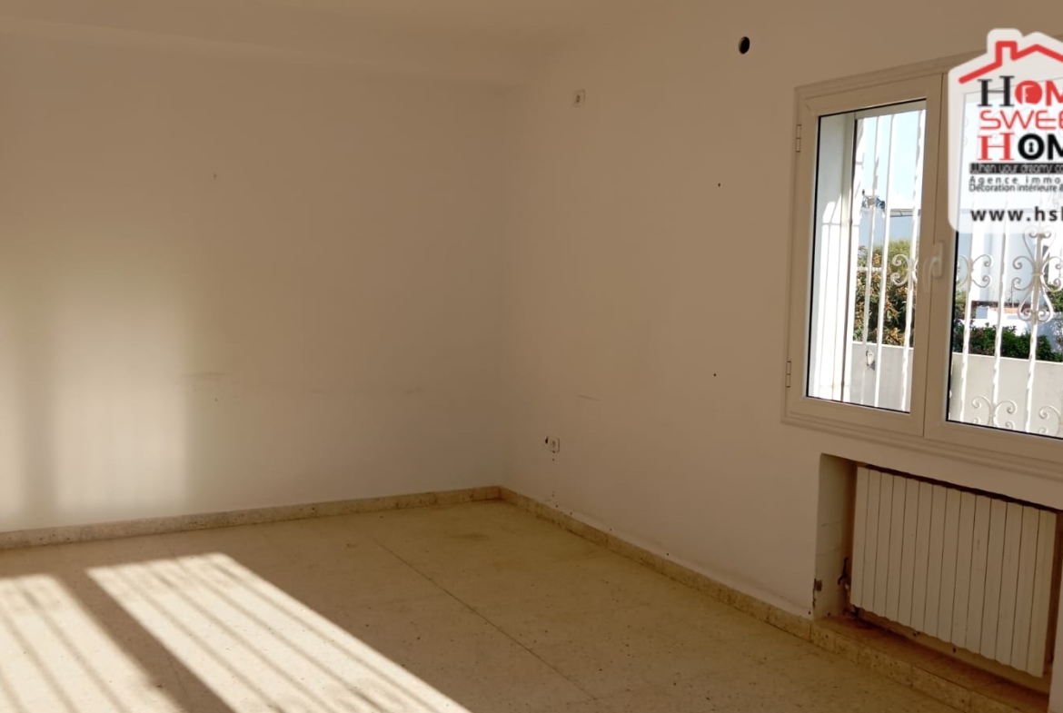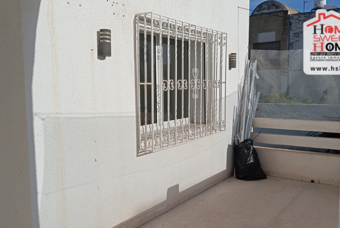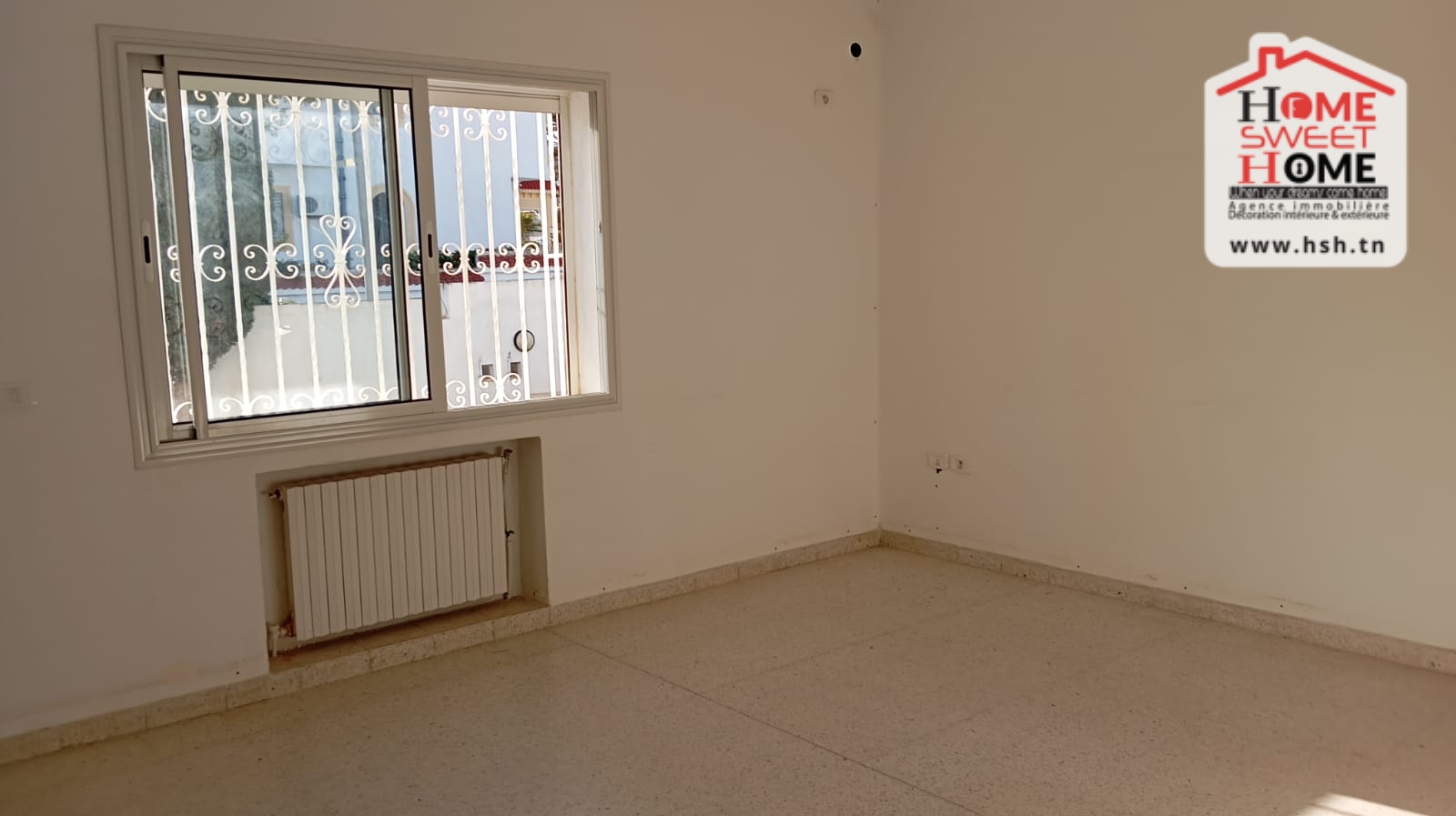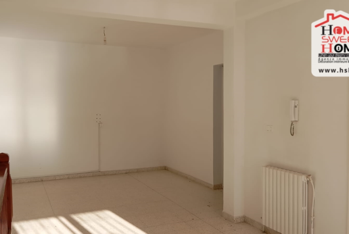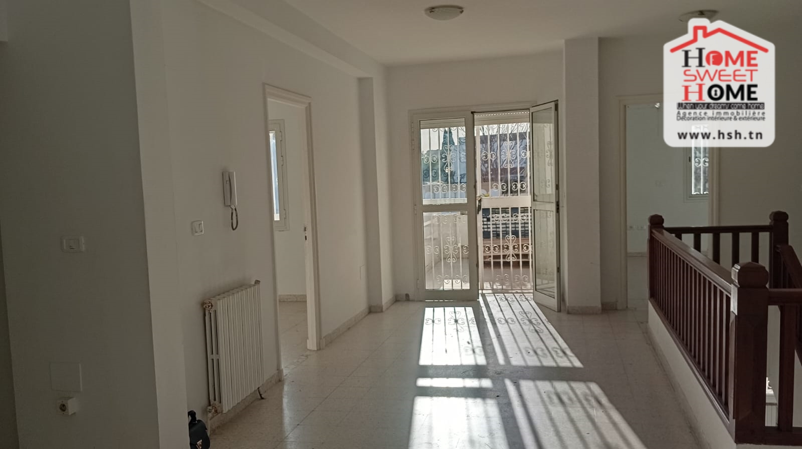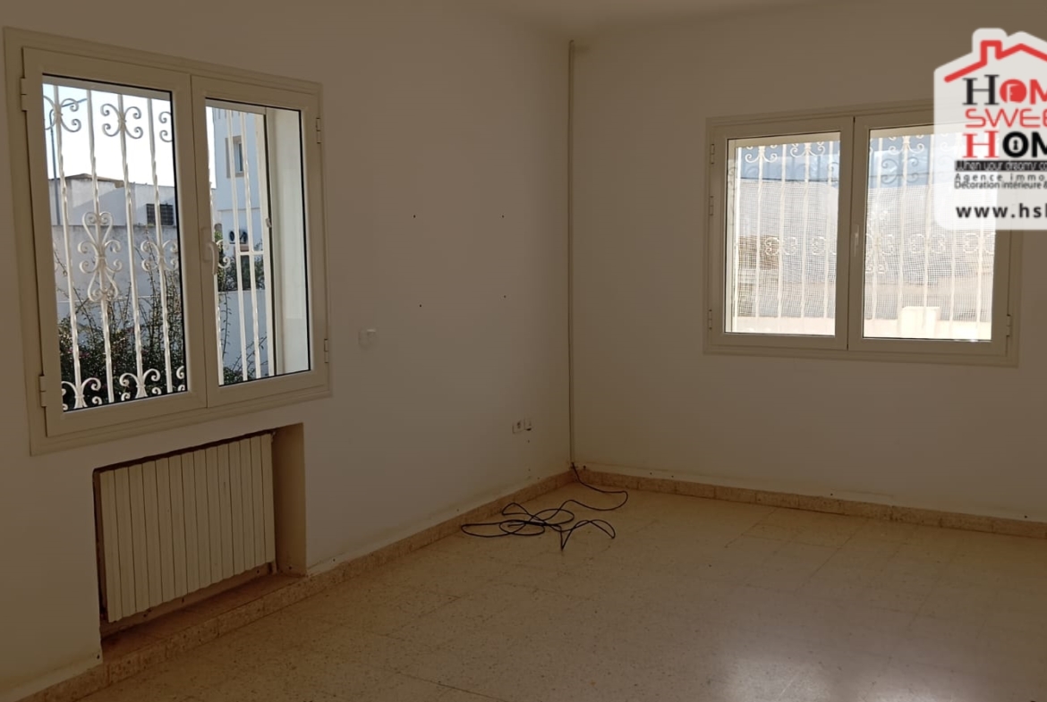 Une charmante villa jumelée d’un côté situé dans un quartier résidentiel très prisé à Riadh EL Andalous. Au RDJ, On trouve un débarras et un parking de voiture. Au RDC, On trouve un double salon, séjour, une salle à manger, une cuisine équipée avec séchoir et une salle d’eau pour les invités. A L’étage, On trouve 4 chambres, un bureau, une salle de bain et un balcon. A L’extérieur, On a une terrasse, un jardin et un abris de voiture.