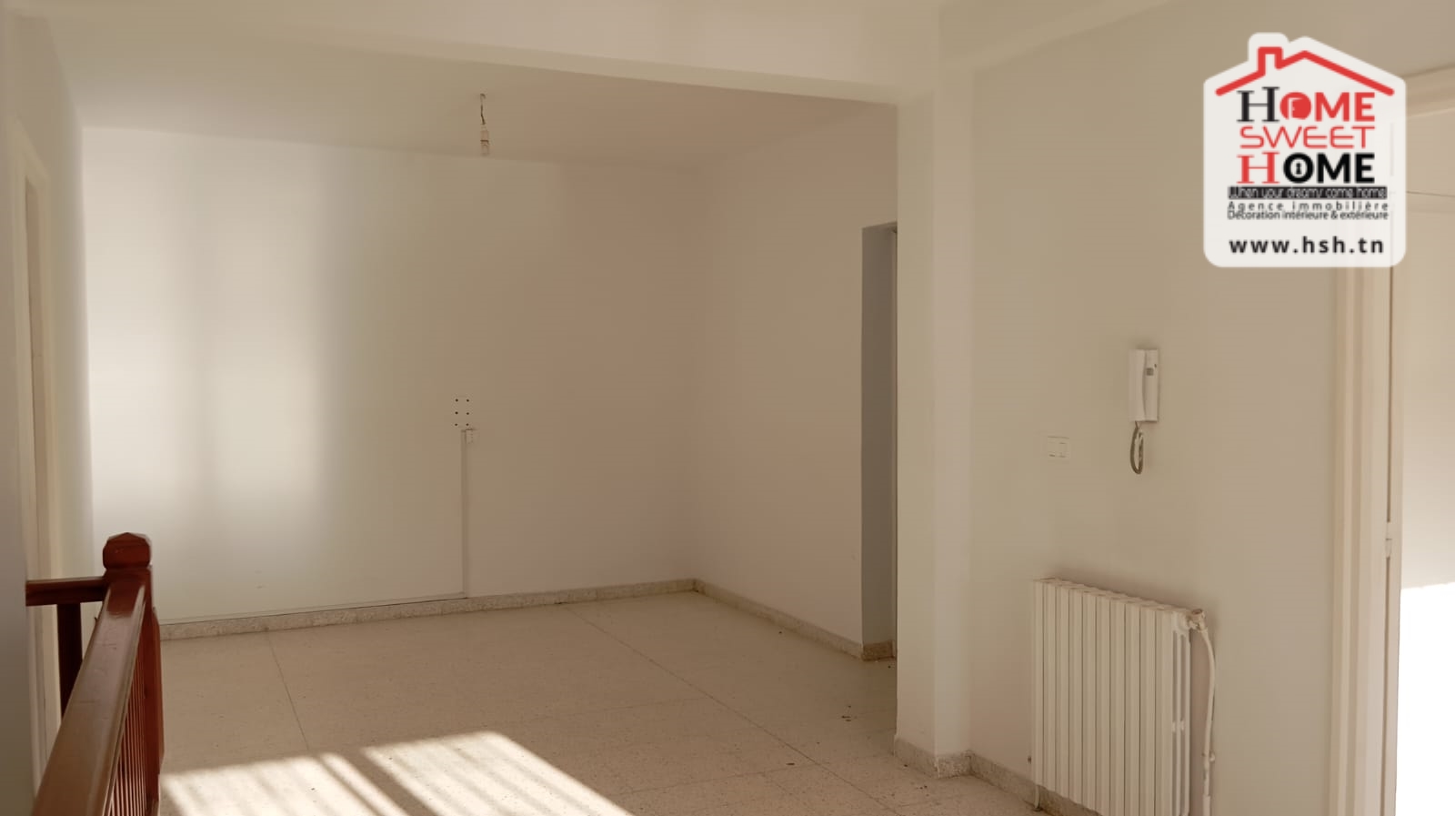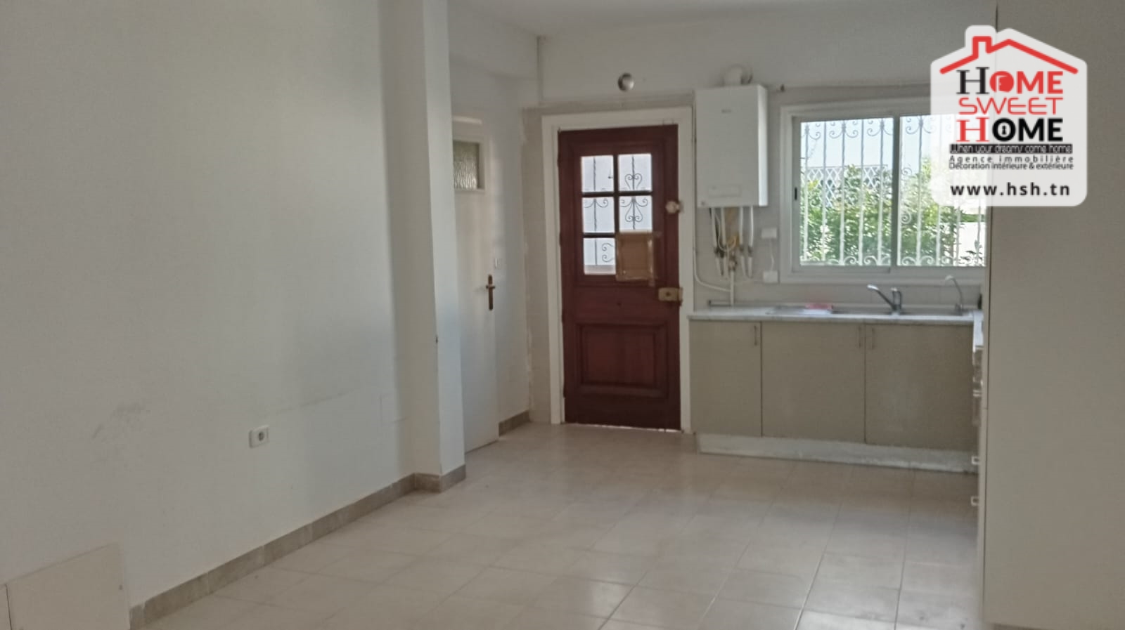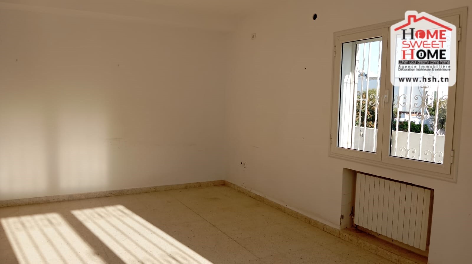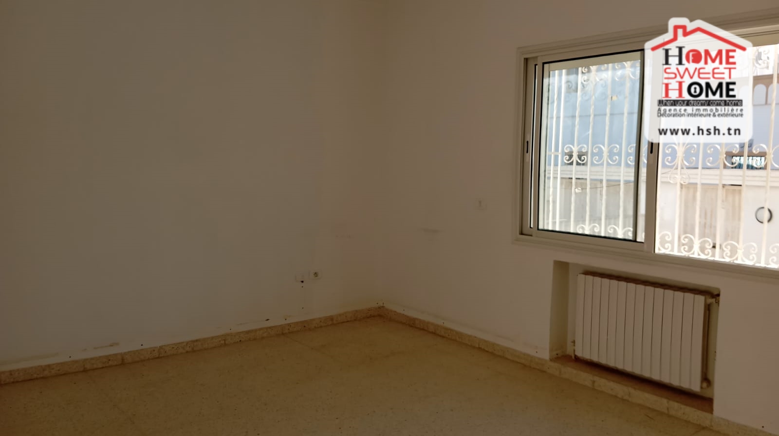 Une charmante villa jumelée d’un côté situé dans un quartier résidentiel très prisé à Riadh EL Andalous. Au RDJ, On trouve un débarras et un parking de voiture. Au RDC, On trouve un double salon, séjour, une salle à manger, une cuisine équipée avec séchoir et une salle d’eau pour les invités. A L’étage, On trouve 4 chambres, un bureau, une salle de bain et un balcon. A L’extérieur, On a une terrasse, un jardin et un abris de voiture.