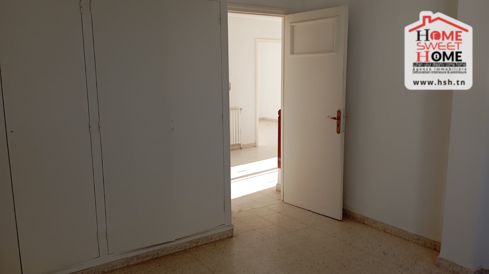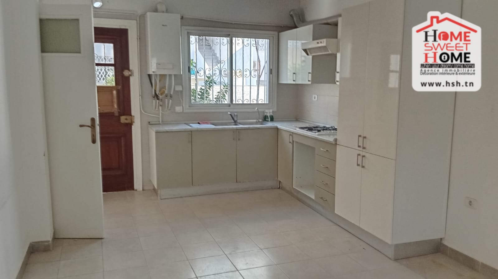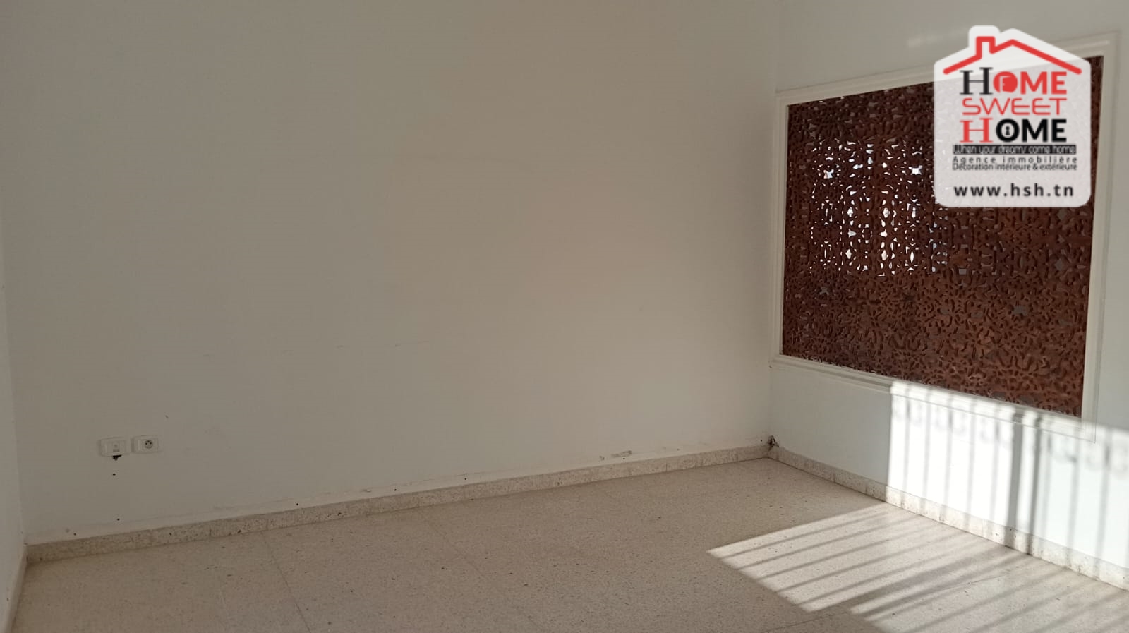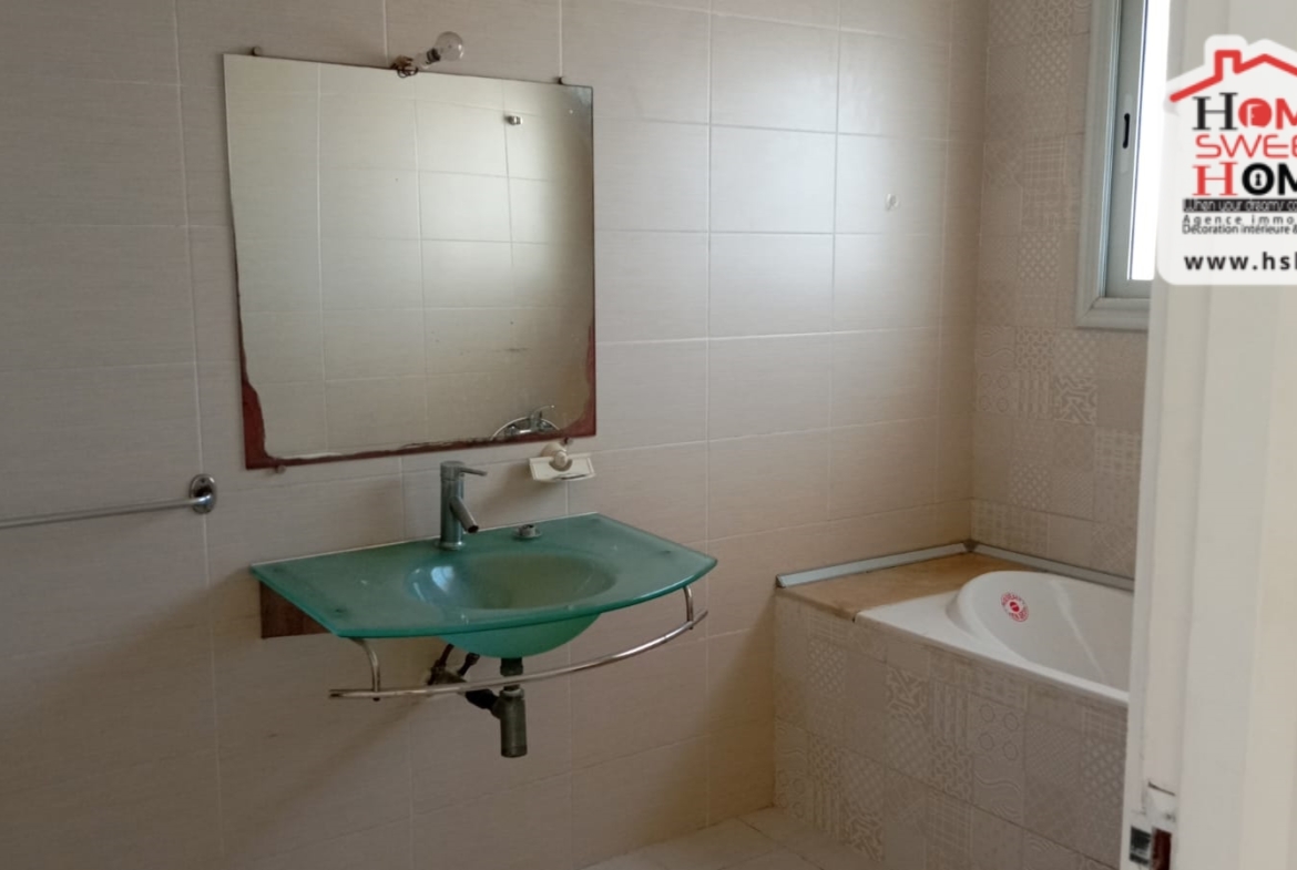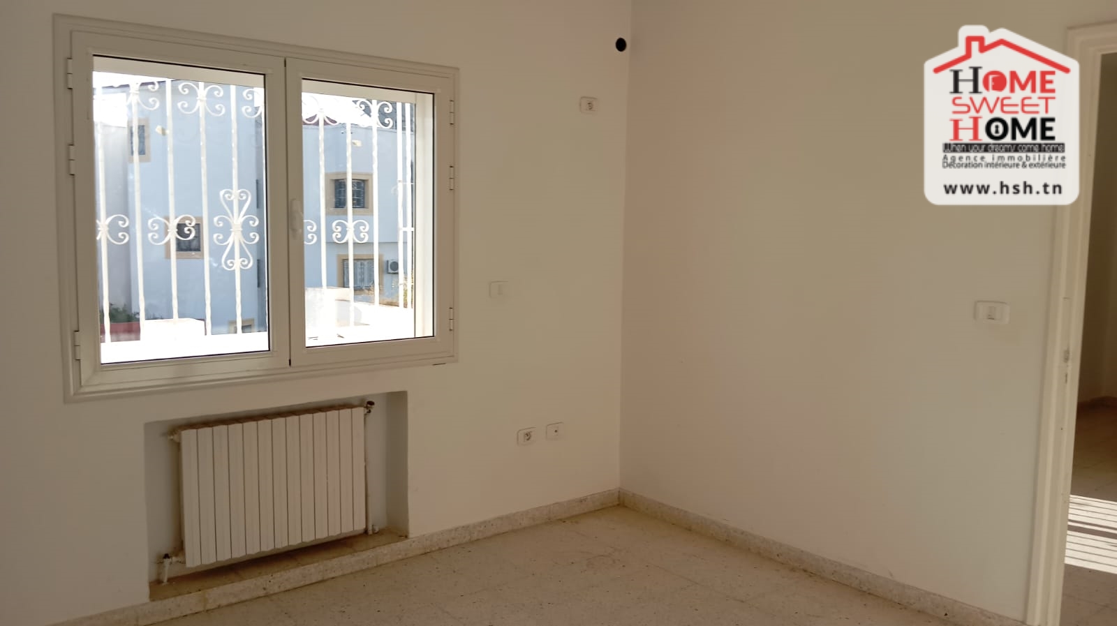 Une charmante villa jumelée d’un côté situé dans un quartier résidentiel très prisé à Riadh EL Andalous. Au RDJ, On trouve un débarras et un parking de voiture. Au RDC, On trouve un double salon, séjour, une salle à manger, une cuisine équipée avec séchoir et une salle d’eau pour les invités. A L’étage, On trouve 4 chambres, un bureau, une salle de bain et un balcon. A L’extérieur, On a une terrasse, un jardin et un abris de voiture.
