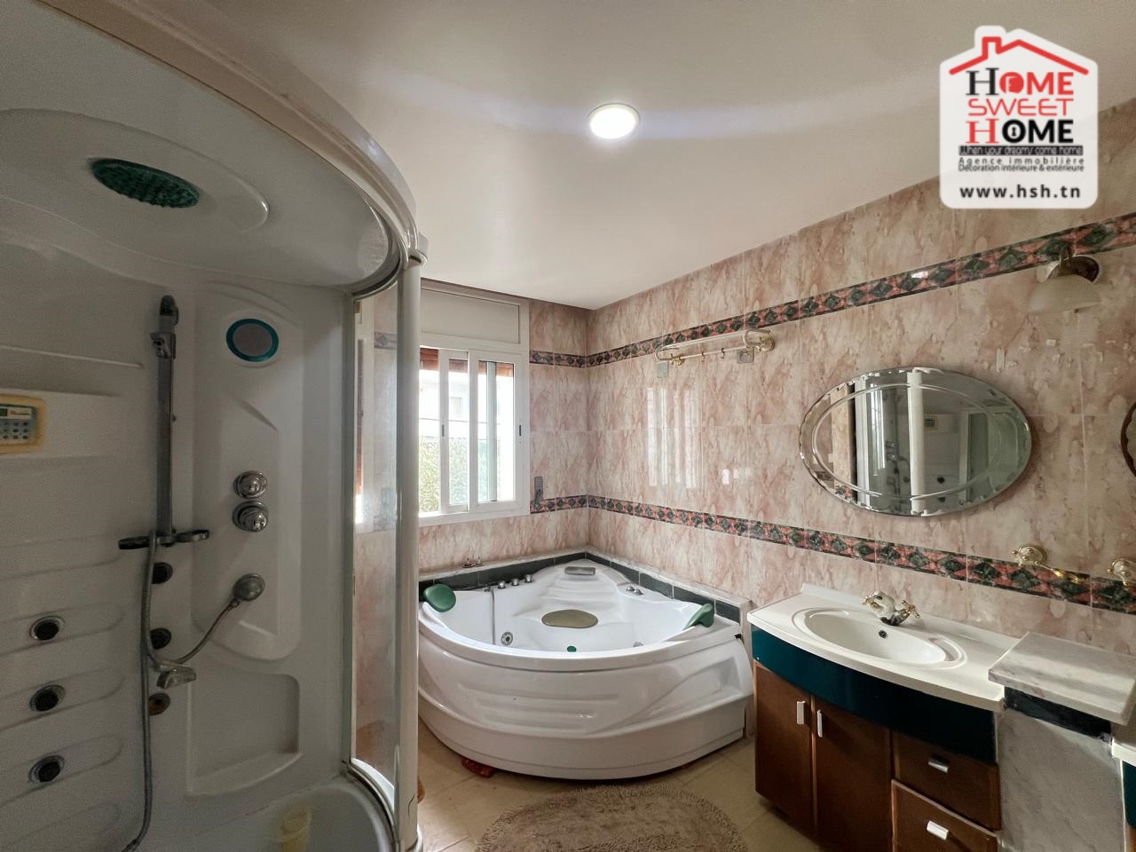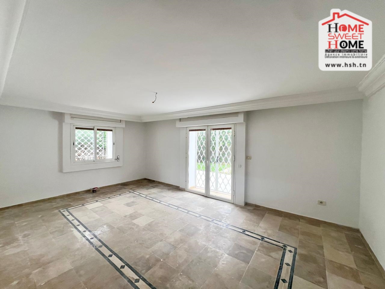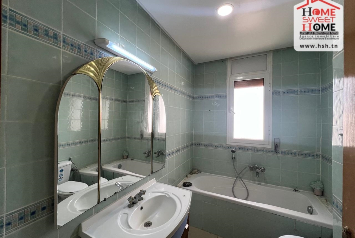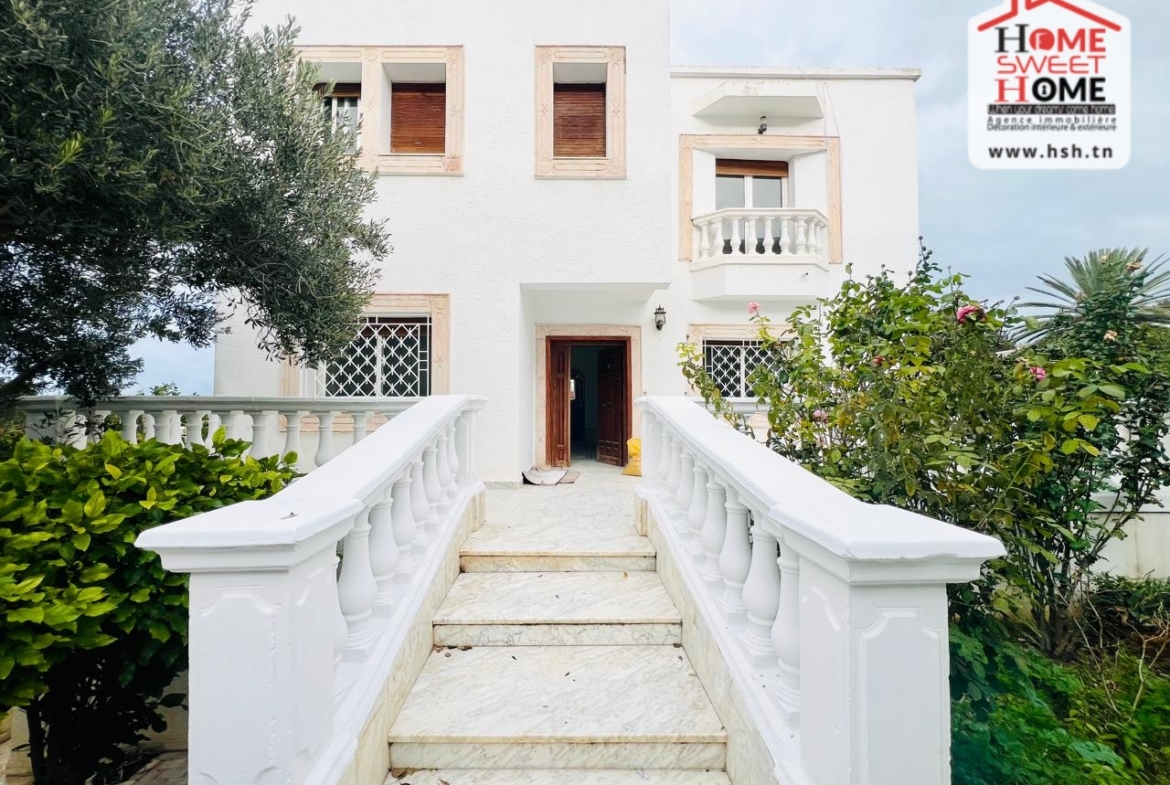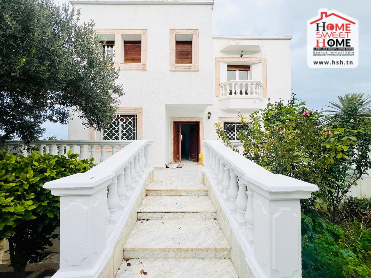 Une majestueuse villa située dans un quartier résidentiel à Gammarth supérieur. Au RDJ, On trouve un séjour donnant directement sur le jardin, une cuisine équipée, 3 chambres avec dressing et une salle de bain. Au RDC , On trouve un lumineux salon, un séjour, une salle à manger et une chambre. A l’étage, On trouve une suite royale, 2 chambres et une salle de bain. A L’extérieur, On a un jardin gazonné, une terrasse et un abris pour deux voitures.