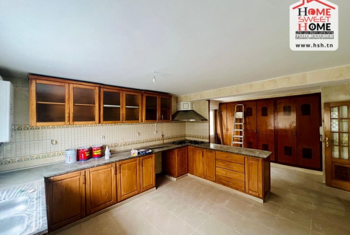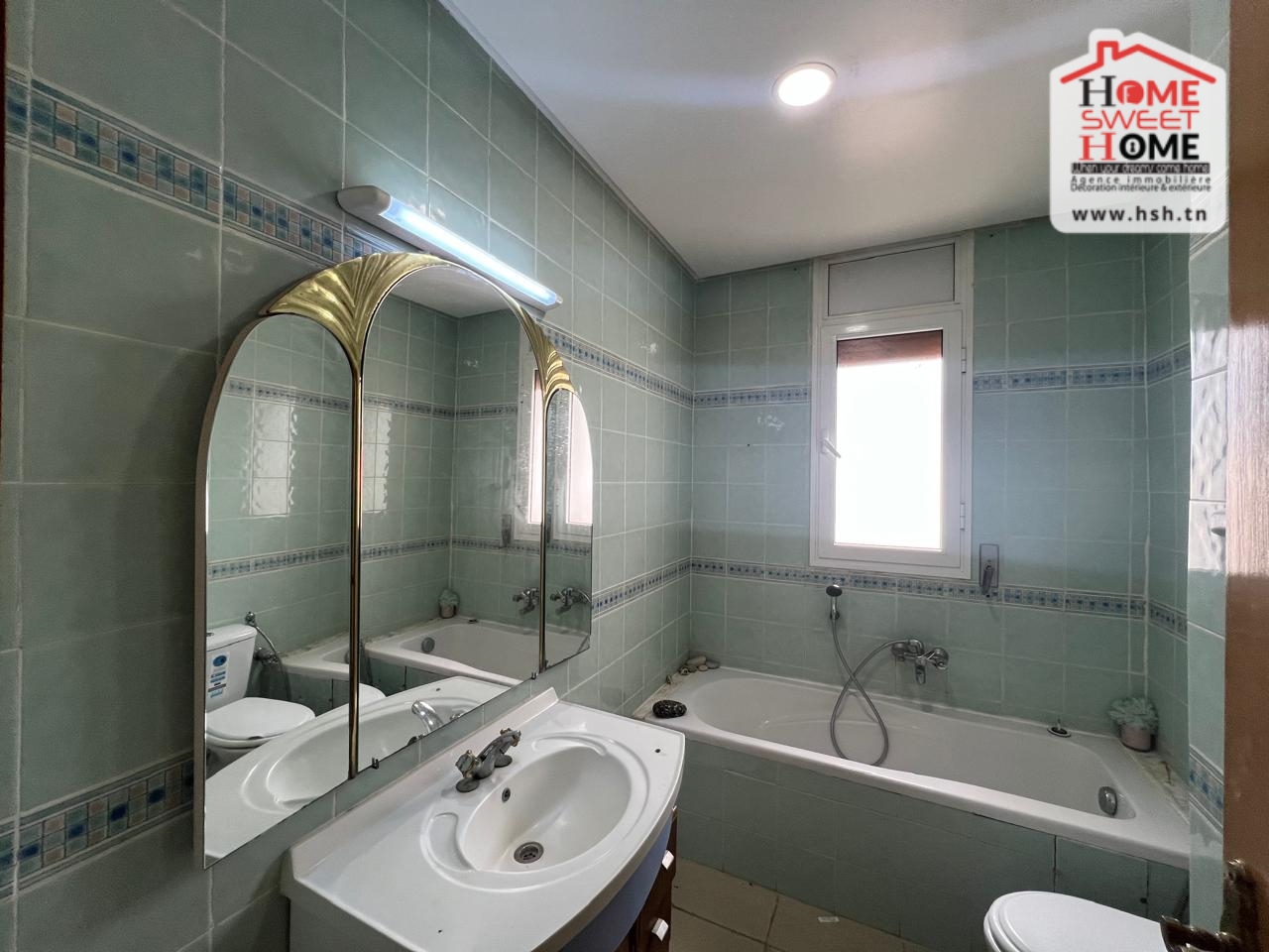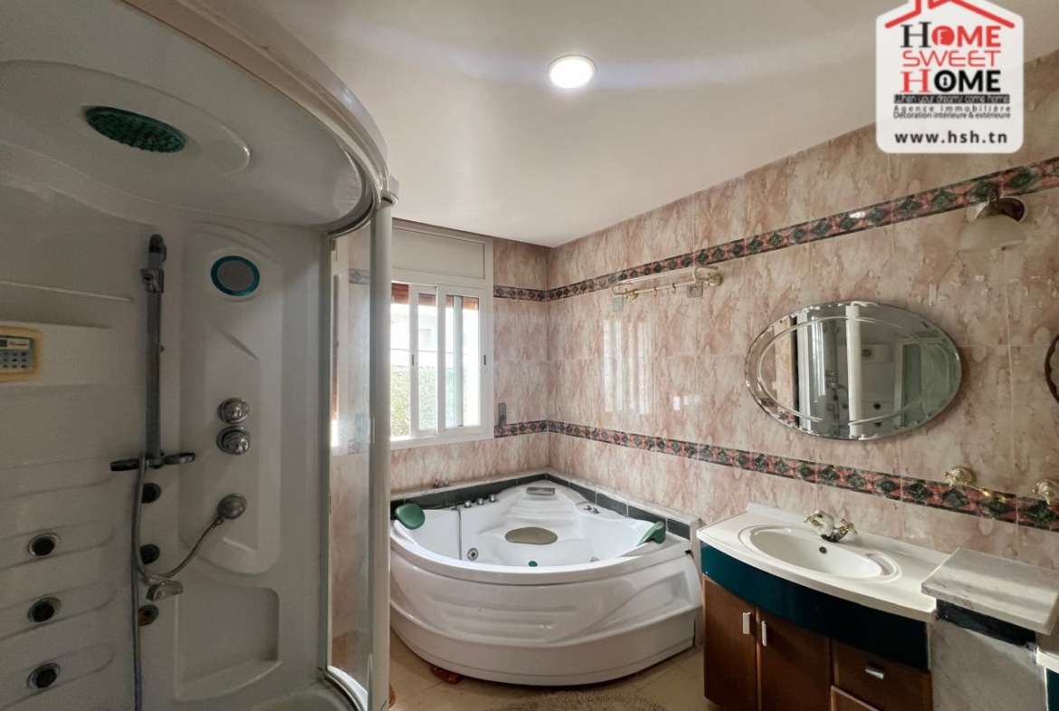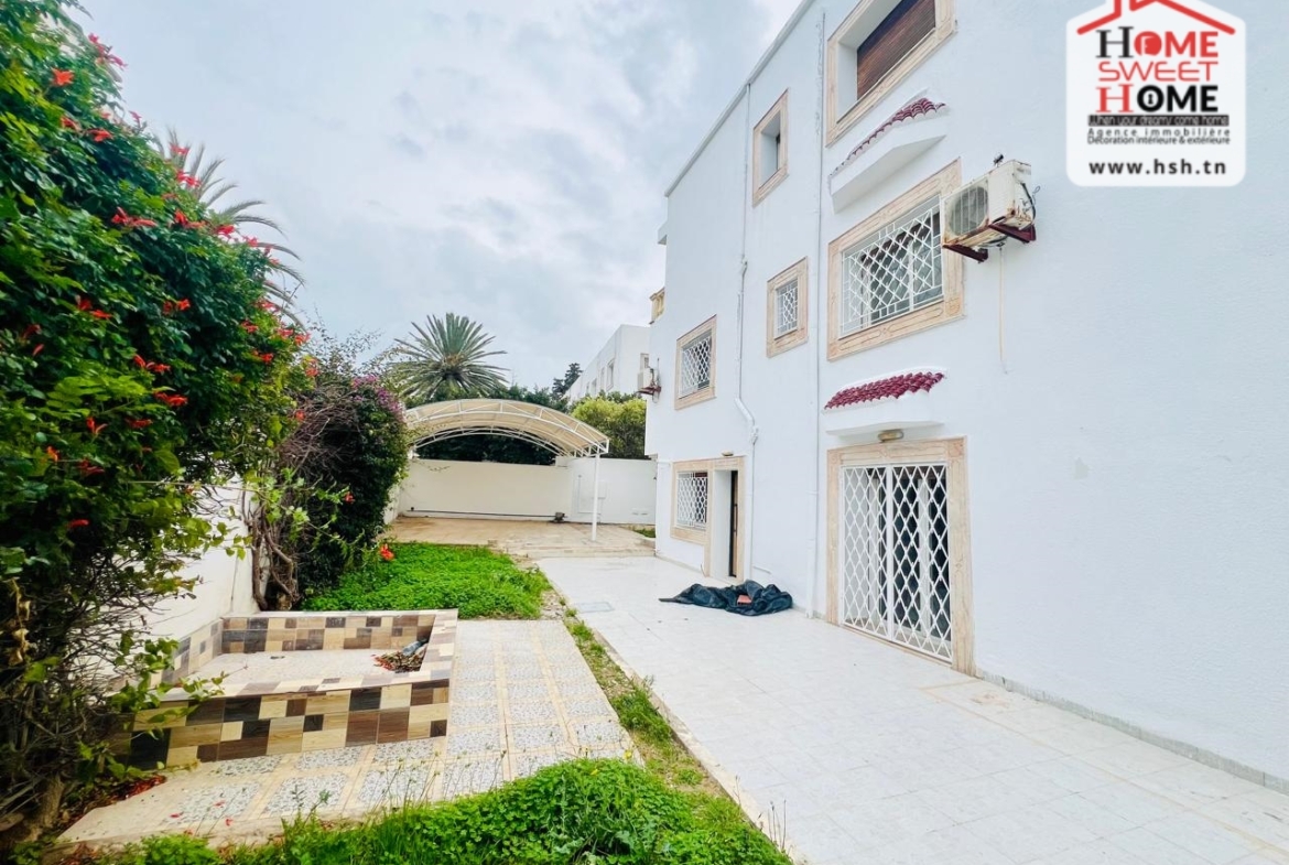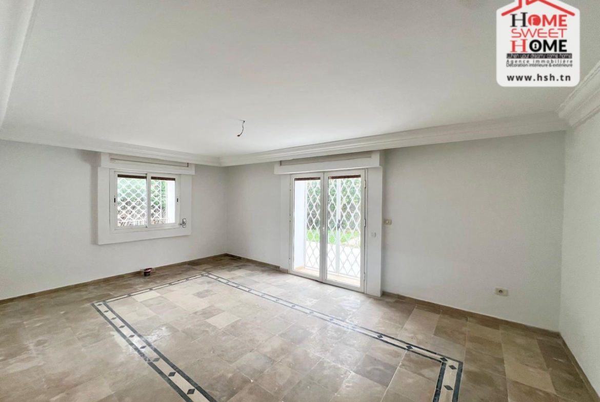 Une majestueuse villa située dans un quartier résidentiel à Gammarth supérieur. Au RDJ, On trouve un séjour donnant directement sur le jardin, une cuisine équipée, 3 chambres avec dressing et une salle de bain. Au RDC , On trouve un lumineux salon, un séjour, une salle à manger et une chambre. A l’étage, On trouve une suite royale, 2 chambres et une salle de bain. A L’extérieur, On a un jardin gazonné, une terrasse et un abris pour deux voitures.