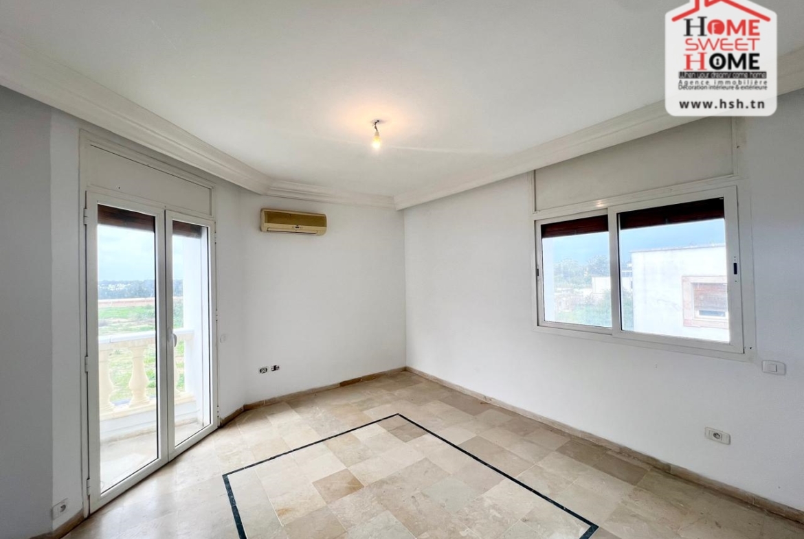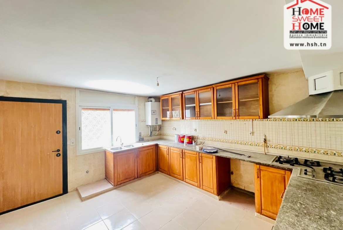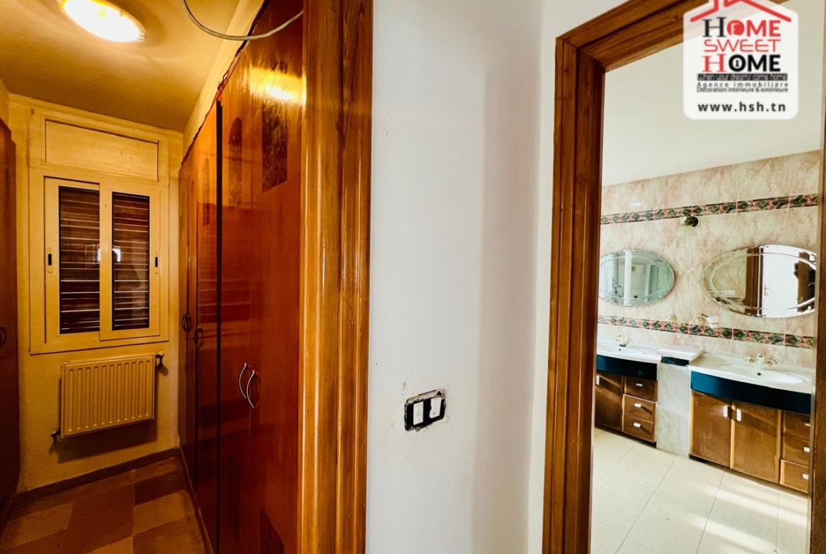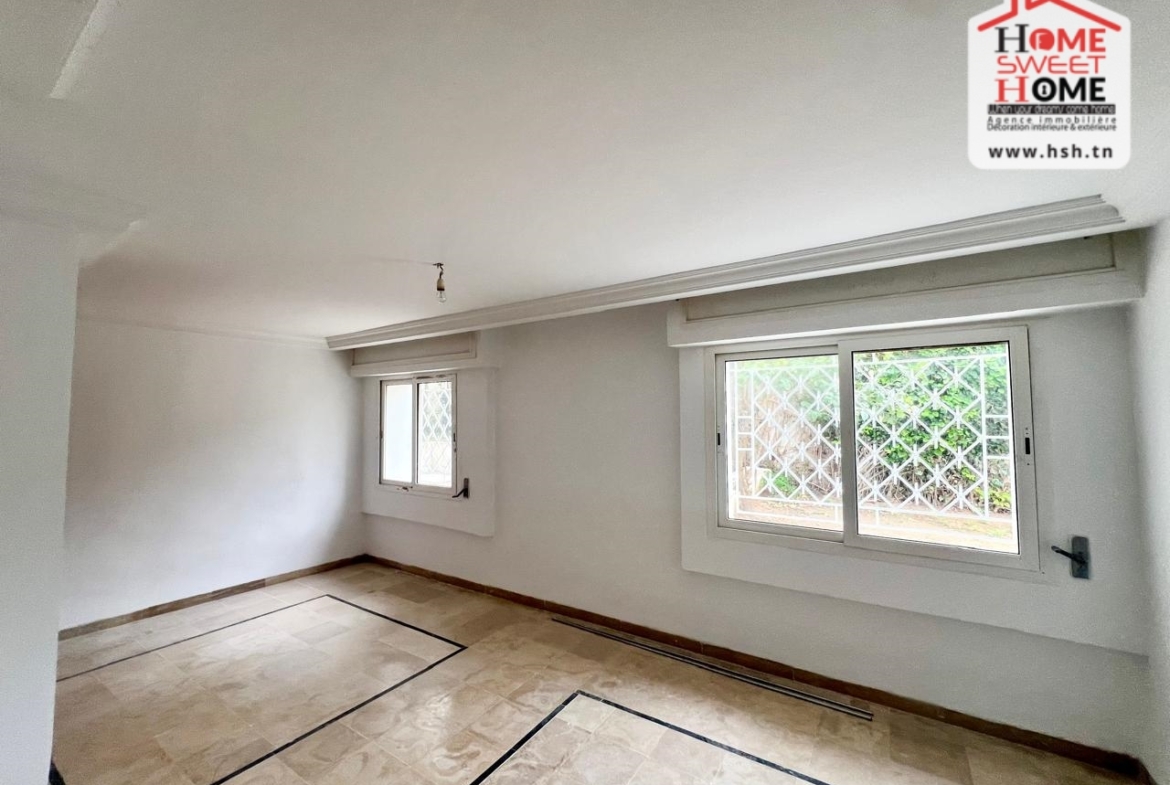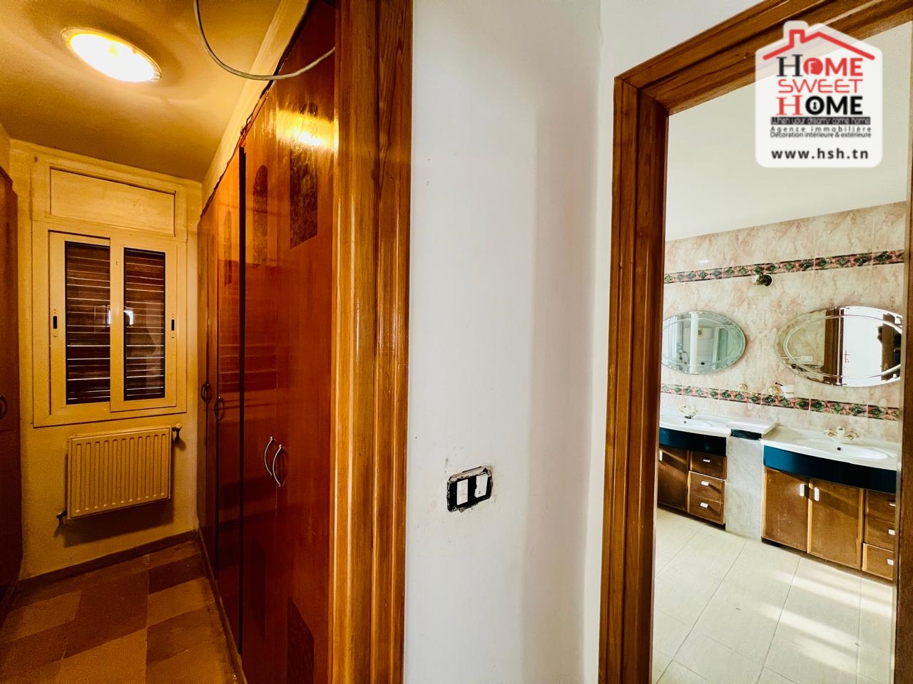 Une majestueuse villa située dans un quartier résidentiel à Gammarth supérieur. Au RDJ, On trouve un séjour donnant directement sur le jardin, une cuisine équipée, 3 chambres avec dressing et une salle de bain. Au RDC , On trouve un lumineux salon, un séjour, une salle à manger et une chambre. A l’étage, On trouve une suite royale, 2 chambres et une salle de bain. A L’extérieur, On a un jardin gazonné, une terrasse et un abris pour deux voitures.