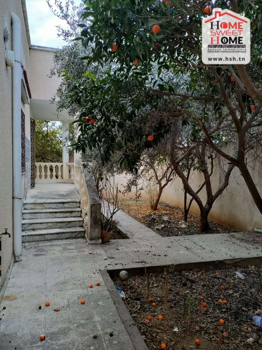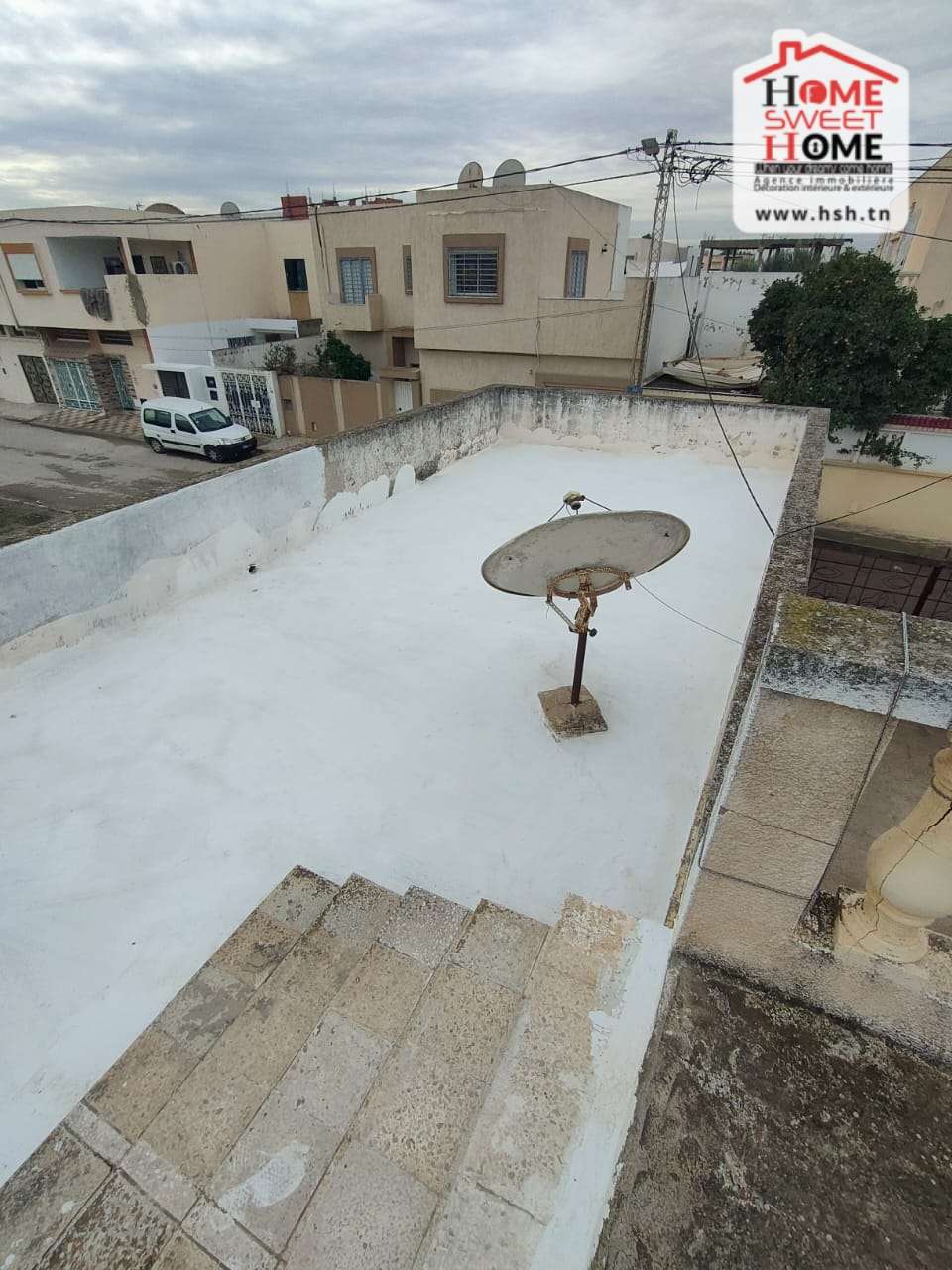 Une Villa plain pied sur un terrain de 535m² dans un bon quartier à Rades Meliane .A l’entrée , on trouve un salon avec terrasse , une salle à manger , une cuisine avec séchoir , 3 chambres et  une salle de bain . A l’extérieur , on a 2 studios , un jardin et une grande  terrasse qui fait le tour .