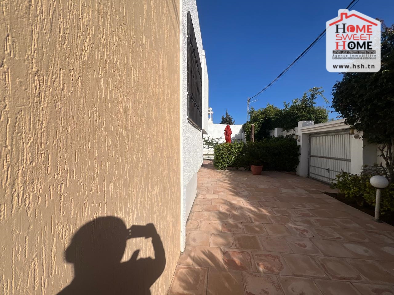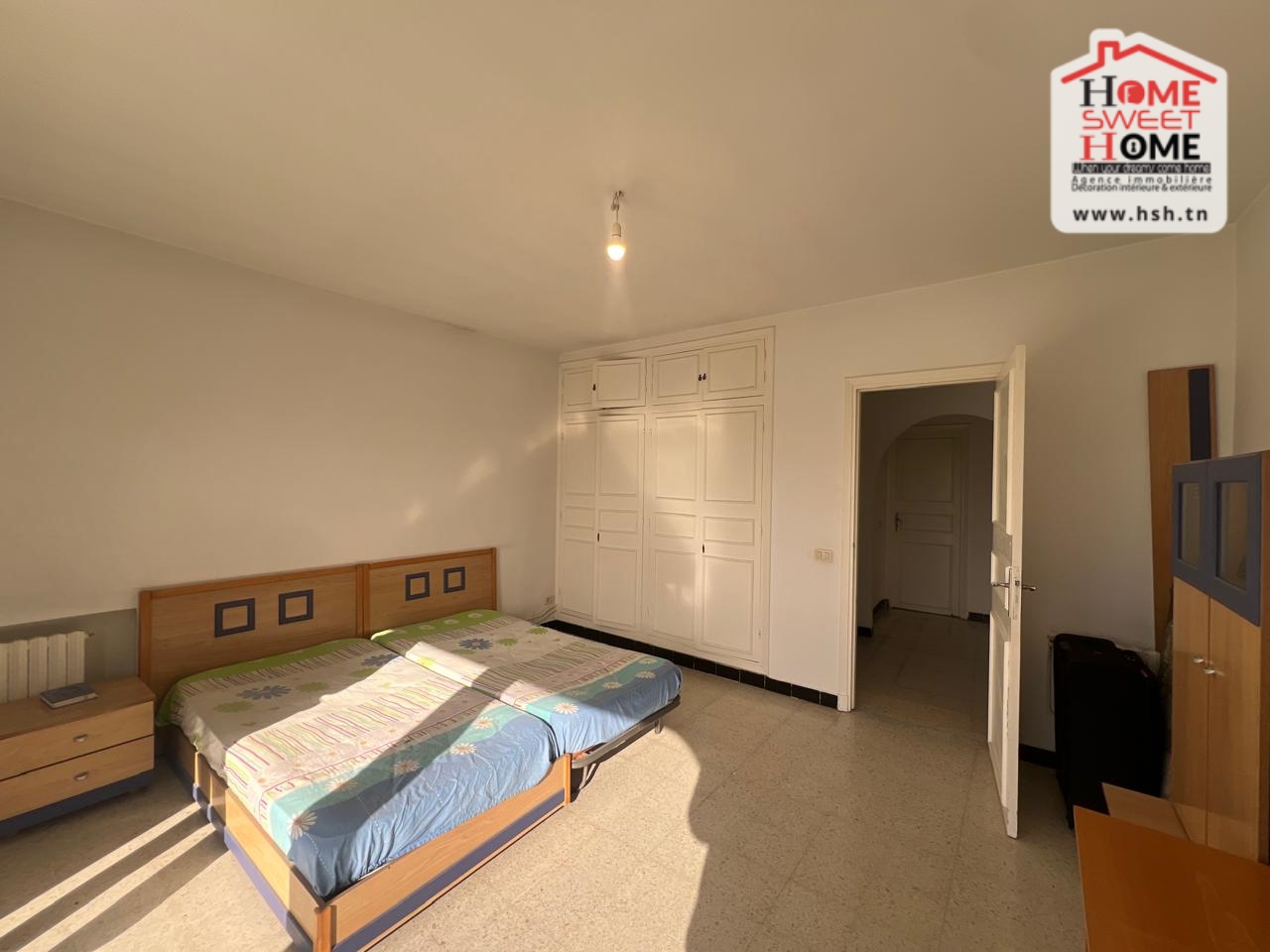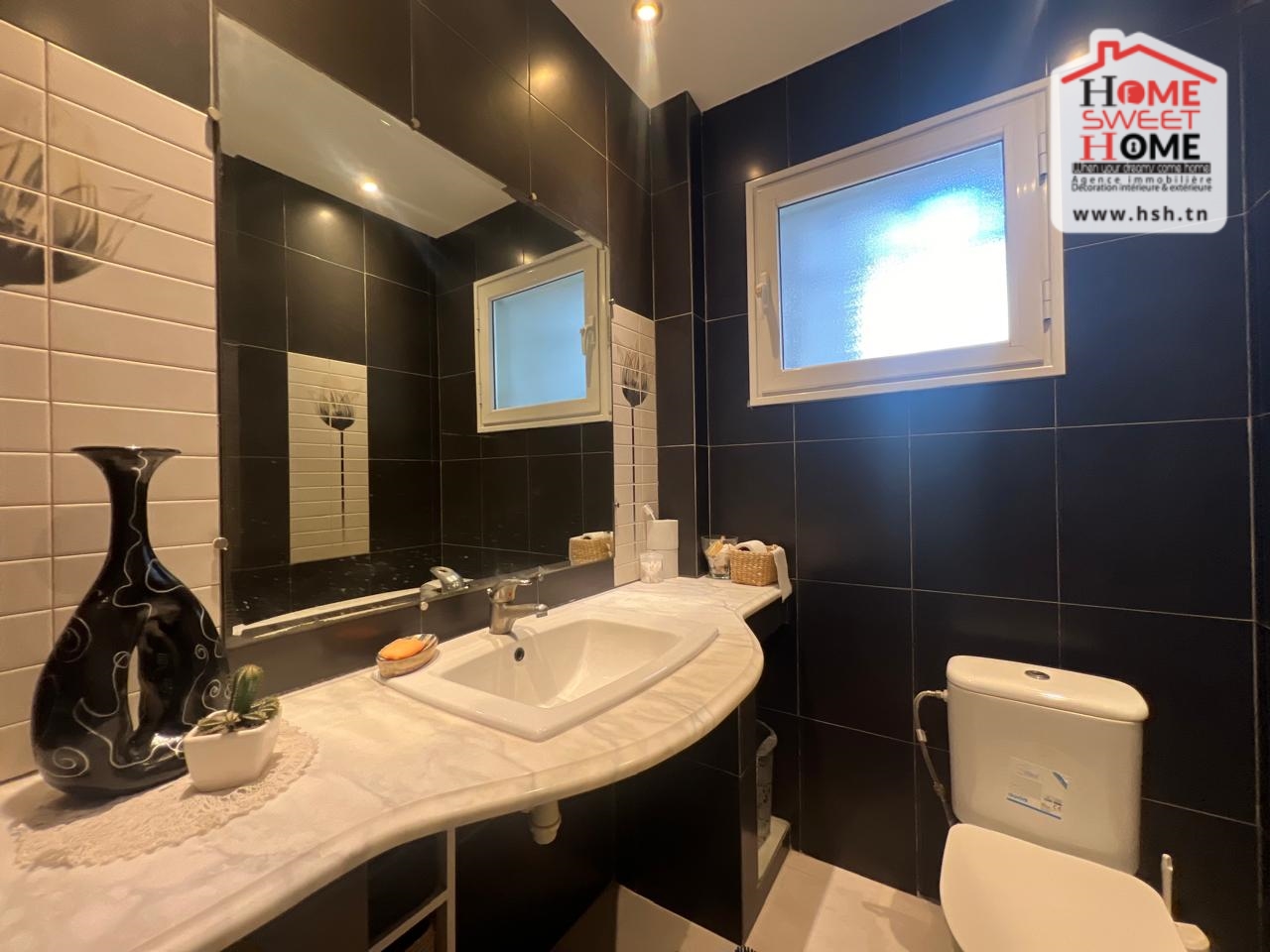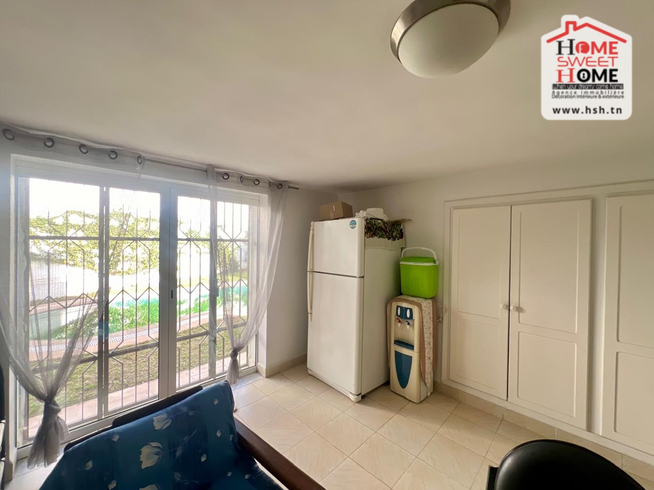 Une théâtrale villa avec piscine sur un terrain de 749 m² située dans un quartier résidentiel à à La Marsa Erriadh . AU RDJ, on a une suite de bonne. Au RDC, on trouve un spacieux salon avec cheminée, une salle à manger, un séjour, une cuisine équipée avec séchoir , une salle d’eau et une chambre avec dressing. Au Mezzanine, On a une suite parentale. Au 1er étage, on trouve 3 chambres avec balcon, une salle d’eau et une salle de bain. A L’extérieur, On a une terrasse, un joli jardin et un garage pour 2 voitures. Contacter l’agent sur le 54670670.