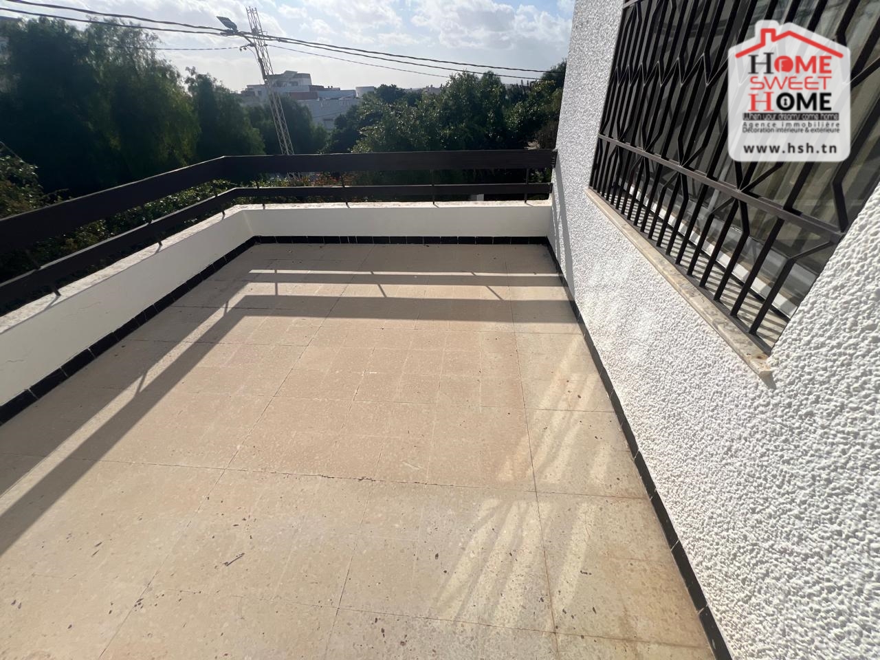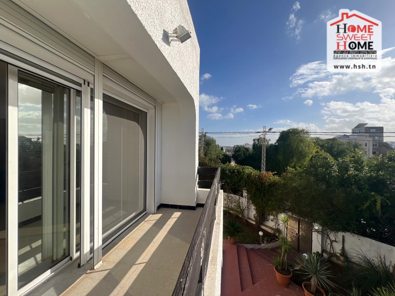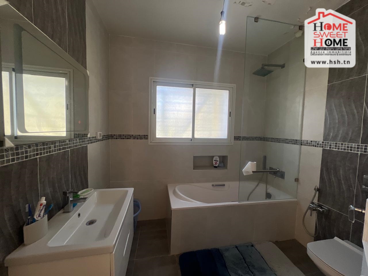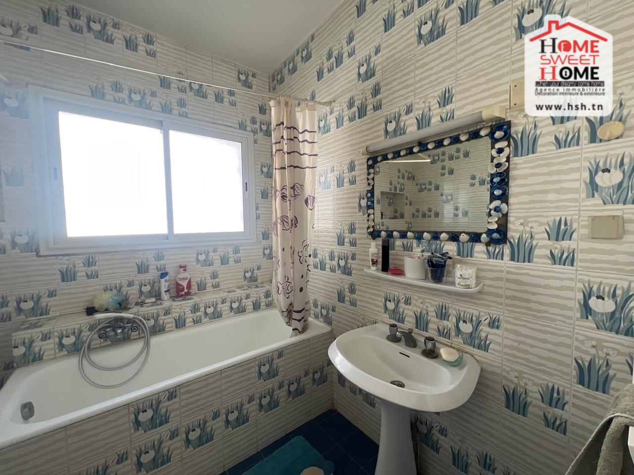 Une théâtrale villa avec piscine sur un terrain de 749 m² située dans un quartier résidentiel à à La Marsa Erriadh . AU RDJ, on a une suite de bonne. Au RDC, on trouve un spacieux salon avec cheminée, une salle à manger, un séjour, une cuisine équipée avec séchoir , une salle d’eau et une chambre avec dressing. Au Mezzanine, On a une suite parentale. Au 1er étage, on trouve 3 chambres avec balcon, une salle d’eau et une salle de bain. A L’extérieur, On a une terrasse, un joli jardin et un garage pour 2 voitures. Contacter l’agent sur le 54670670.