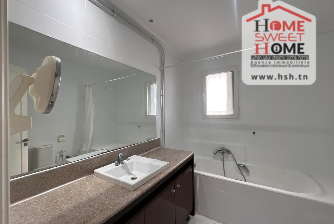 Une villa située dans une résidence sécurisée aux berges du lac1. Au RDJ , sur une chambre de service .Au RDC, sur trouve un spacieux salon ,salle à manger donnant sur un jardin, une cuisine équipée et une salle d’eau pour les convives . A l’étage, on trouve une suite parentale, 2 chambres à coucher et une salle d’eau. A l’extérieur, sur un joli jardin et un abri de voiture.