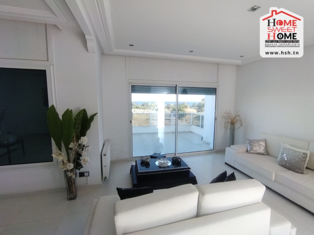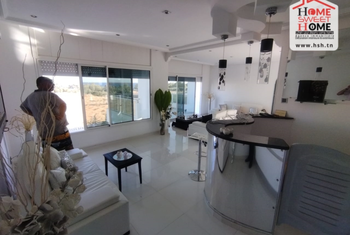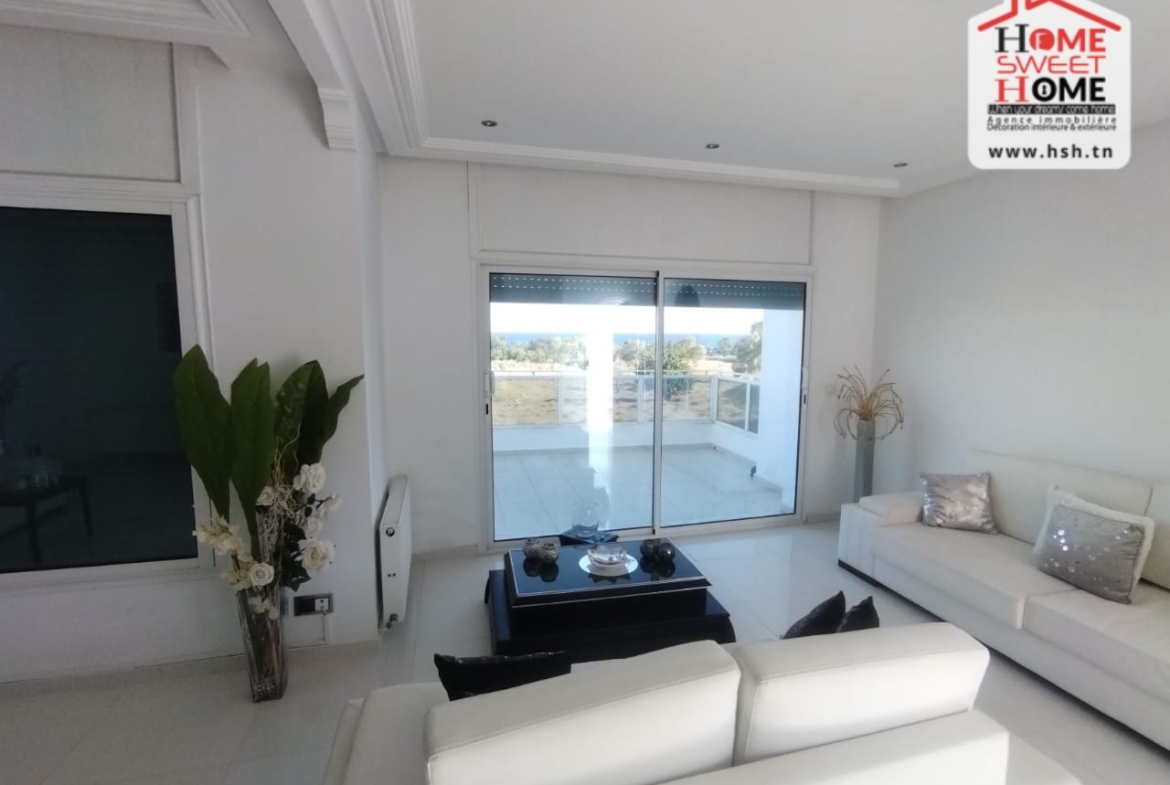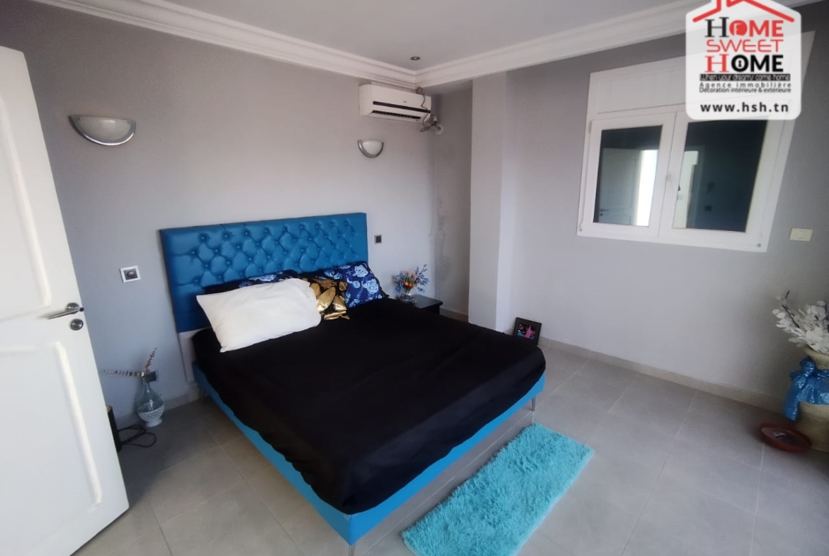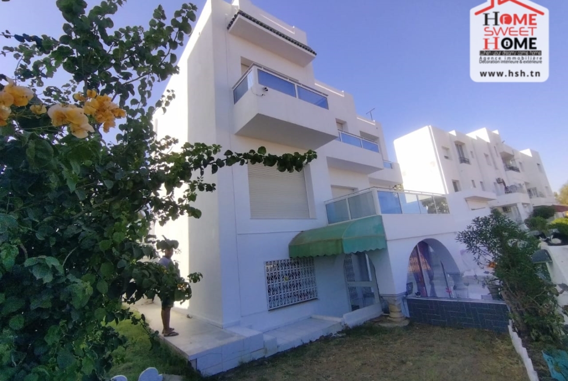 | Magnifique villa de prestige qui vous apporte la paix intérieure avec sa décoration située dans un quartier résidentiel à 300 m de la plage de Hammamet Nord. Au RDJ, On trouve une cuisine spacieuse équipée ouverte sur une salle à manger et une grande terrasse baie vitrée s’ouvre sur le jardin. Au RDC, On trouve un grand salon donnant sur une terrasse avec une vue sur mer, une chambre et une salle de bain avec une douche à l’italienne. Au 1 er étage, Sur un 3 chambres avec balcon vue sur mer et une salle de bain avec jaccuzi. A L’extérieur, Sur une terrasse, un jardin, un coin barbecue et un garage pour 2 voitures. Cette villa dispose d’une climatisation split-system, fenêtres en aluminium et les michelaires sont électriques, chauffage central et caméras de surveillance. |