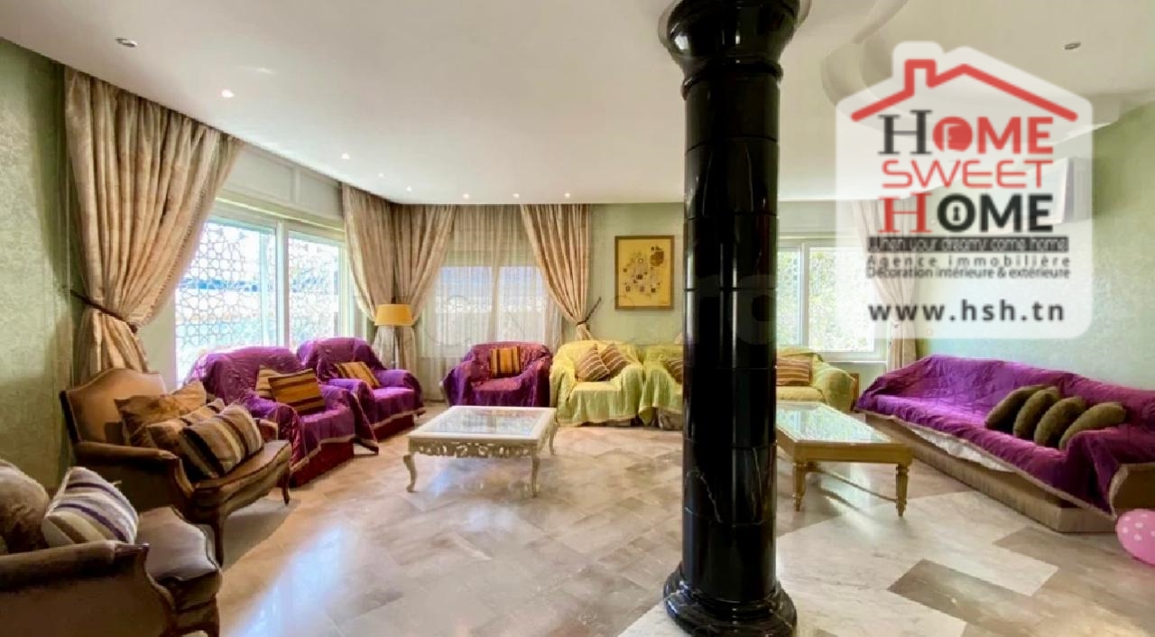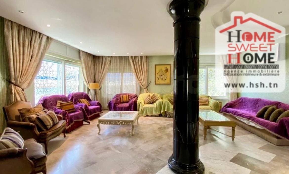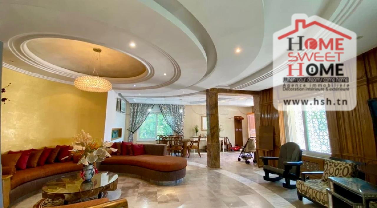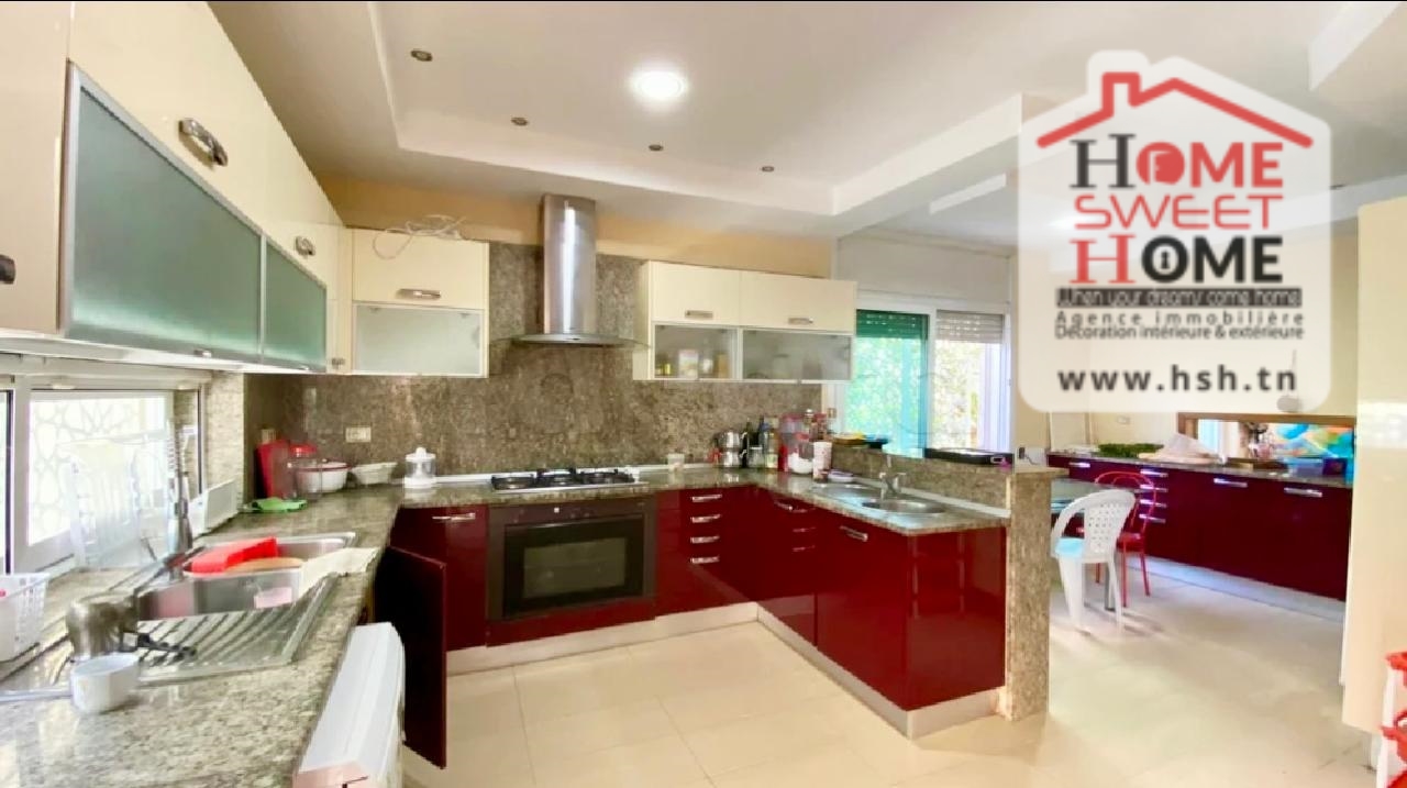Une Villa Haut standing avec piscine sur un terrain d’une superficie de 624 m² situé aux Jardins de L’Aouina . Au RDJ, on a un grand open space. Au RDC, on a un salon spacieux, une salle à manger, une cuisine équipée et une salle d’eau pour les invités. Au 1er étage, on a une suite parentale, 3 chambres à coucher avec dressings et une salle de bain. A L’extérieur, on a une grande terrasse, un jardin et un abri de voiture.
