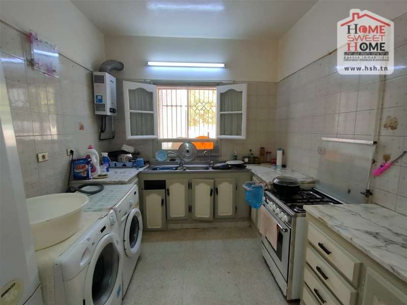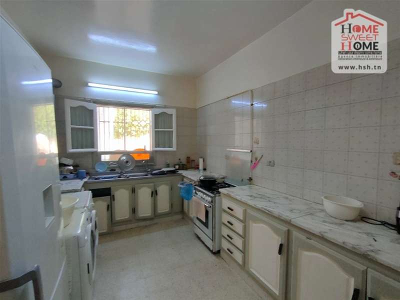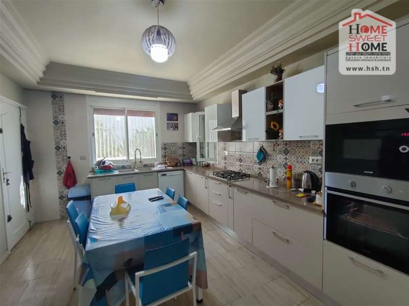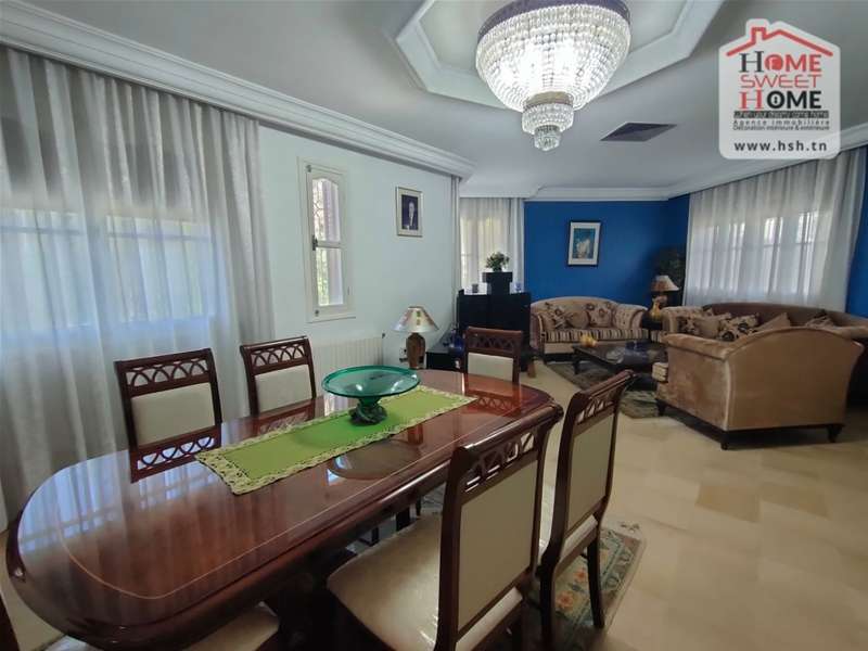 | Une grandiose villa sur un terrain de 1014 m² situé dans un quartier résidentiel très prisé sur les hauteurs de Rades Mongil. Au RDC, On trouve un grand salon, salle à manger, une cuisine équipée avec séchoir, 2 chambres et une salle d’eau pour les invités. A L’étage, On trouve une grande suite parentale, 3 chambres, un bureau et une salle de bain. A L’extérieur, On a une terrasse, un joli jardin, une deuxième cuisine, un débarrât et un garage pour 3 voitures. |