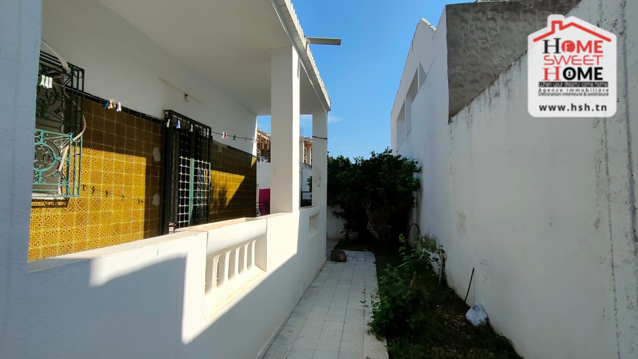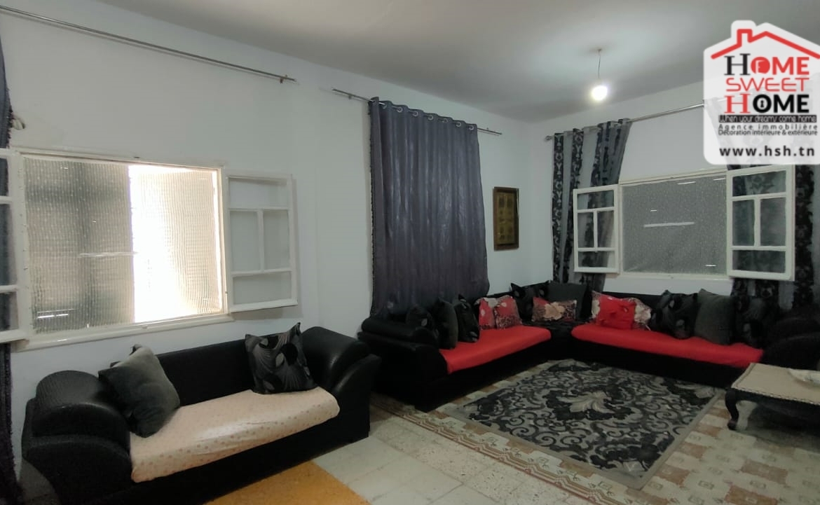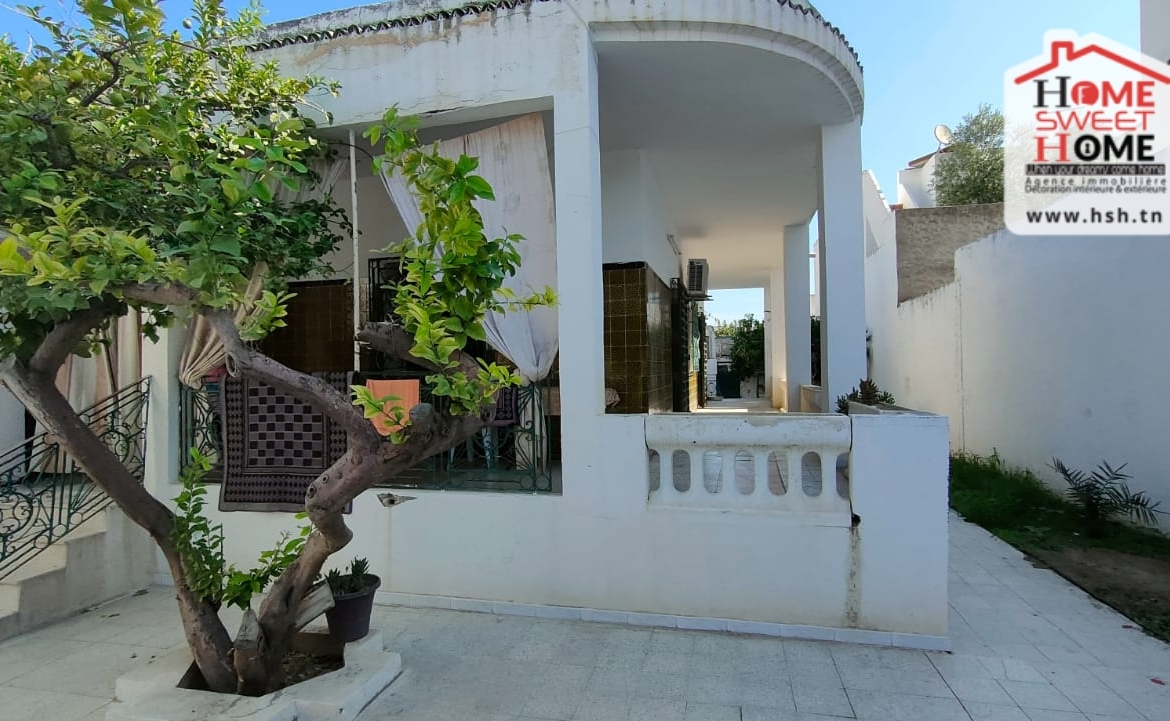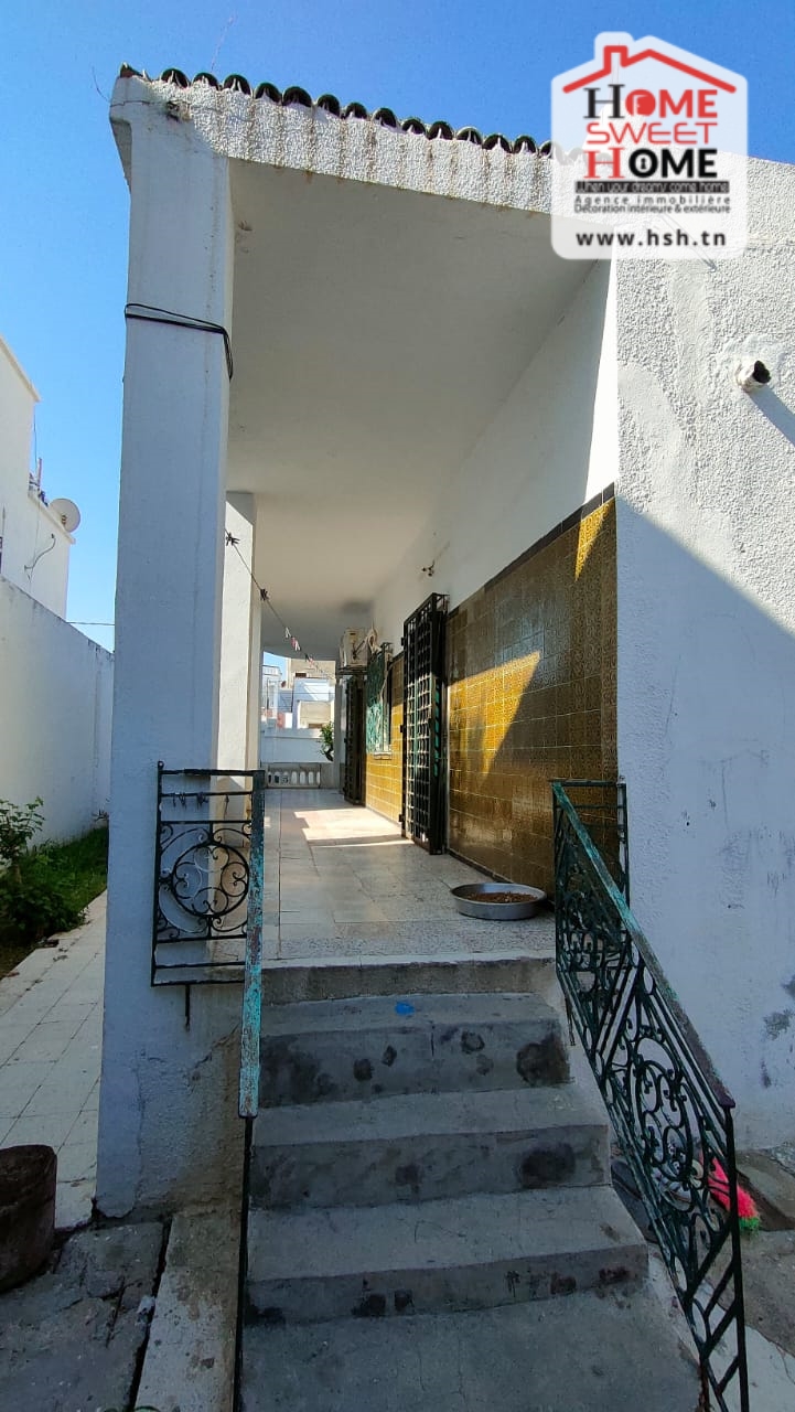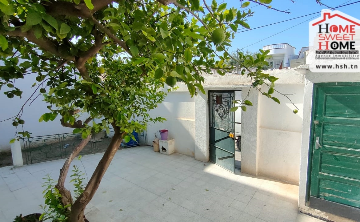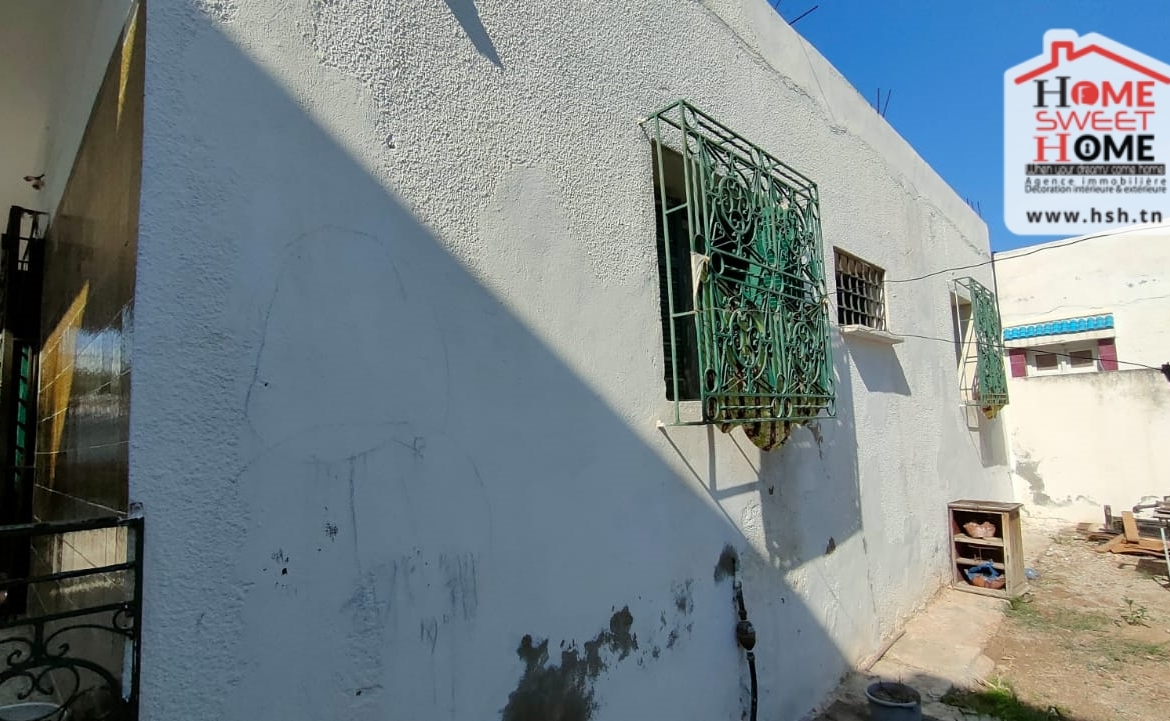 | Villa répartie sur deux bâtiments sur un terrain de 449m², située dans un quartier résidentiel à Cité Taamir à Ben Arous. À l’entrée, on trouve un spacieux salon, une cuisine, 2 chambres et une salle d’eau. À l’extérieur, il y a une terrasse et un jardin. NB: Possibilité de bâtir un autre étage. |