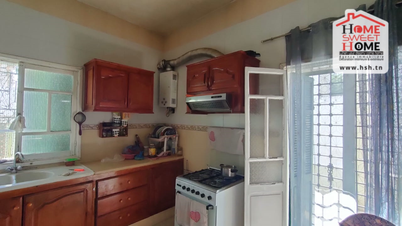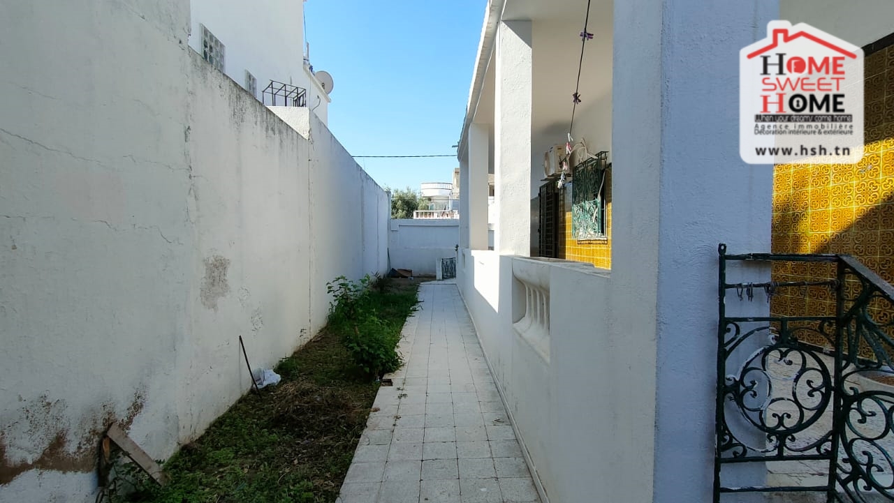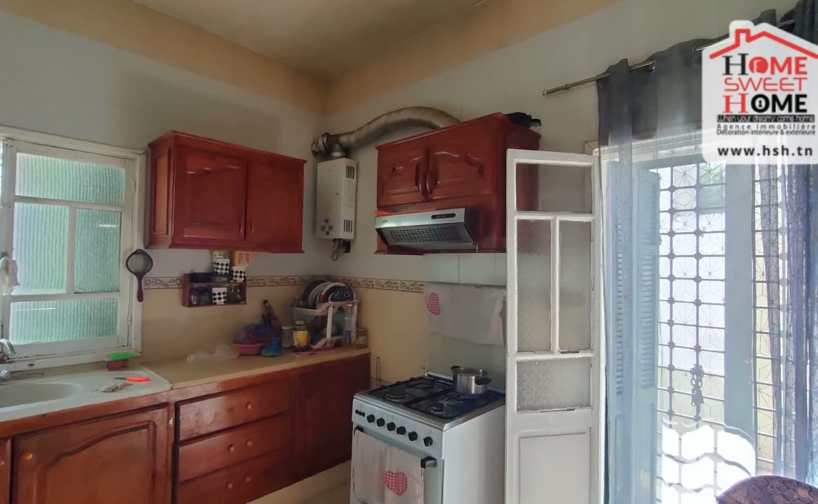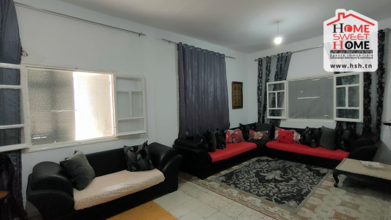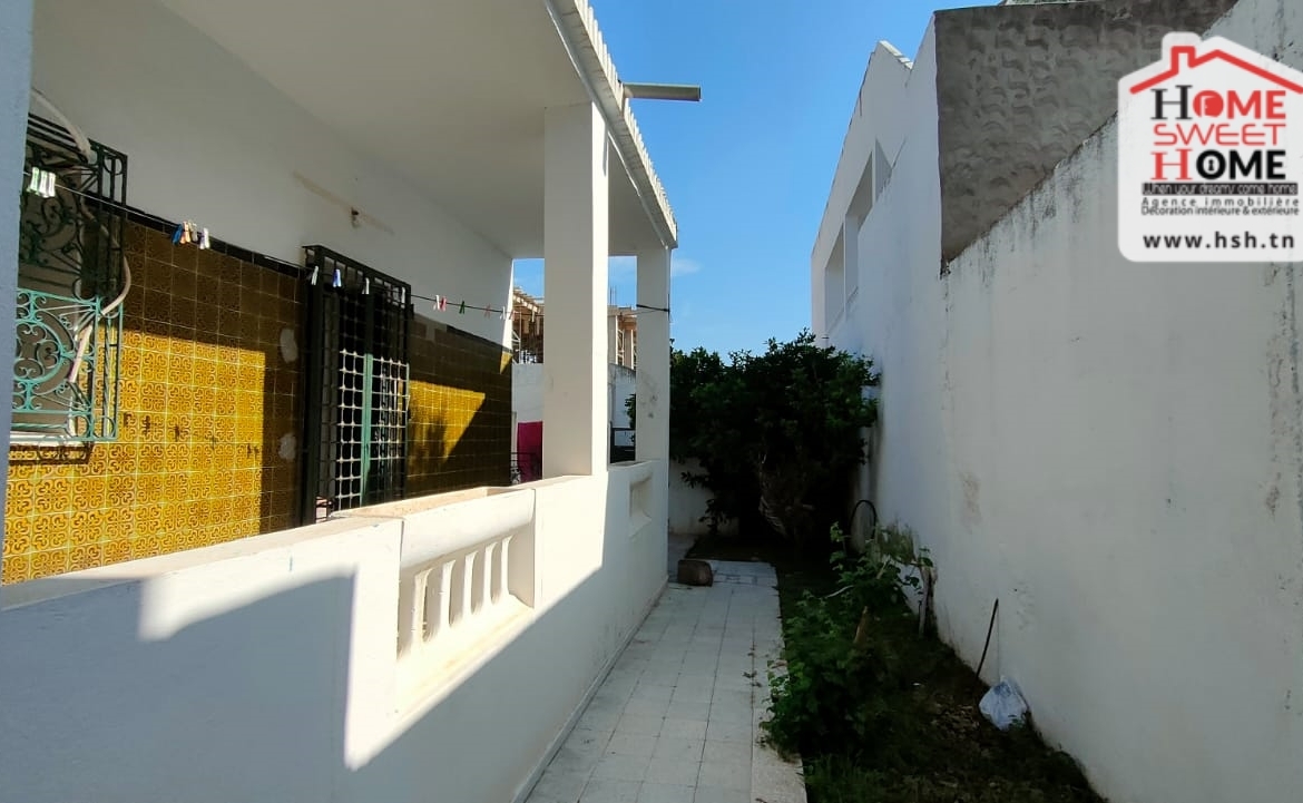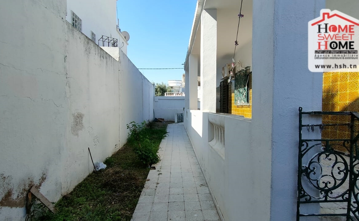 | Villa répartie sur deux bâtiments sur un terrain de 449m², située dans un quartier résidentiel à Cité Taamir à Ben Arous. À l’entrée, on trouve un spacieux salon, une cuisine, 2 chambres et une salle d’eau. À l’extérieur, il y a une terrasse et un jardin. NB: Possibilité de bâtir un autre étage. |